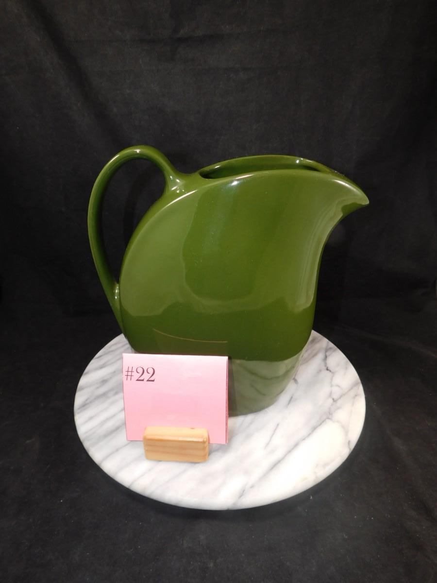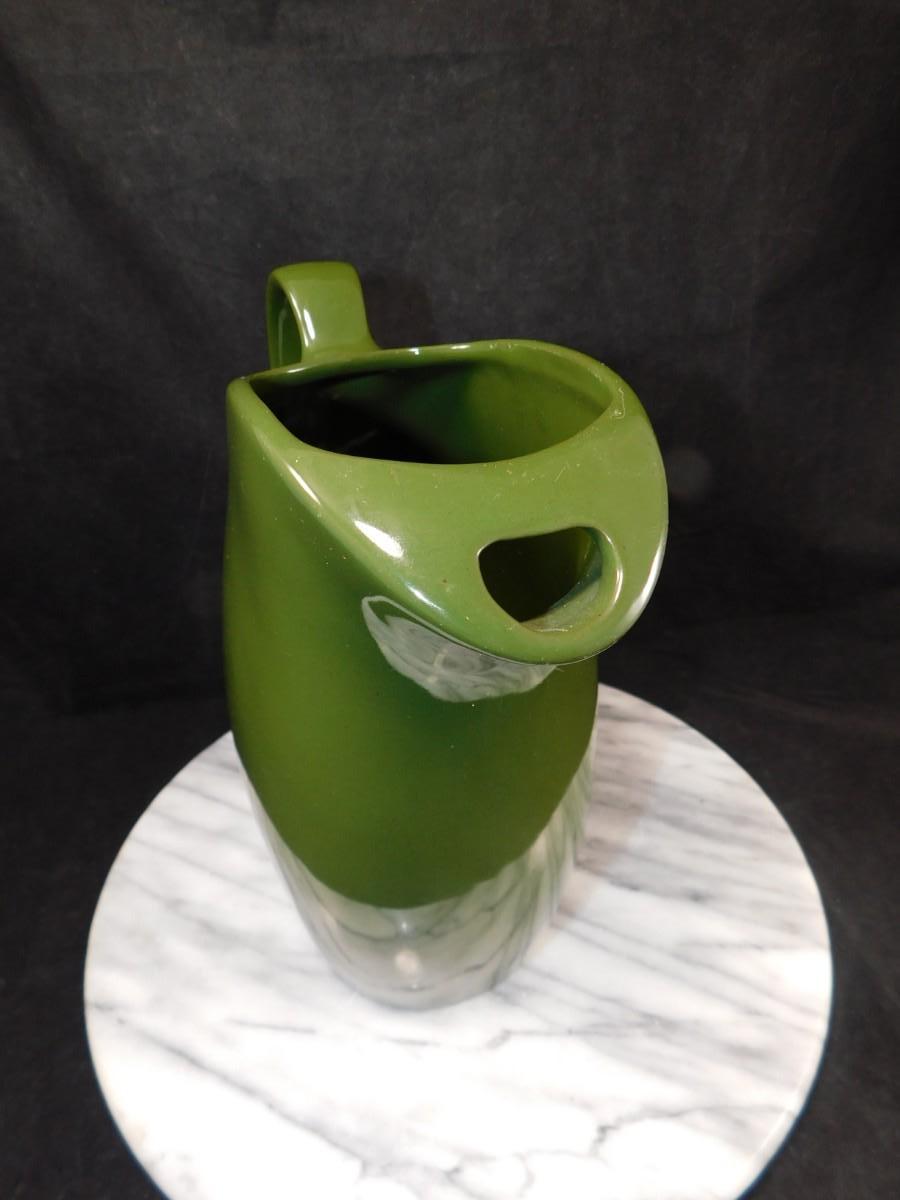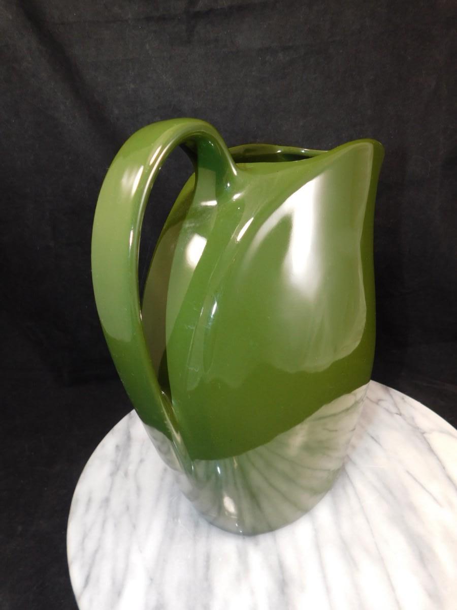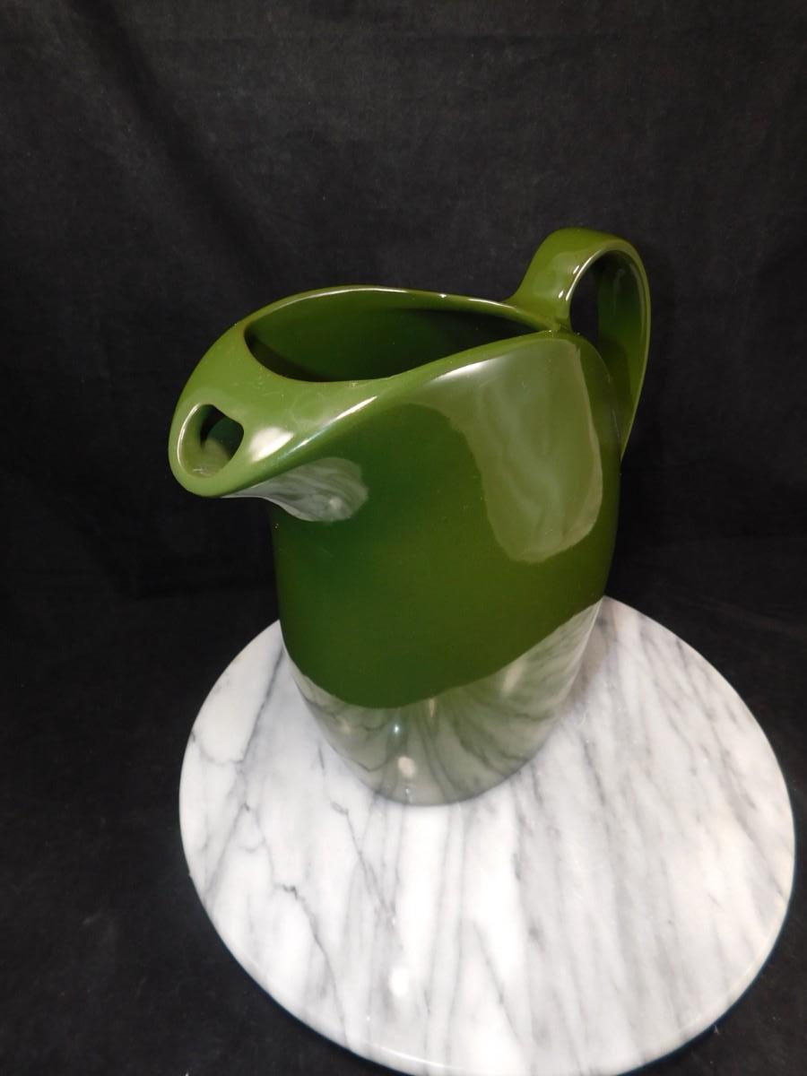 Vintage HALL Pottery MCM Forest Green Retro Pitcher 9.25”x9.25”x4.5”