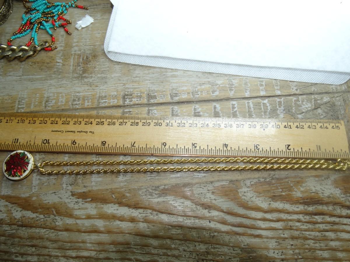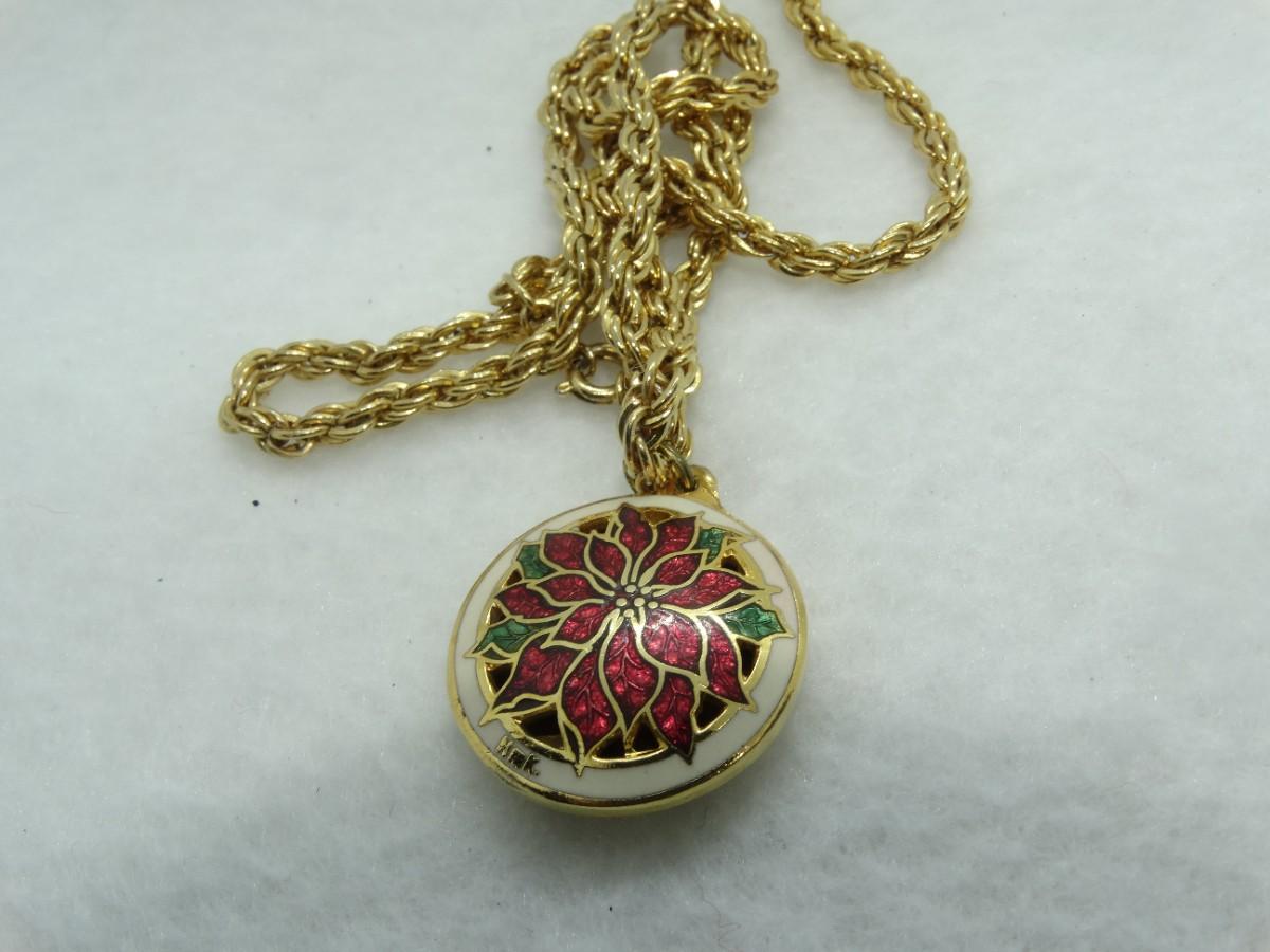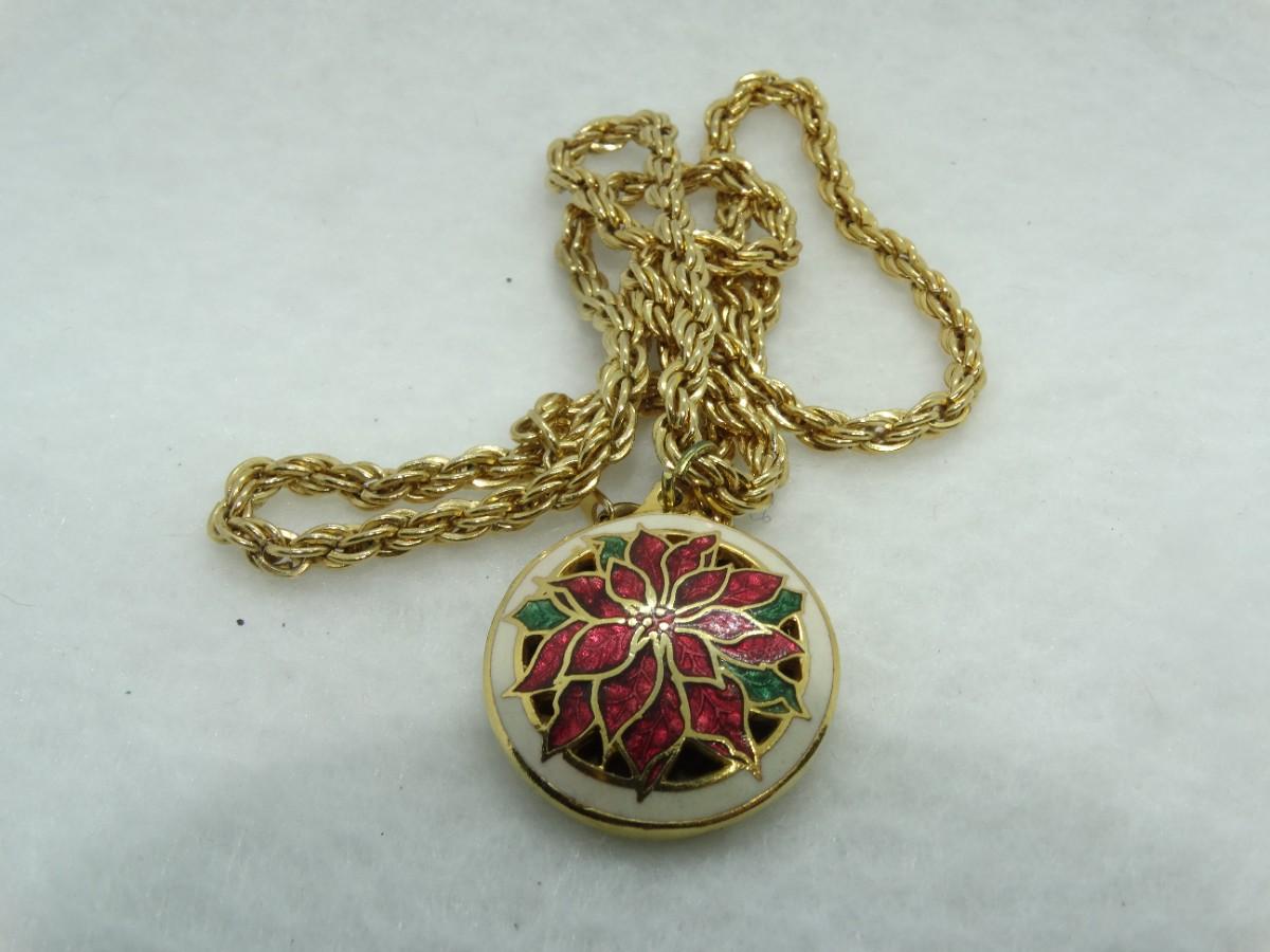 Vintage Hallmark Enamel Poinsettia Gold Tone Rope Chain Necklace