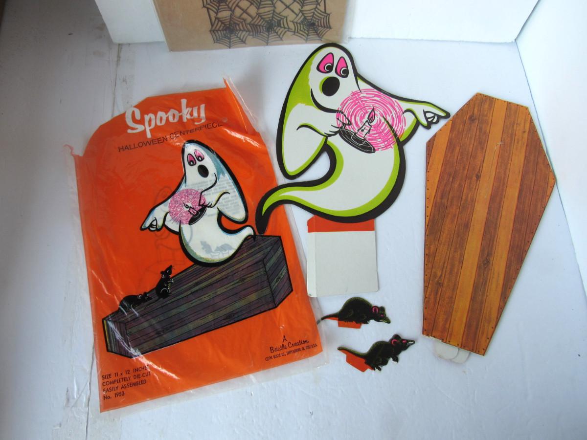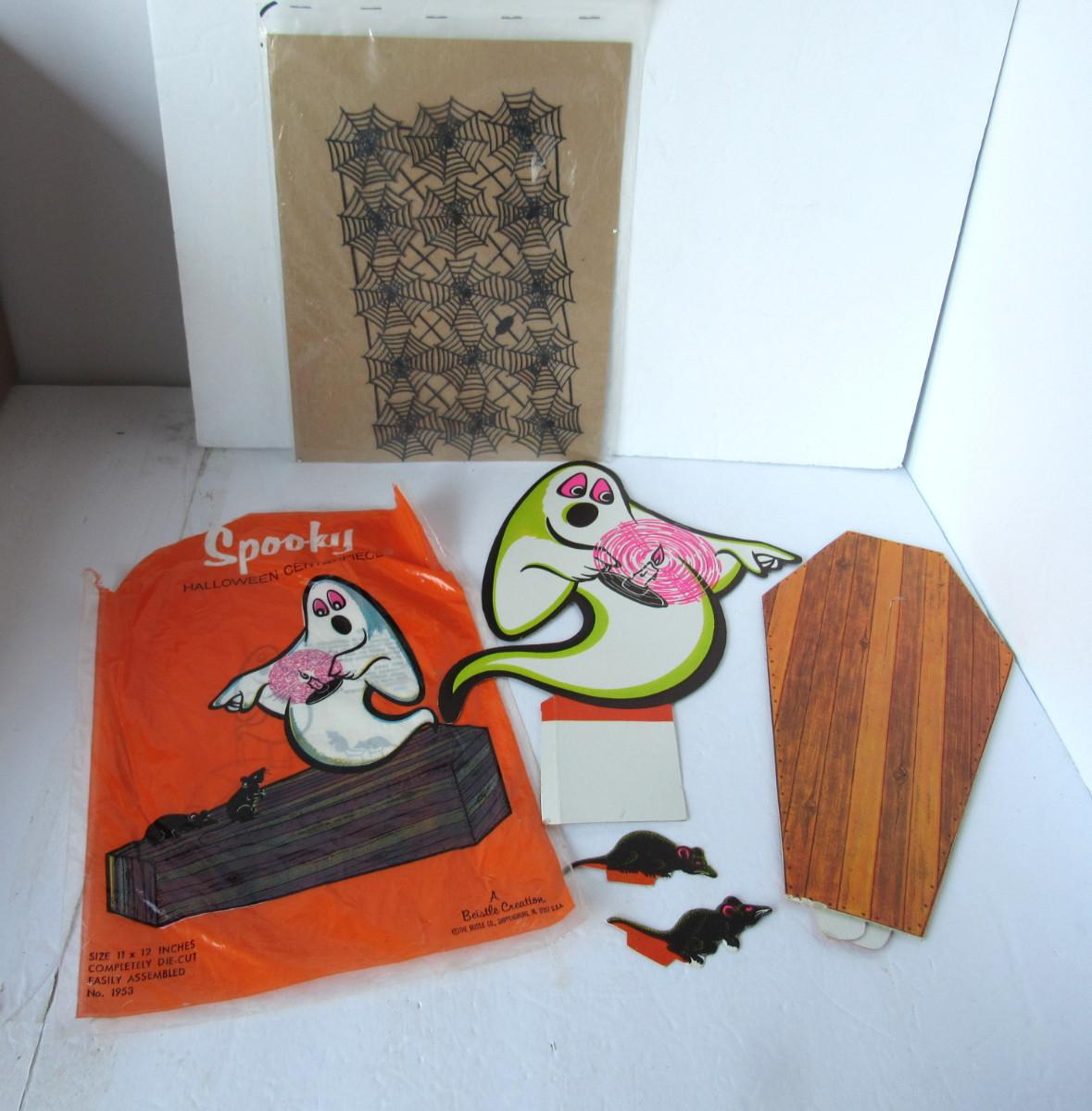 Unused Vintage Halloween: Beistle Spooky Ghost/Coffin Set, Spider Web Die Cuts