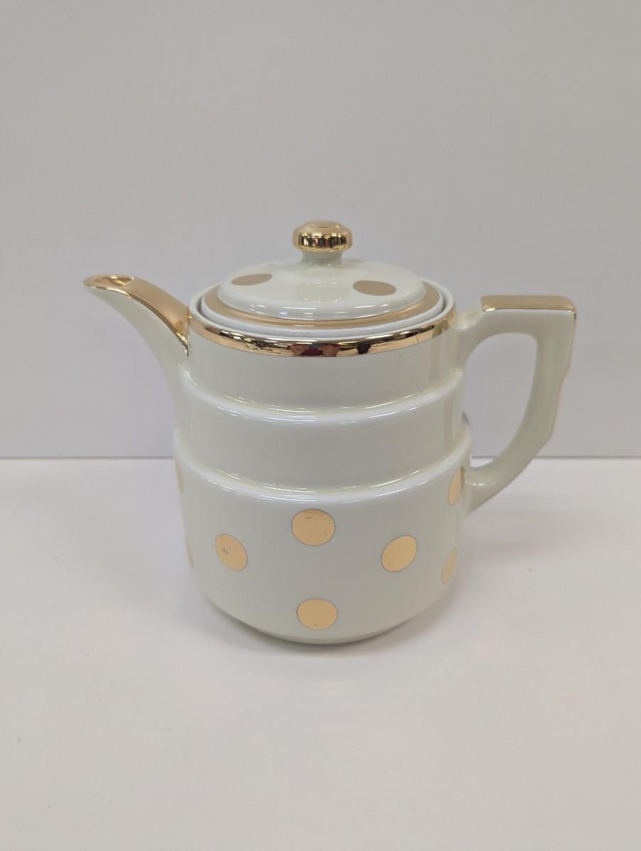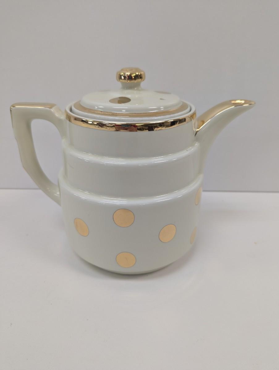 Vintage Hall's Superior Quality Kitchenware Yellow & Gold Trim Teapot