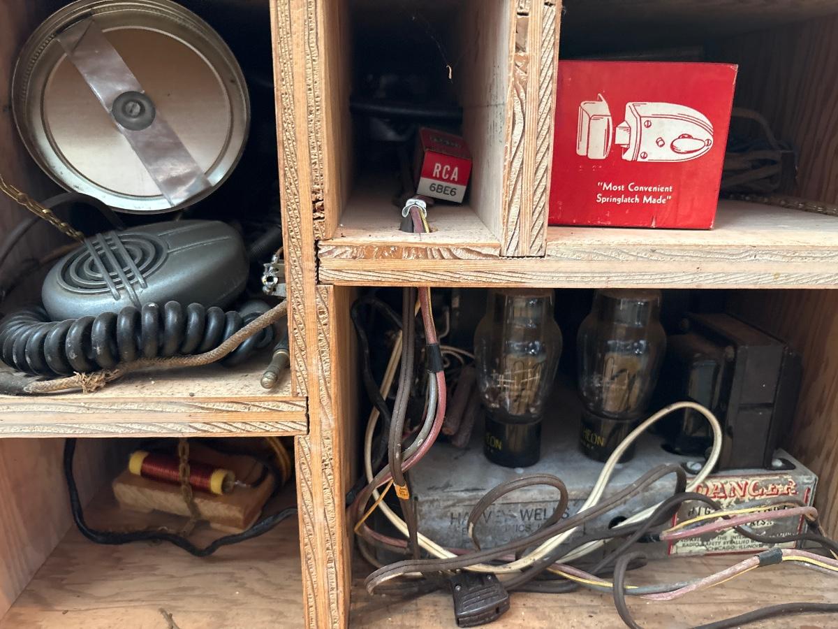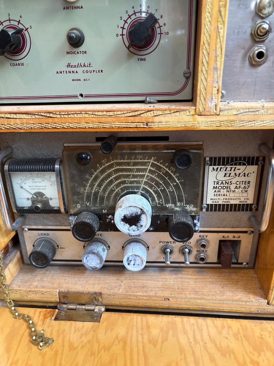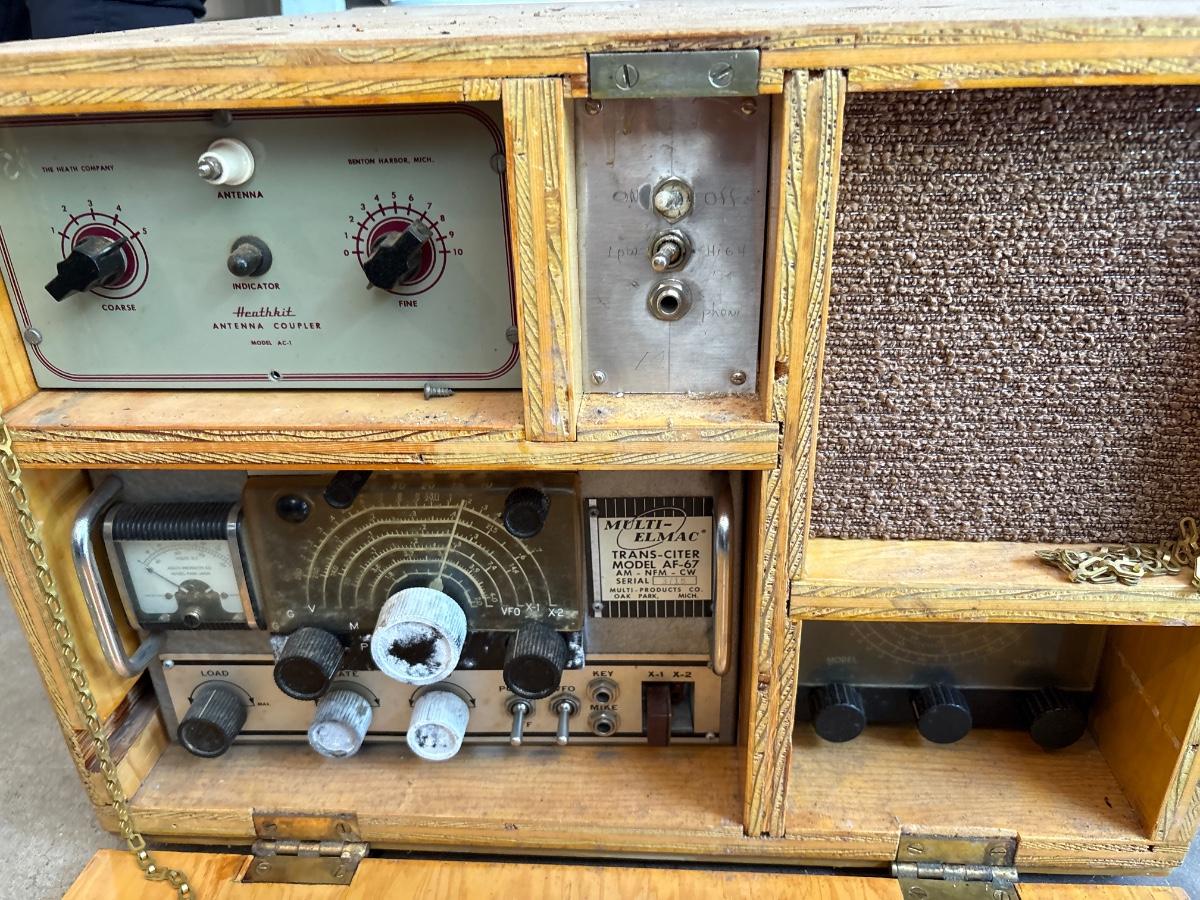 Vintage ham radio equipment in homemade box