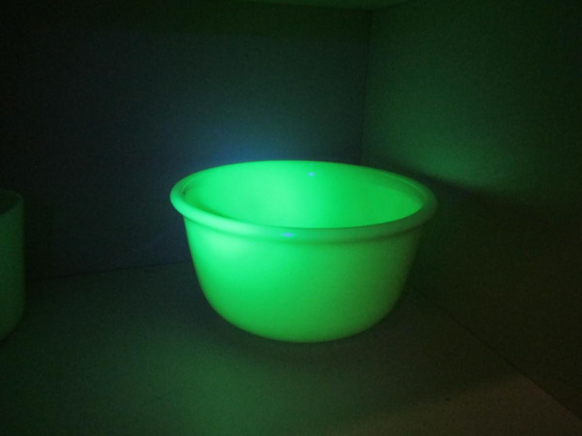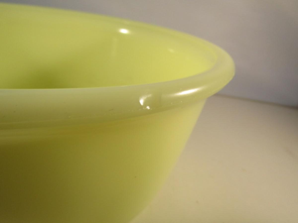 Vintage Hamilton Beach Custard Colored Uranium Glass Bowl- Approx 9" in Diameter. Please see all pictures- small chip on rim.
