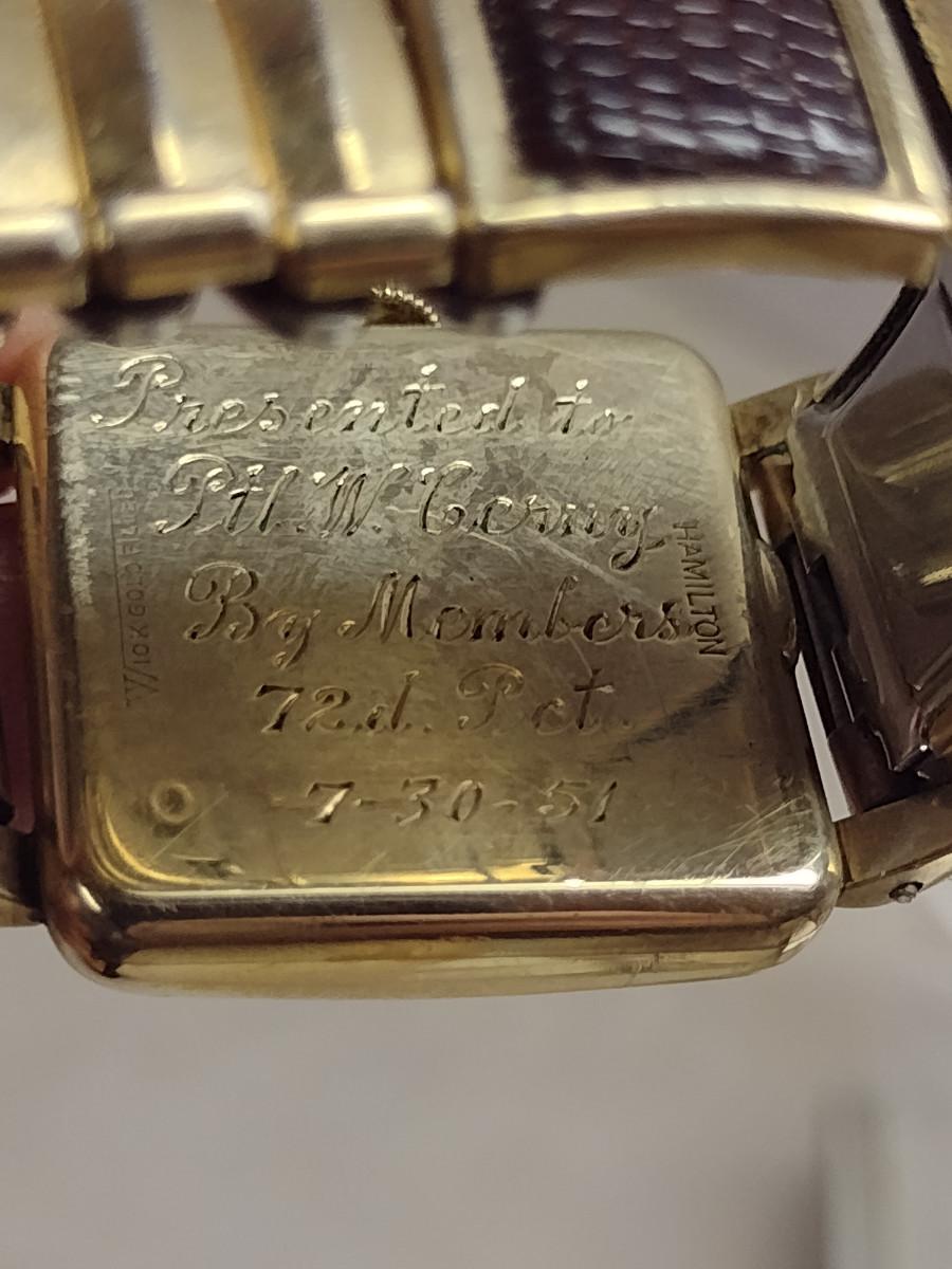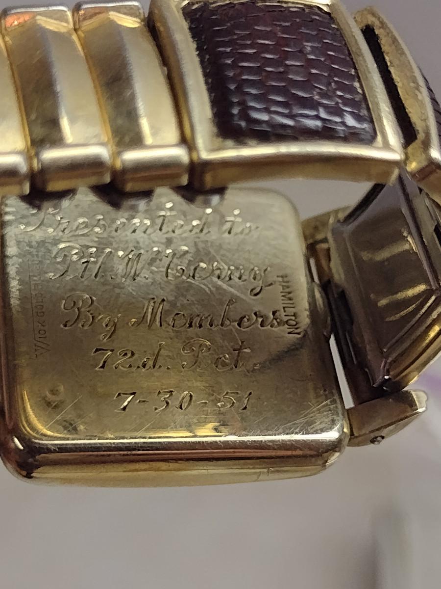 Vintage Hamilton Wrist Watch- 10 Karat Gold Filled (#35). Item is monogrammed. Watch is not in running condition- may need battery.