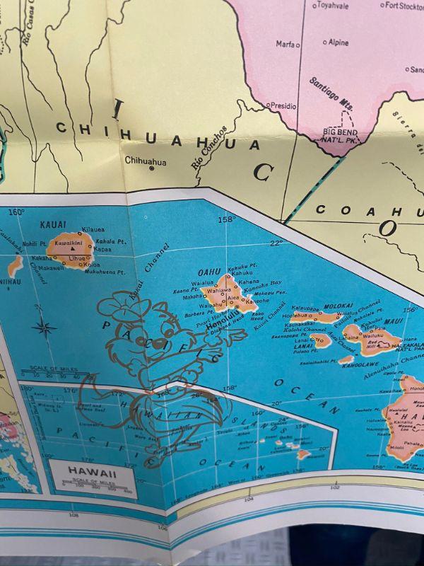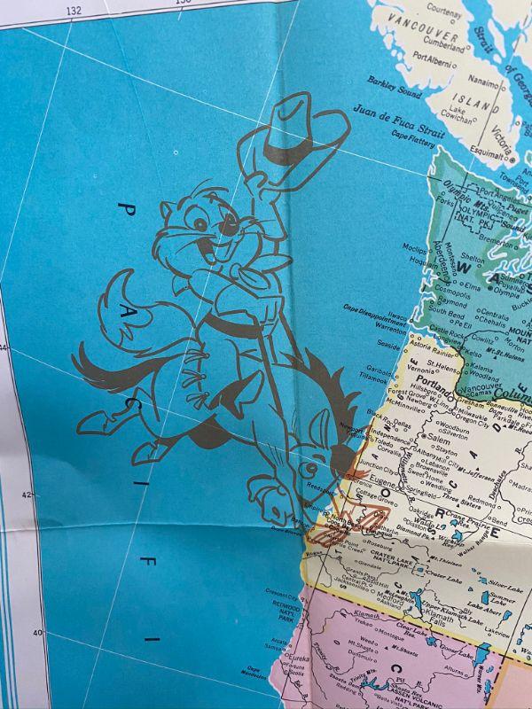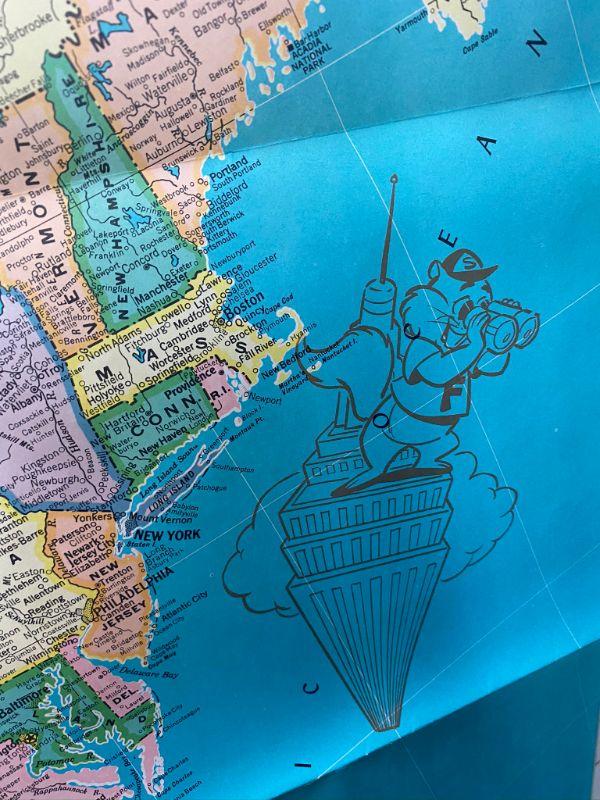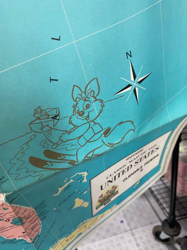 Large vintage map of the United States. The squirrels Club from Glendale Federal Credit Union. About 5' wide. Good Vintage Condition.