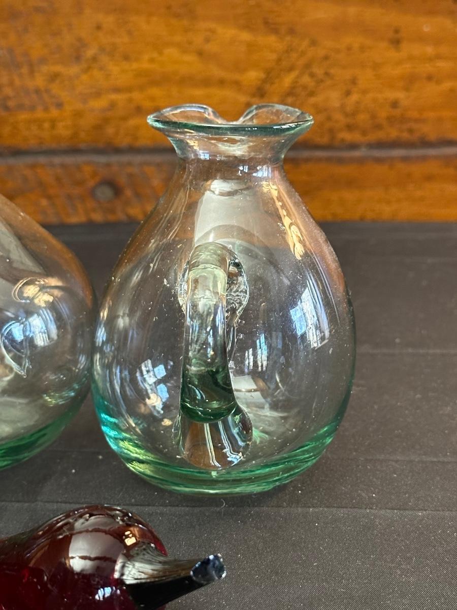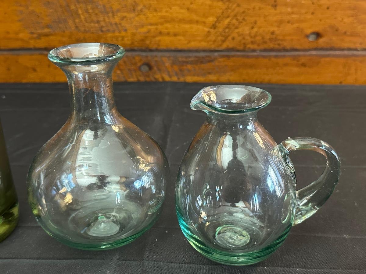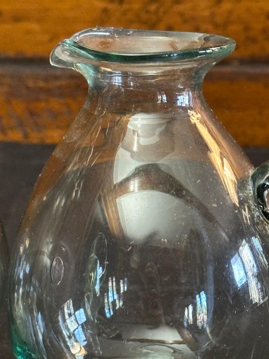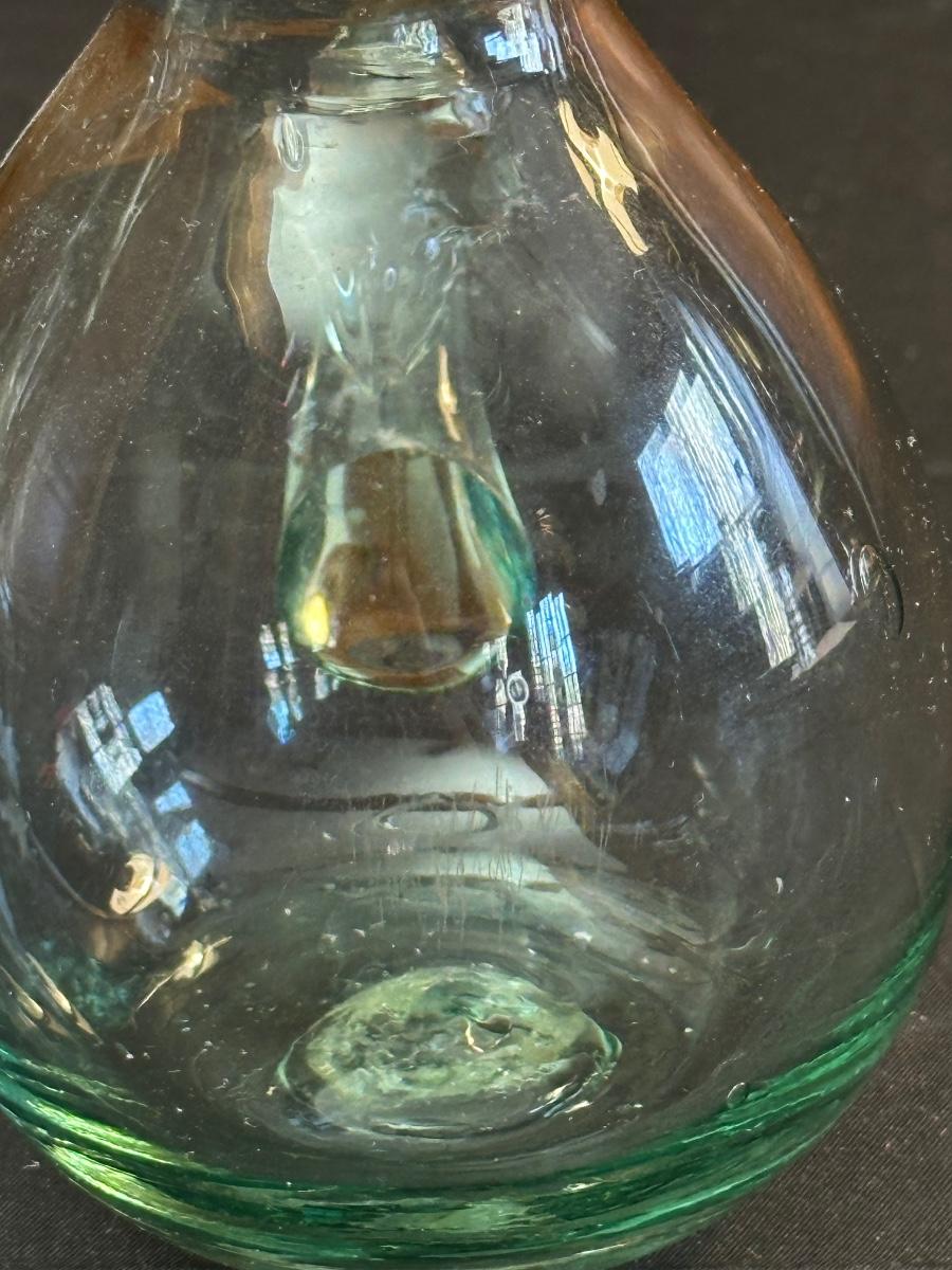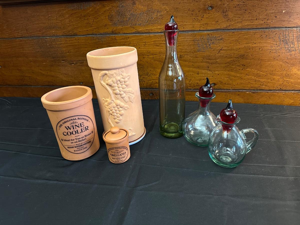 The larger decanter has been more frequently used and has a little residue inside. It likely just needs a good wash! One wine chiller was made in Mexico. 6 small bowls branded “Arbresa” Made in Spain.