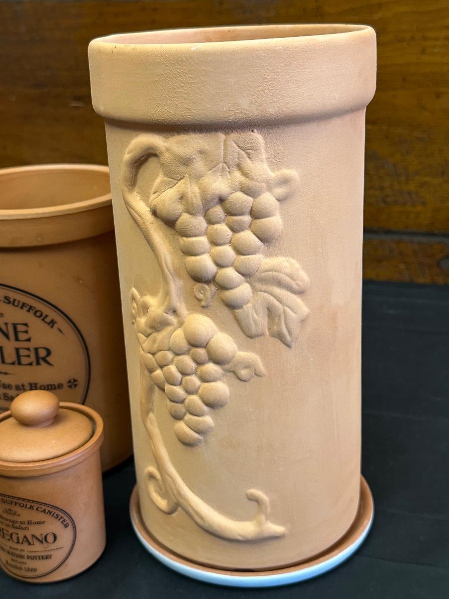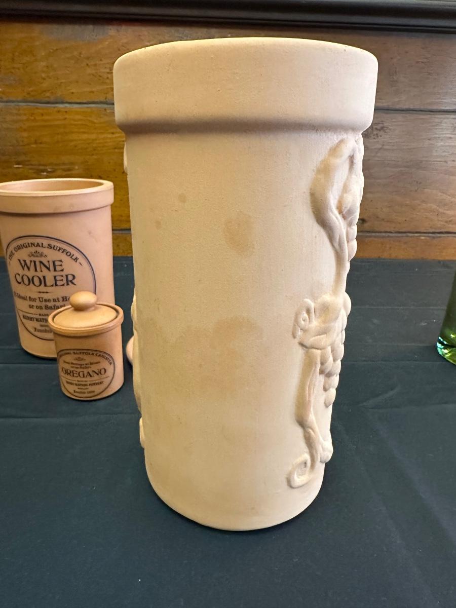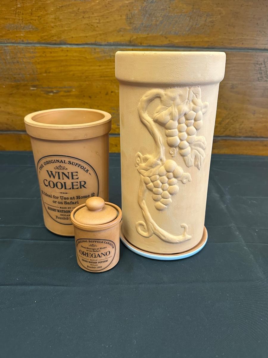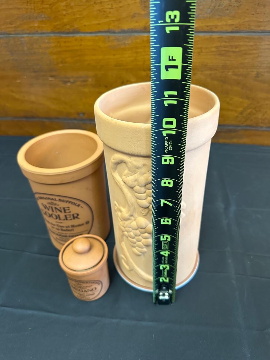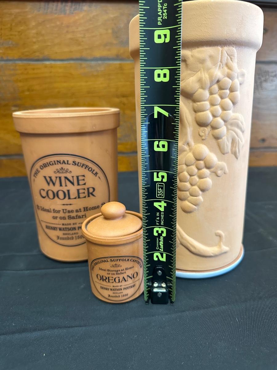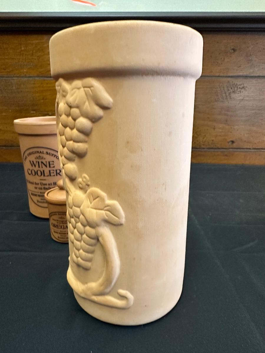 The larger decanter has been more frequently used and has a little residue inside. It likely just needs a good wash! One wine chiller was made in Mexico. 6 small bowls branded “Arbresa” Made in Spain.