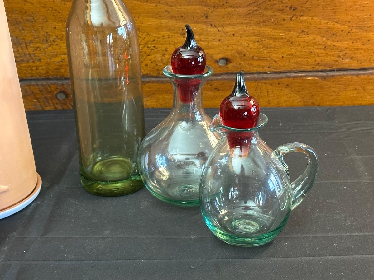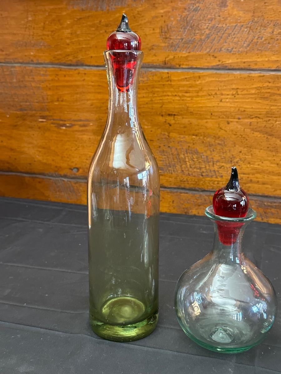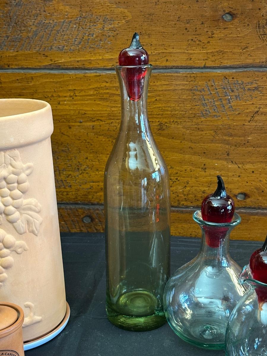Vintage Hand Blown Glass Decanters and Ceramic Wine Holders