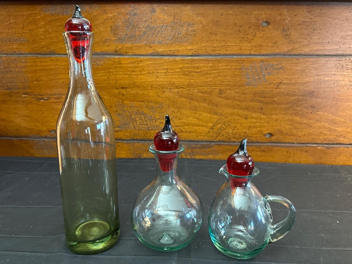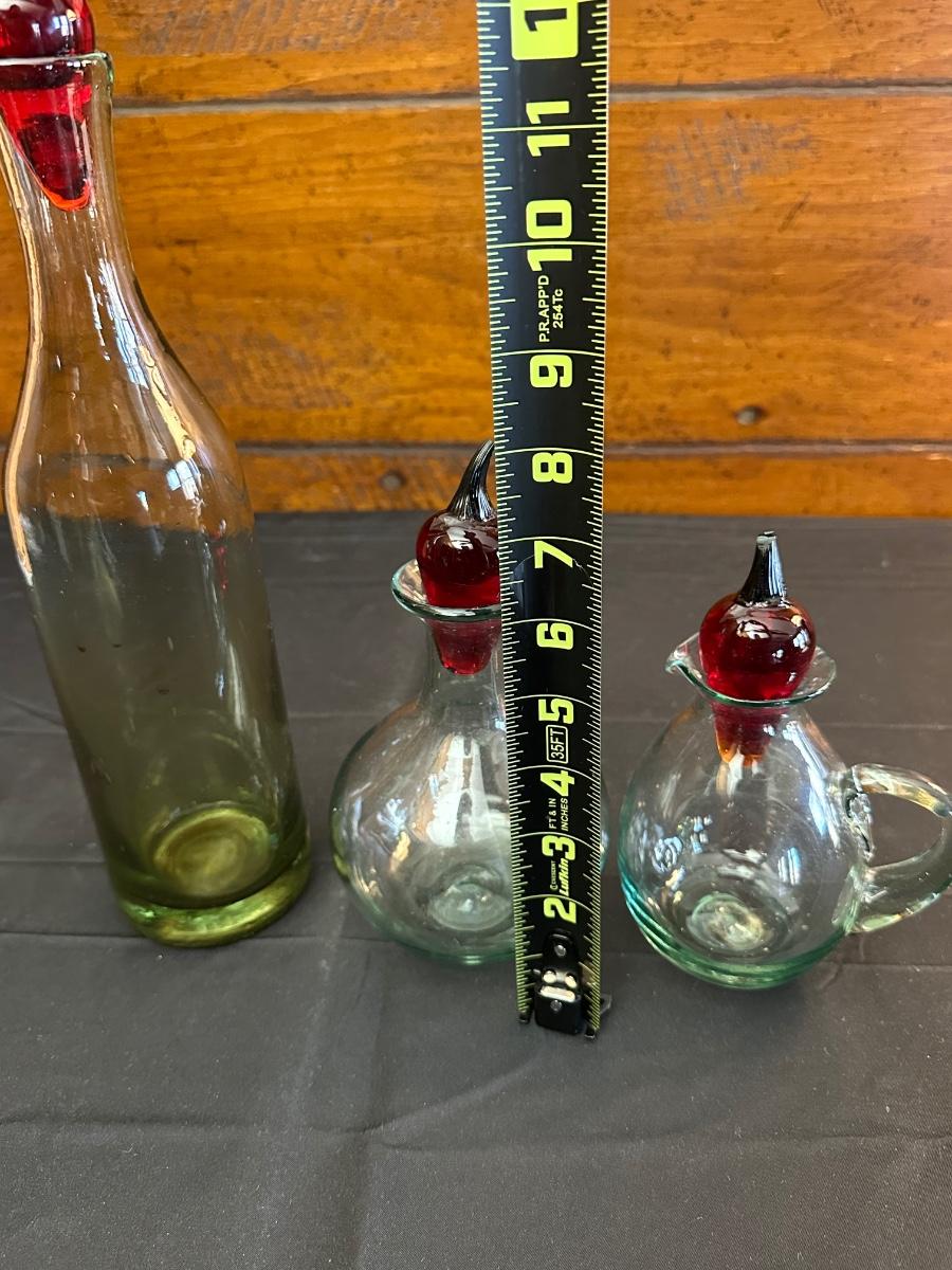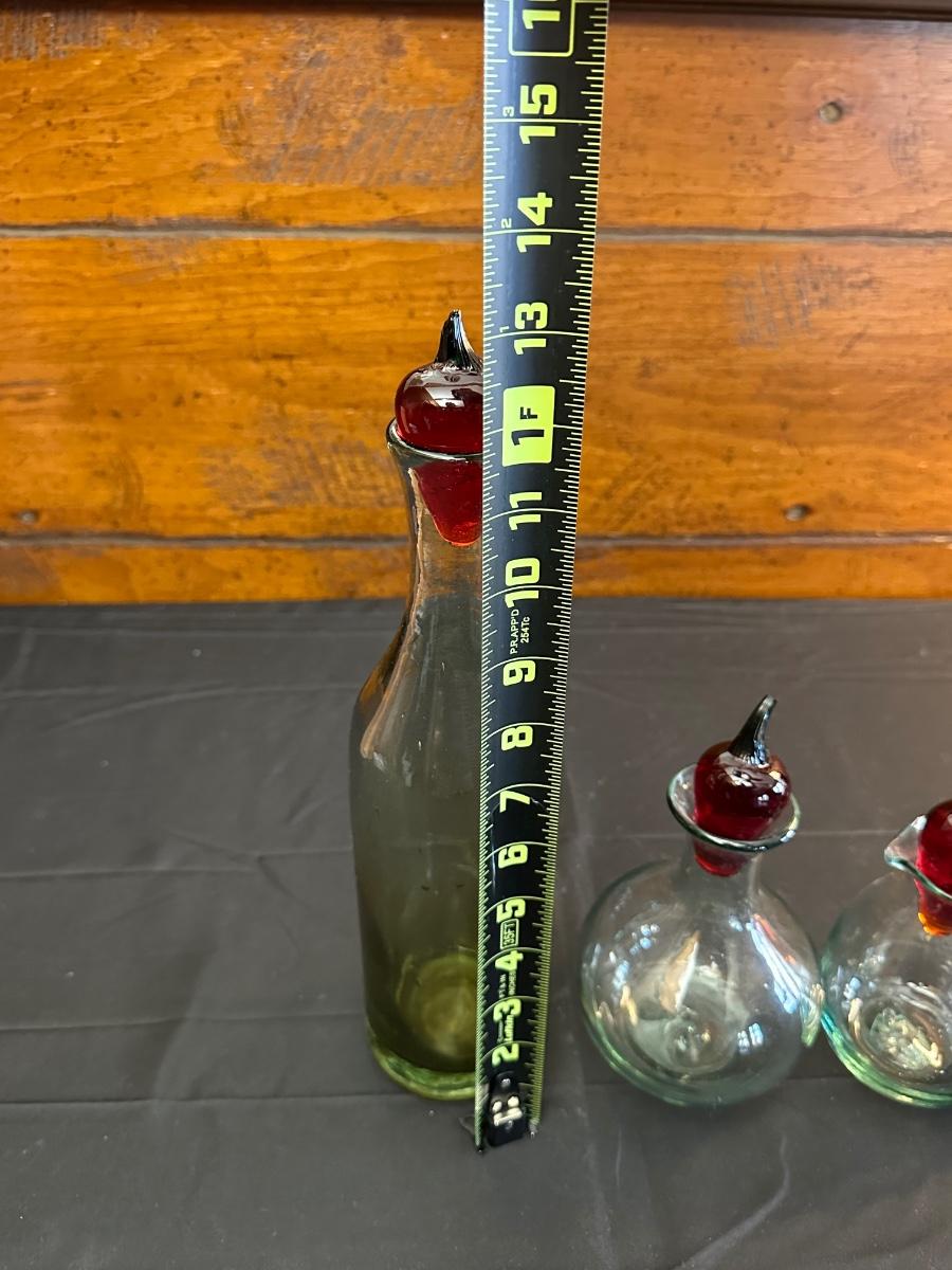 Vintage Hand Blown Glass Decanters and Ceramic Wine Holders