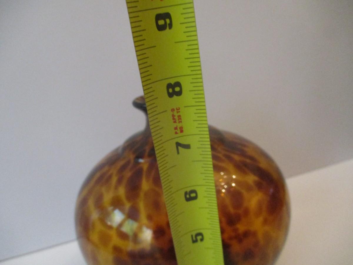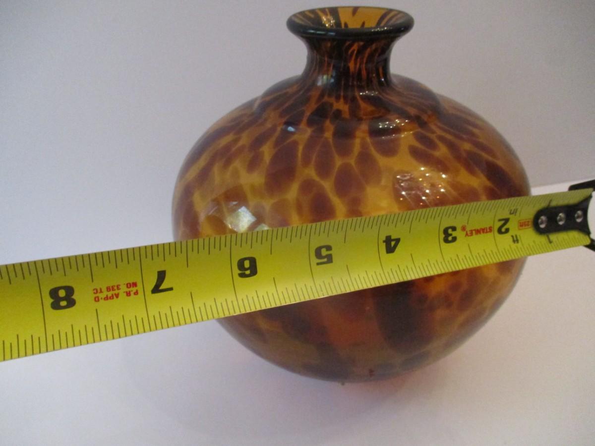 Vintage Hand Blown Glass Vase Amber Tortoise Shell Color Approx 7 1/2" Tall