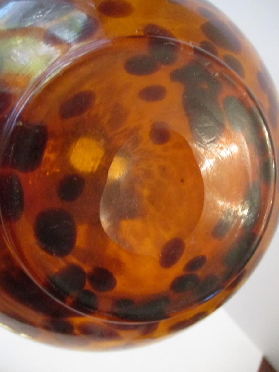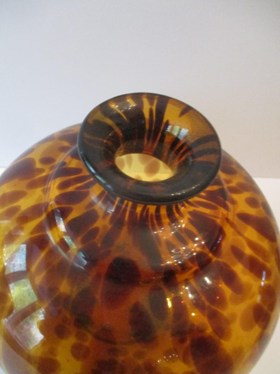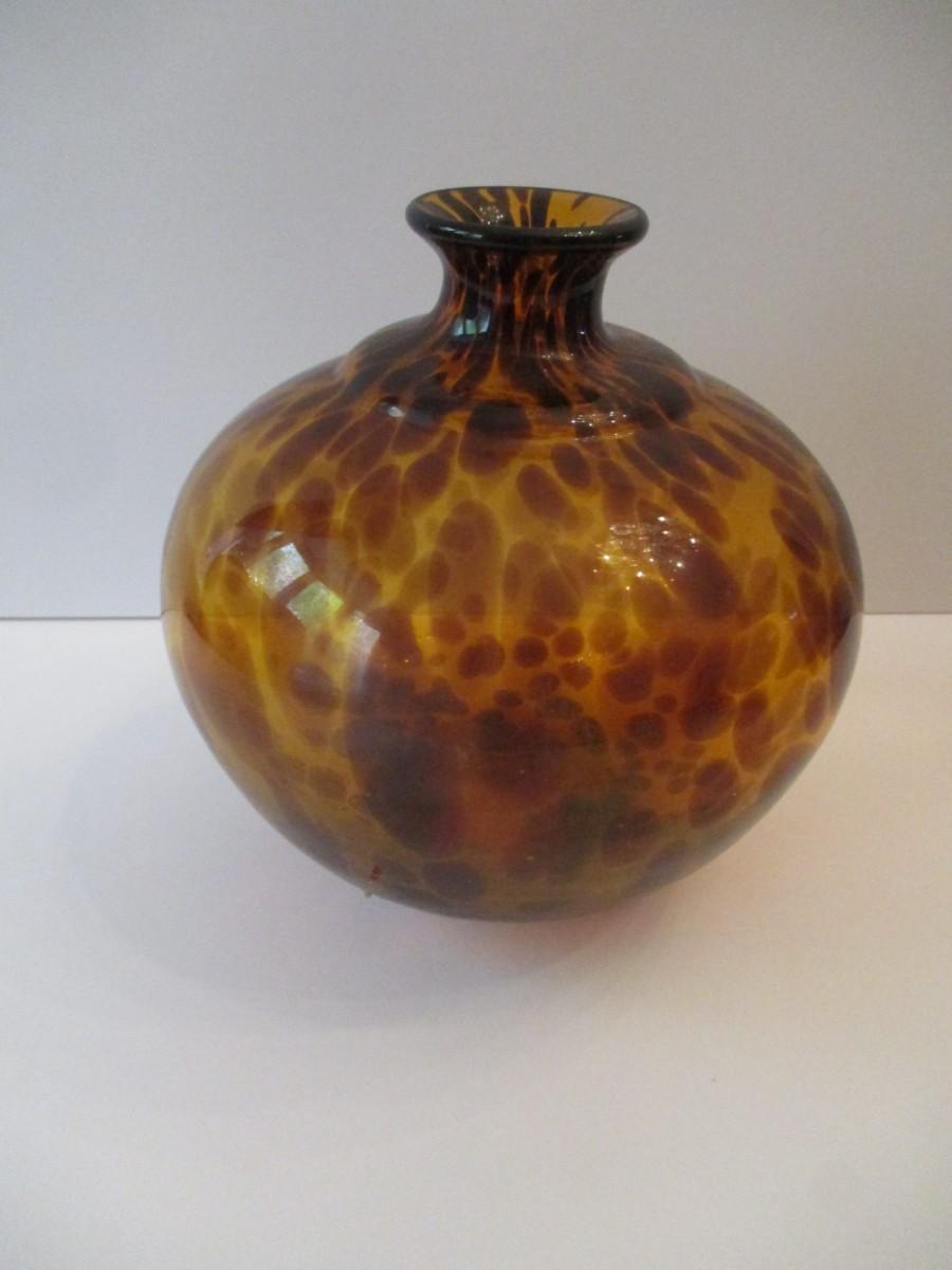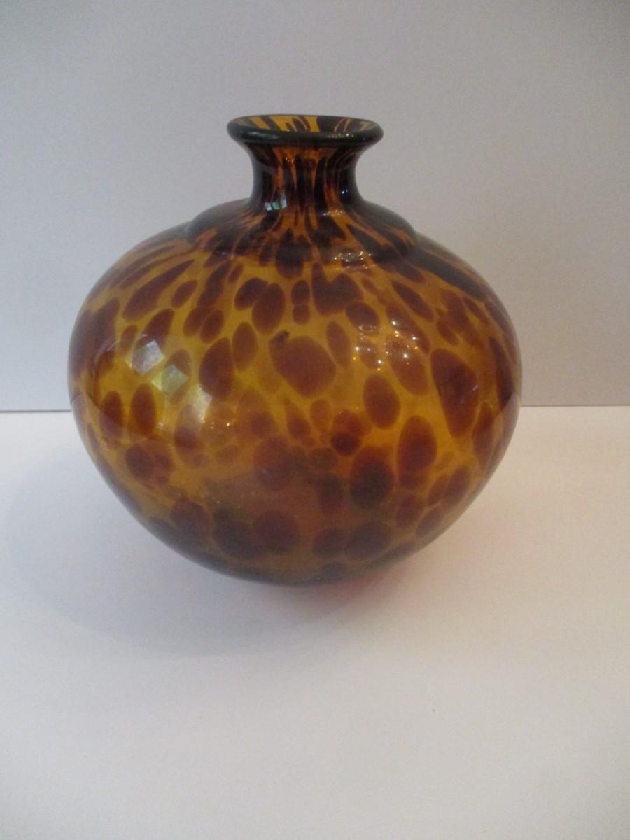 Vintage Hand Blown Glass Vase Amber Tortoise Shell Color