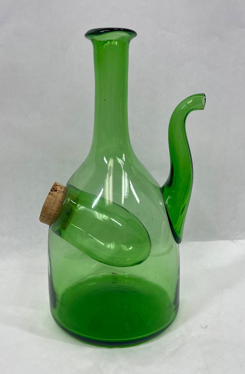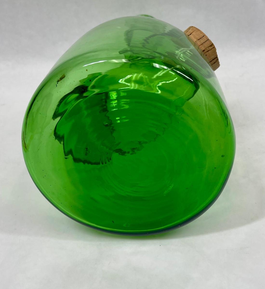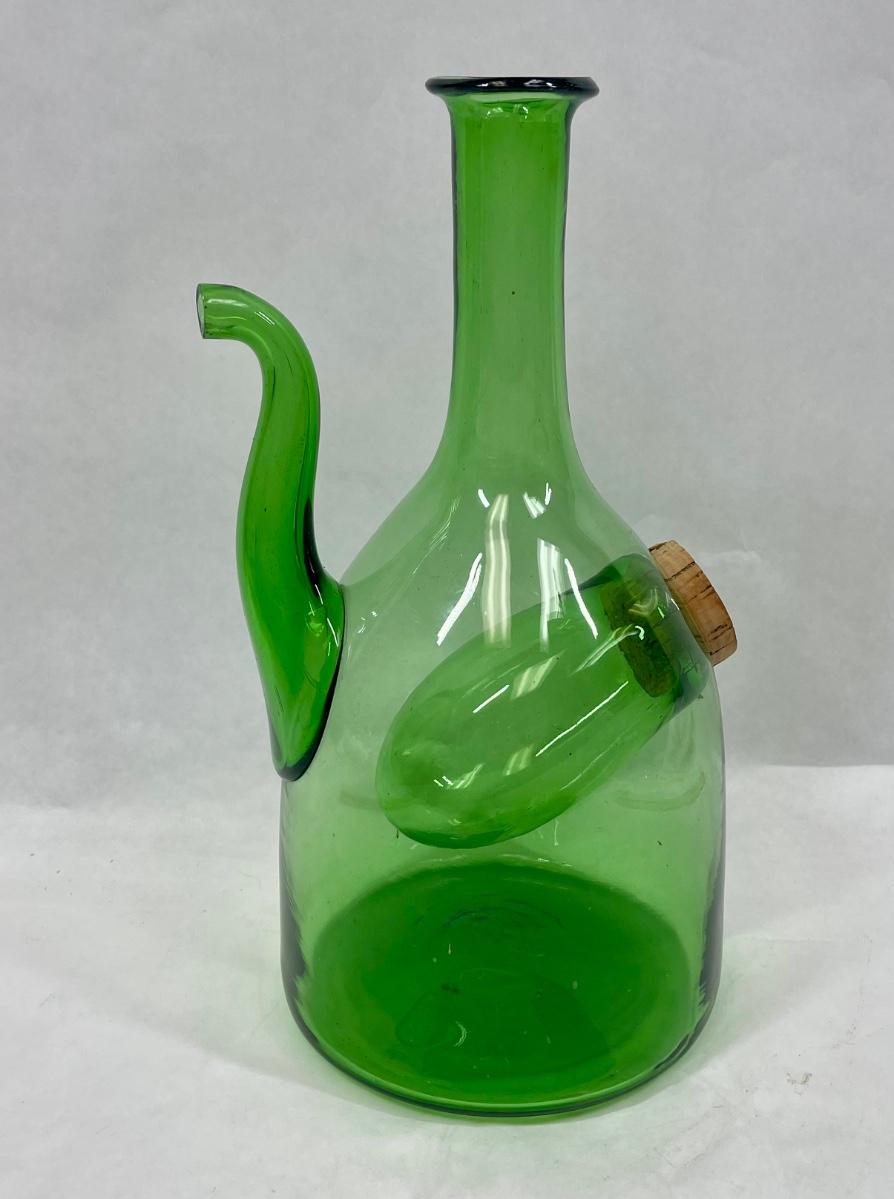 Vintage Hand Blown Green Glass Wine Decanter w/ ice chamber