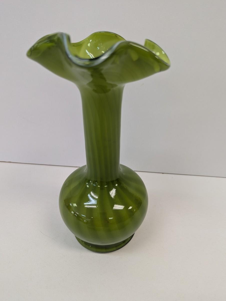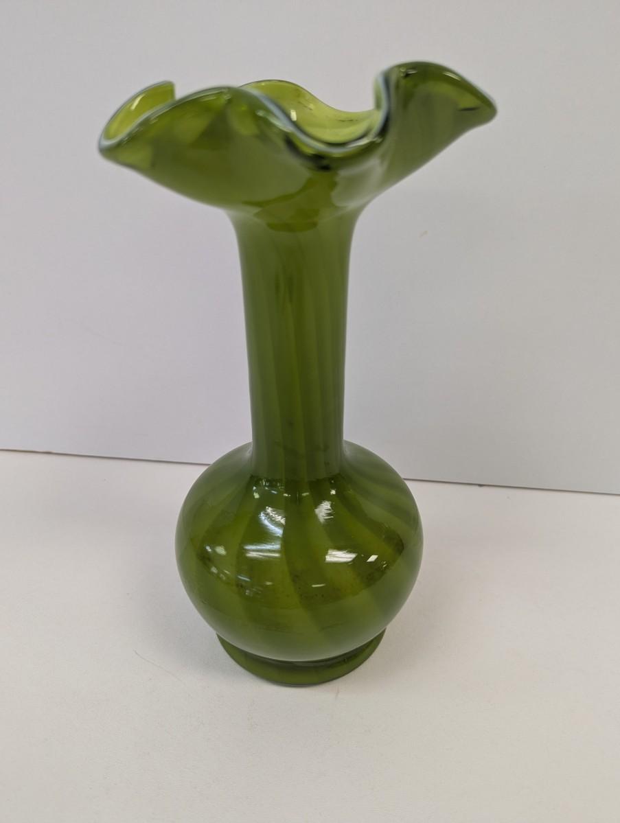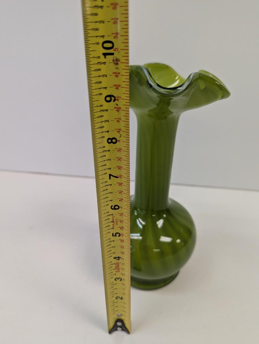 Vintage Hand Blown Green Vase Approx 9 3/4" Tall