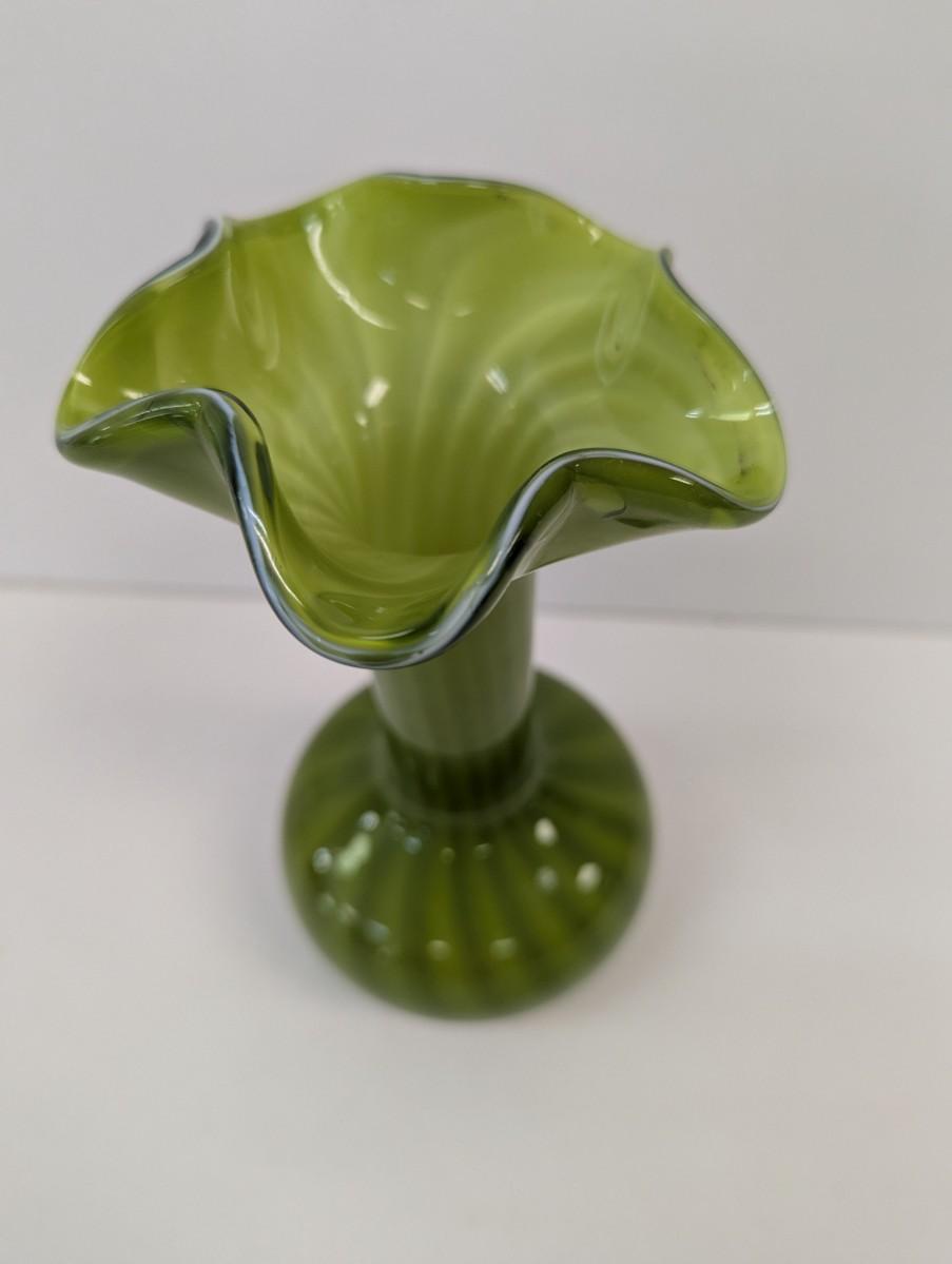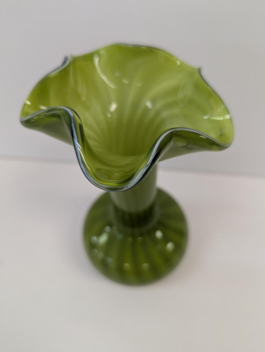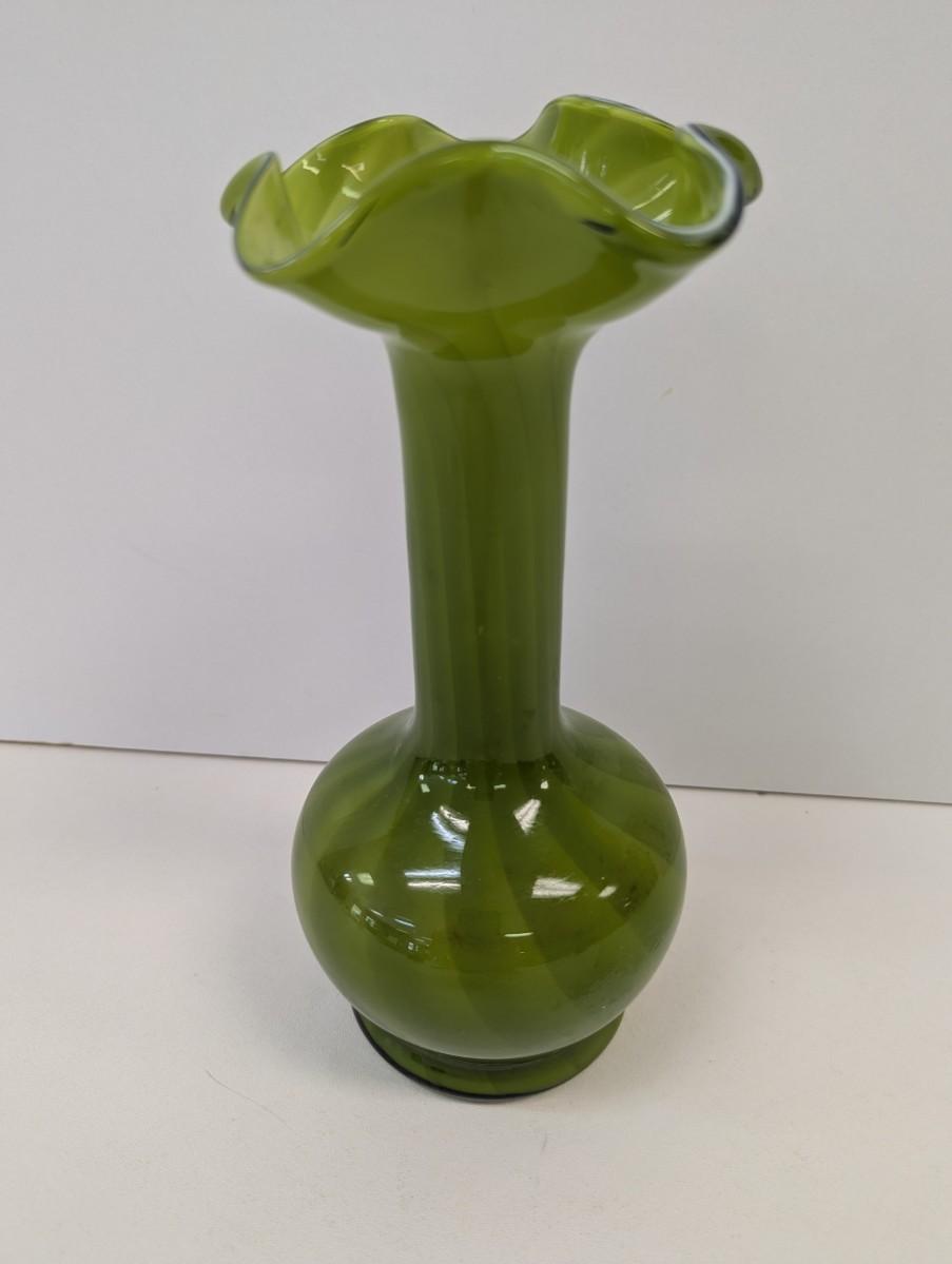 Vintage Hand Blown Green Vase Approx 9 3/4" Tall