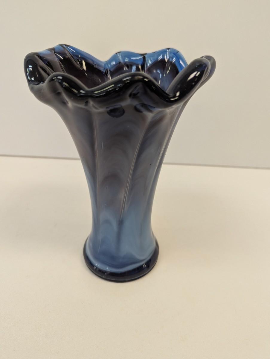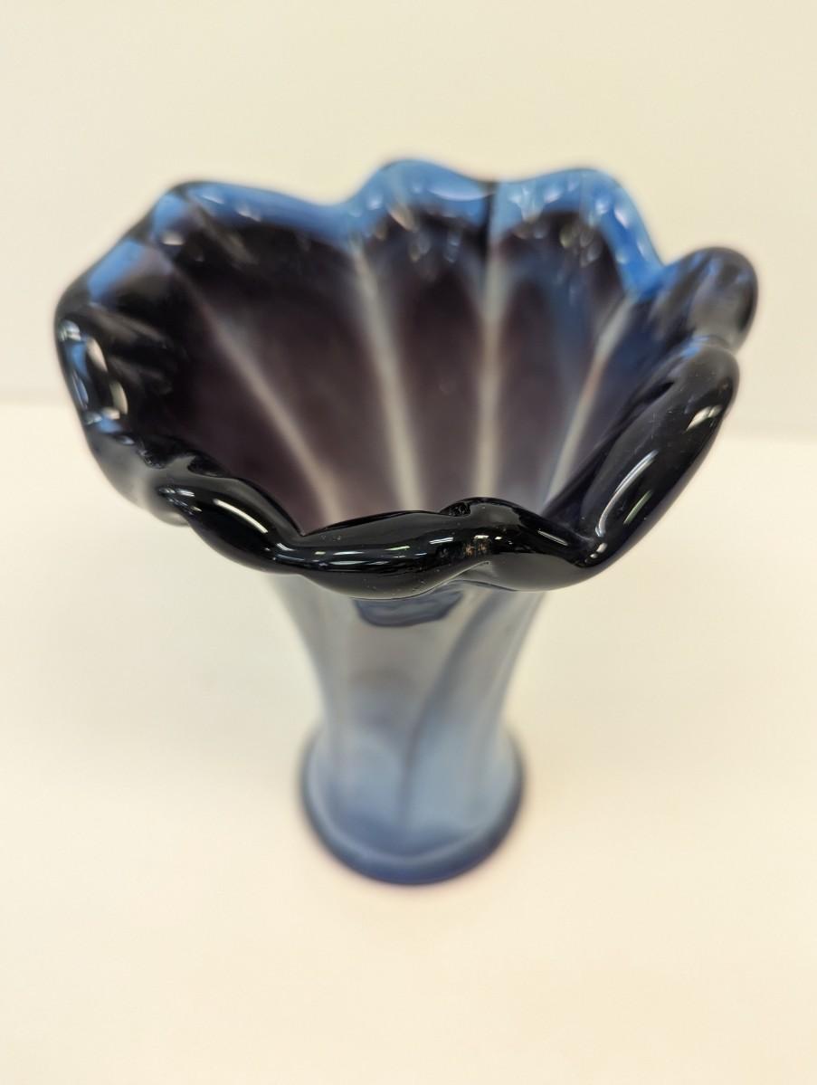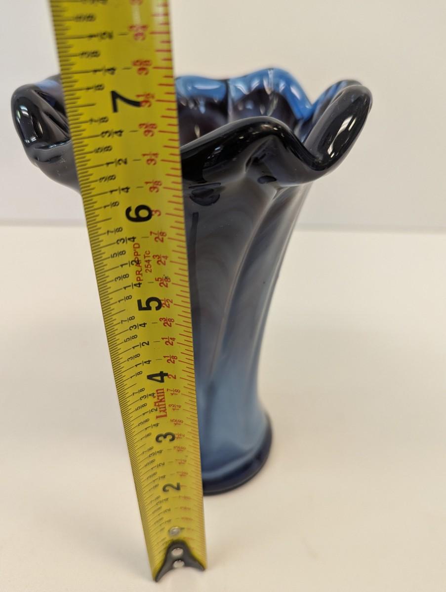 Vintage Hand Blown Murano Style Glass Vase Blue Approx 6 1/2" Tall