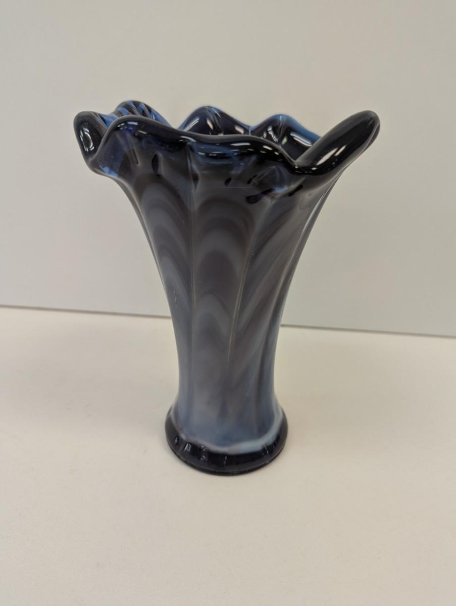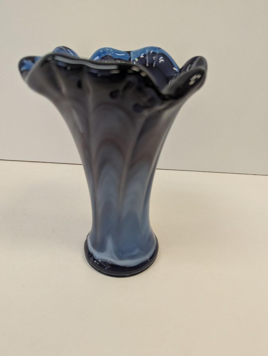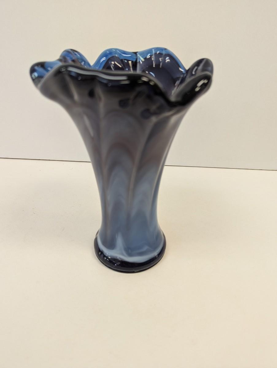 Vintage Hand Blown Murano Style Glass Vase Blue Approx 6 1/2" Tall