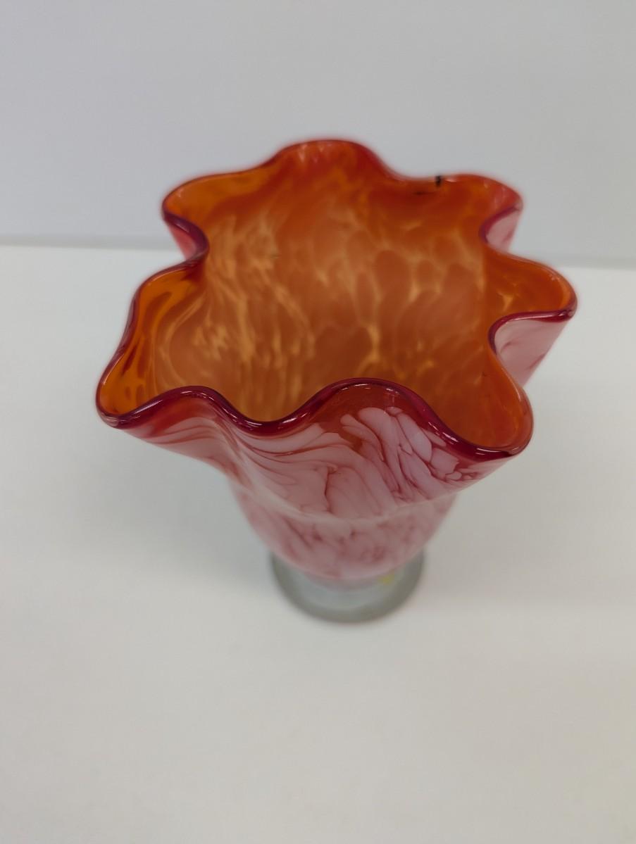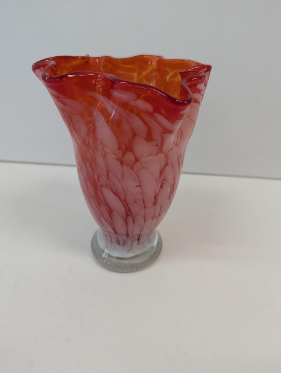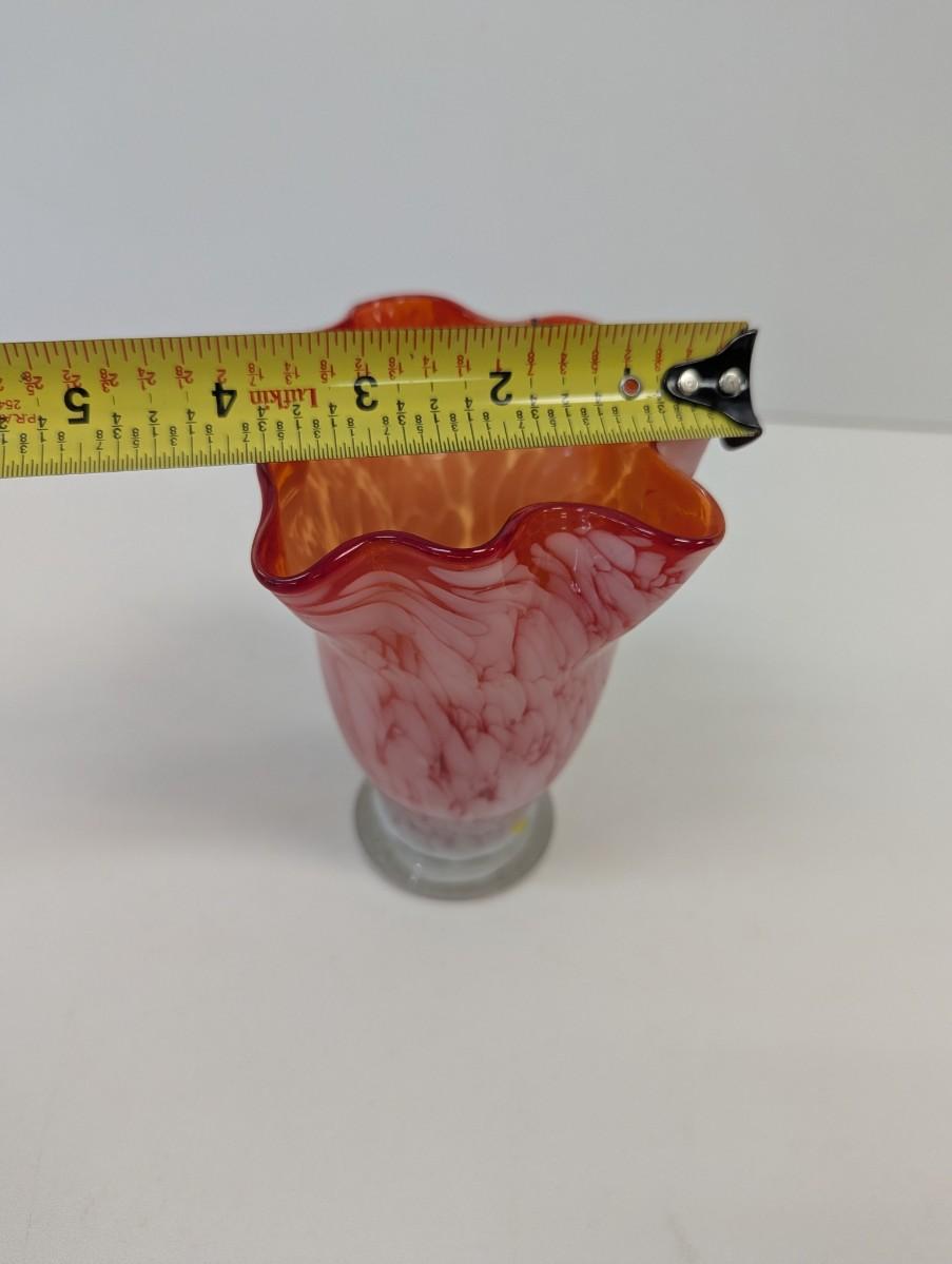 Vintage Hand Blown Orange White Hankerchief Vase 5 1/2" Tall