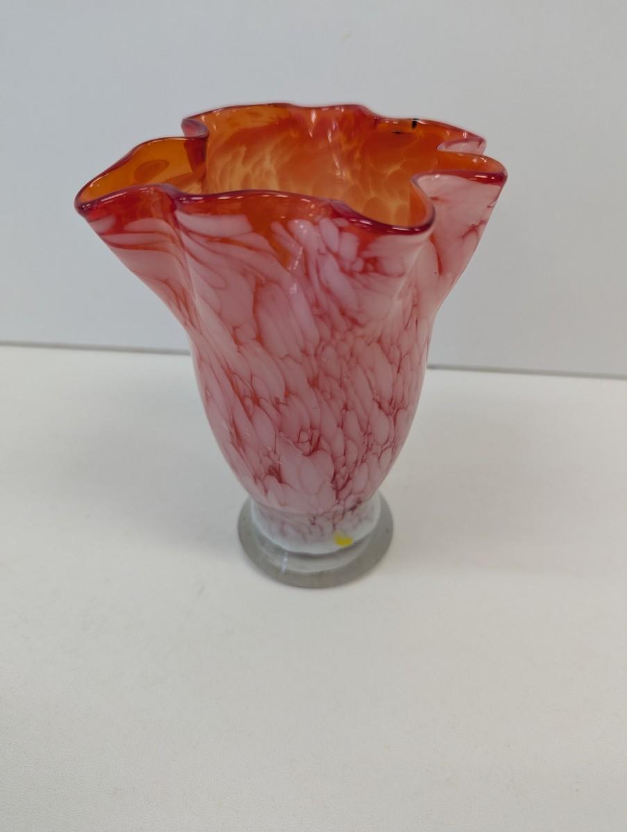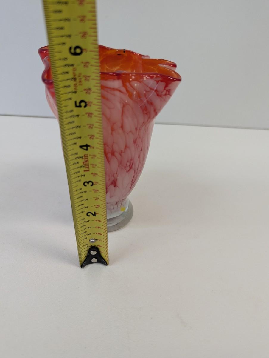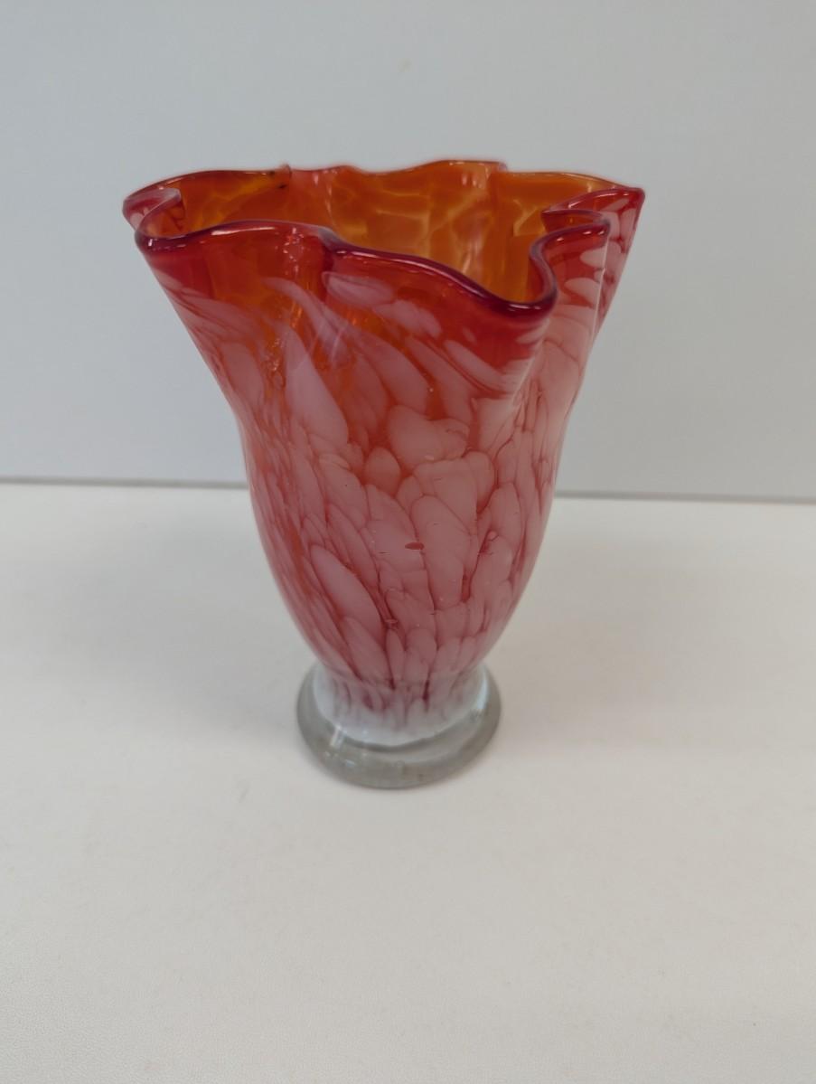 Vintage Hand Blown Orange White Hankerchief Vase 5 1/2" Tall