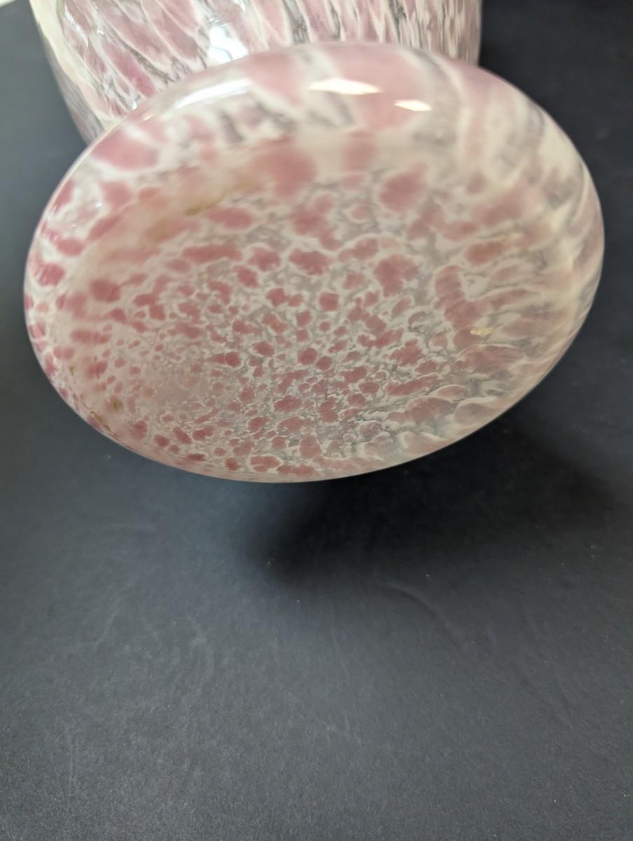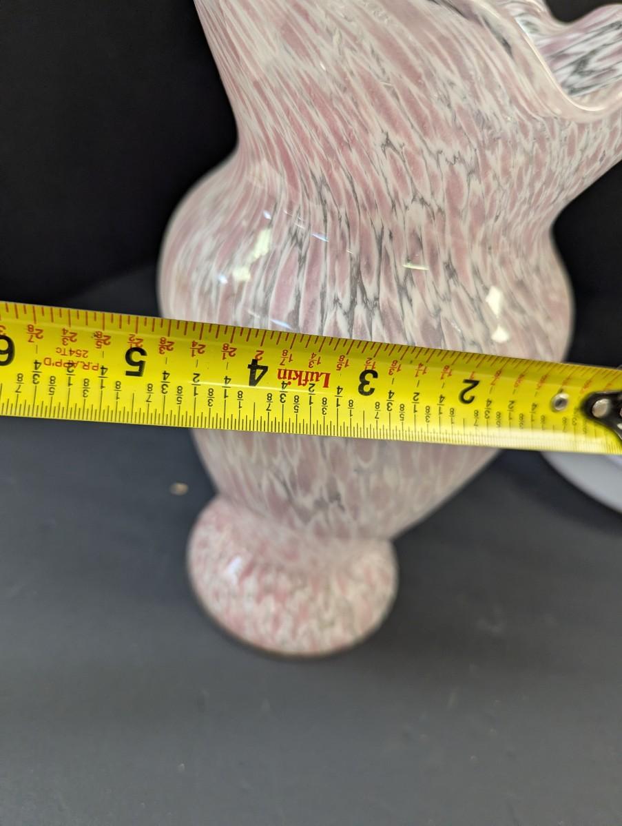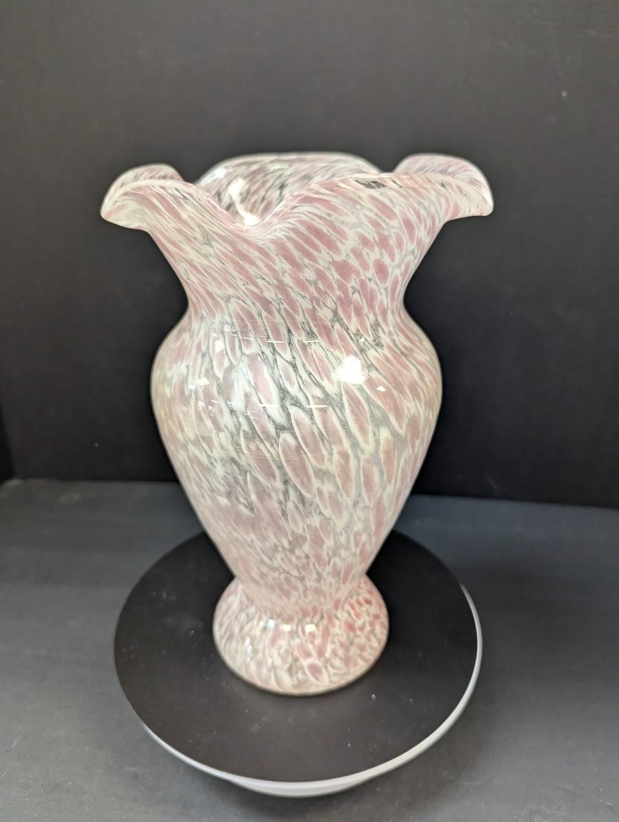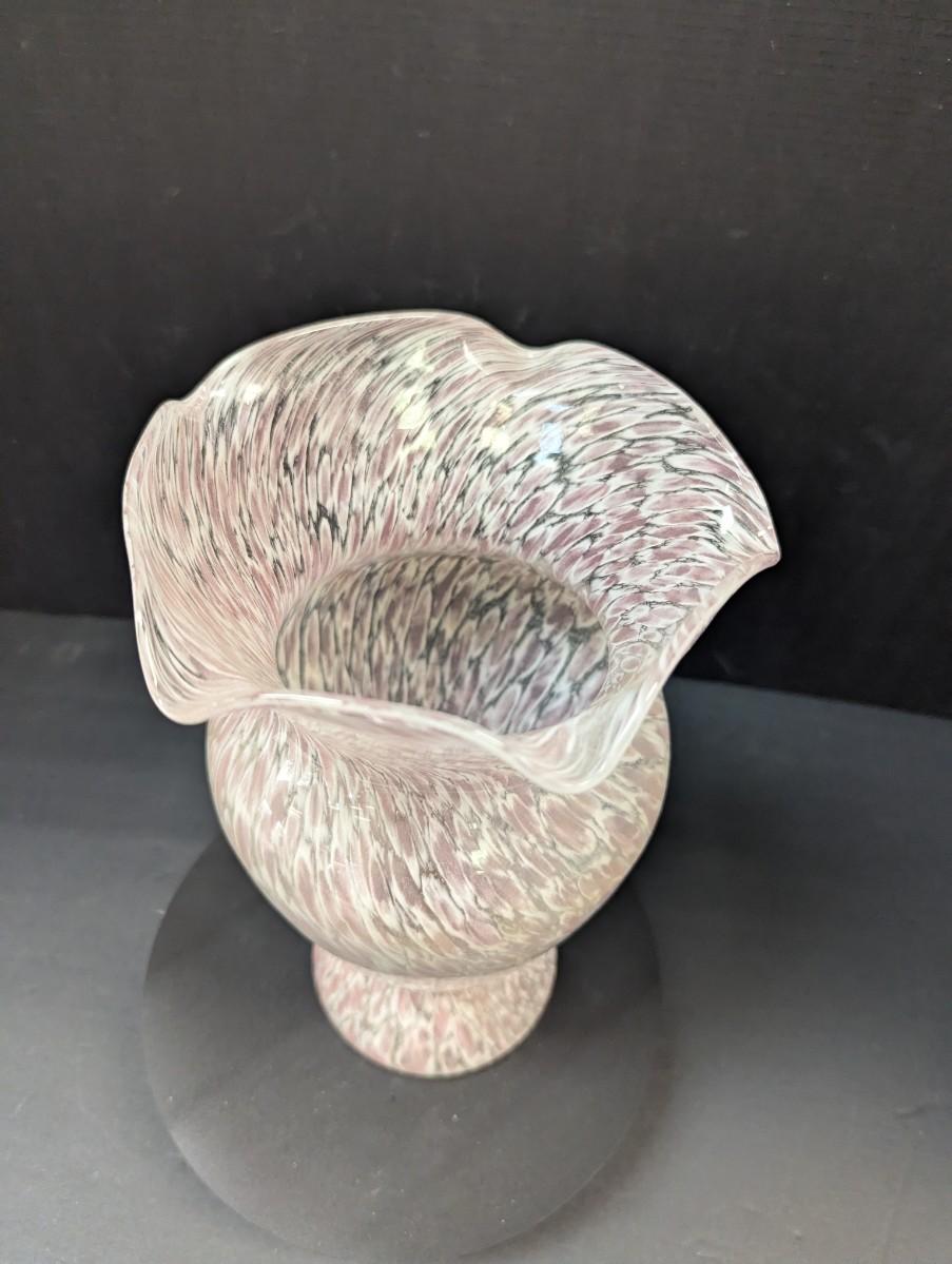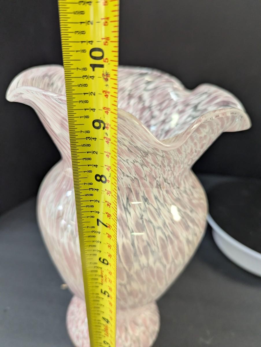 Vintage Hand Blown Pink Mottled Glass Ruffle Vase