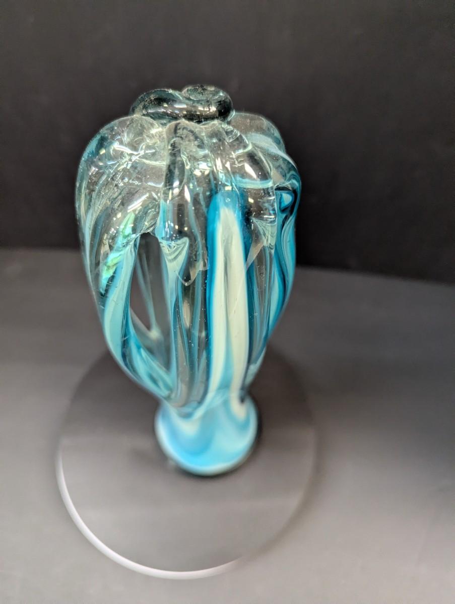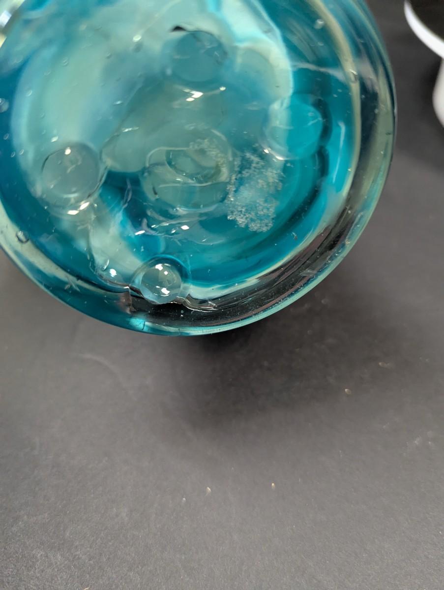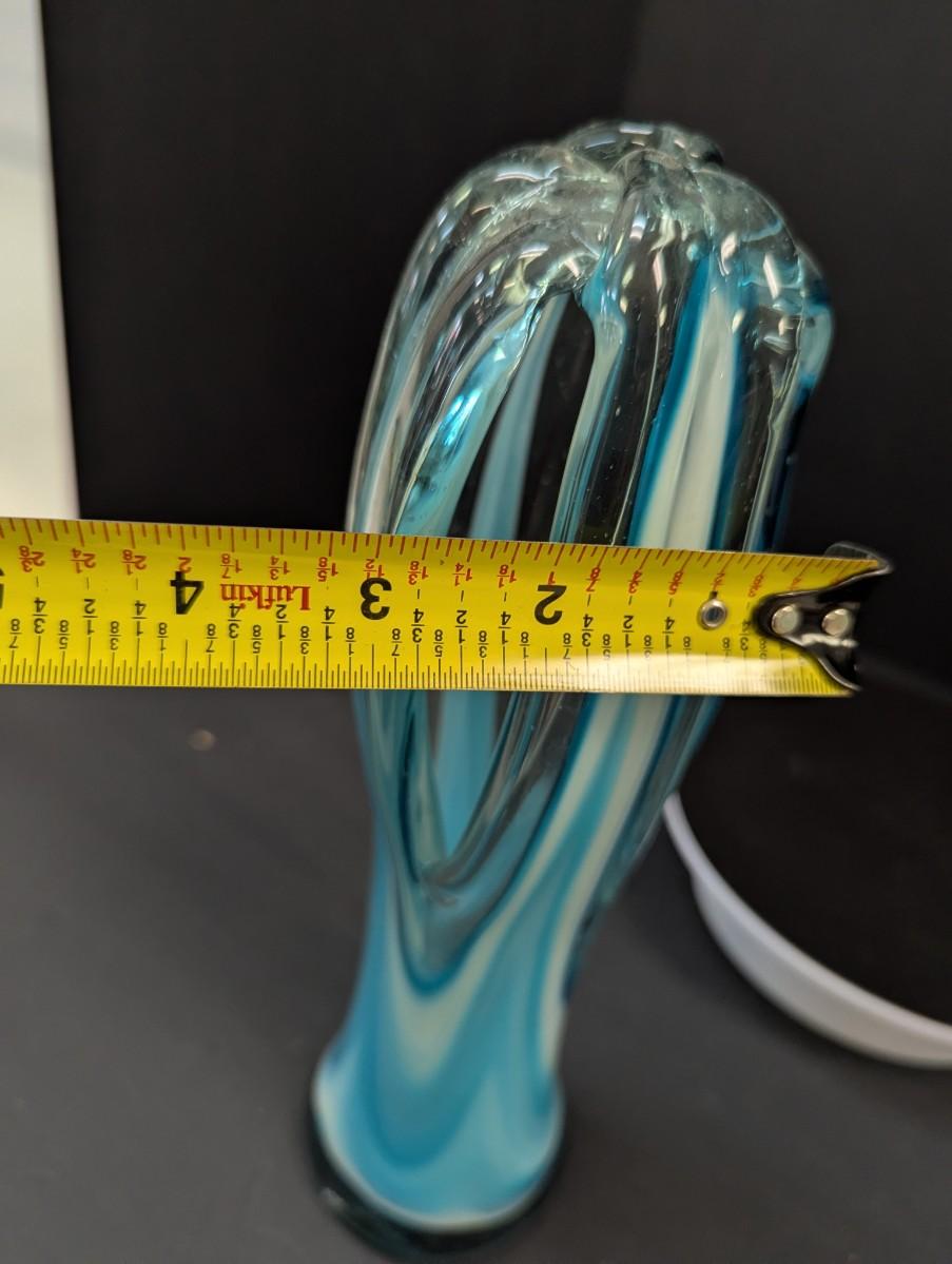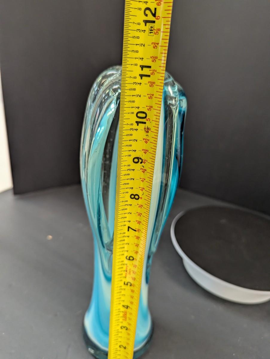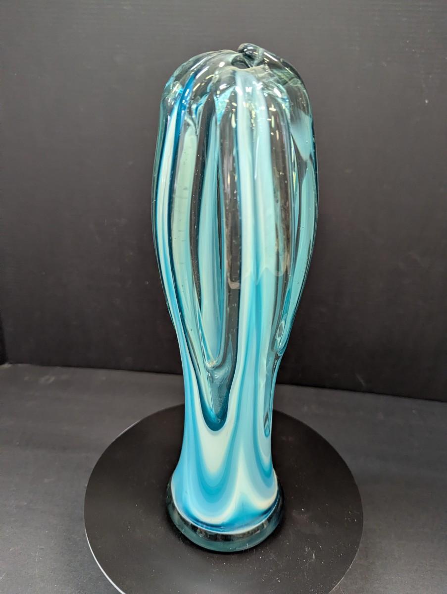 Vintage Blue & White Hand Blown Studio Art Glass Vase