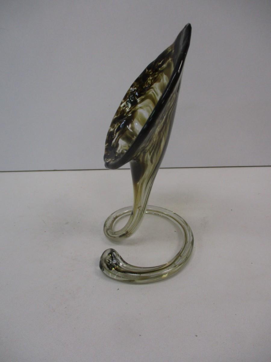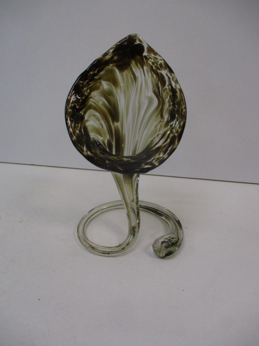 Vintage Hand Blown Swirl Calla Lily Sculpture Vase Decor