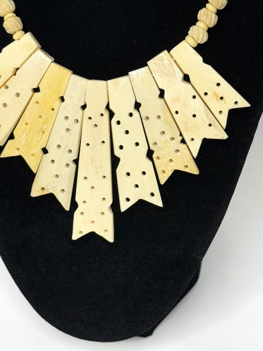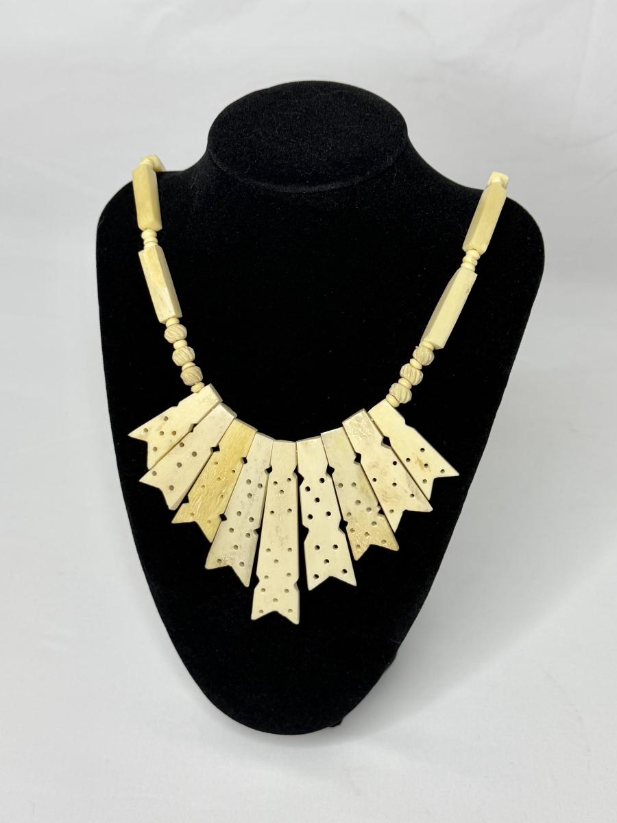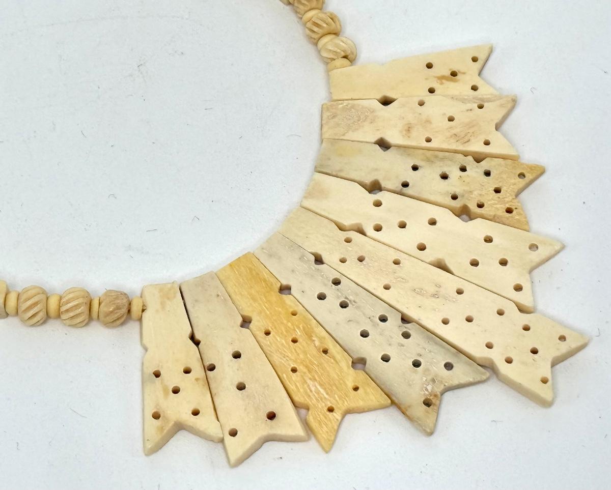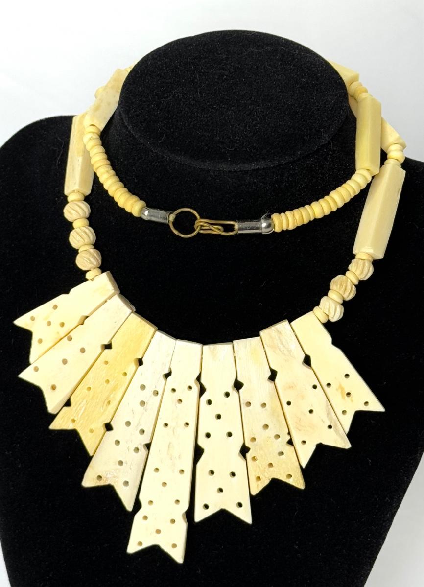 Vintage Hand Carved Bone Necklace with Hook Clasp