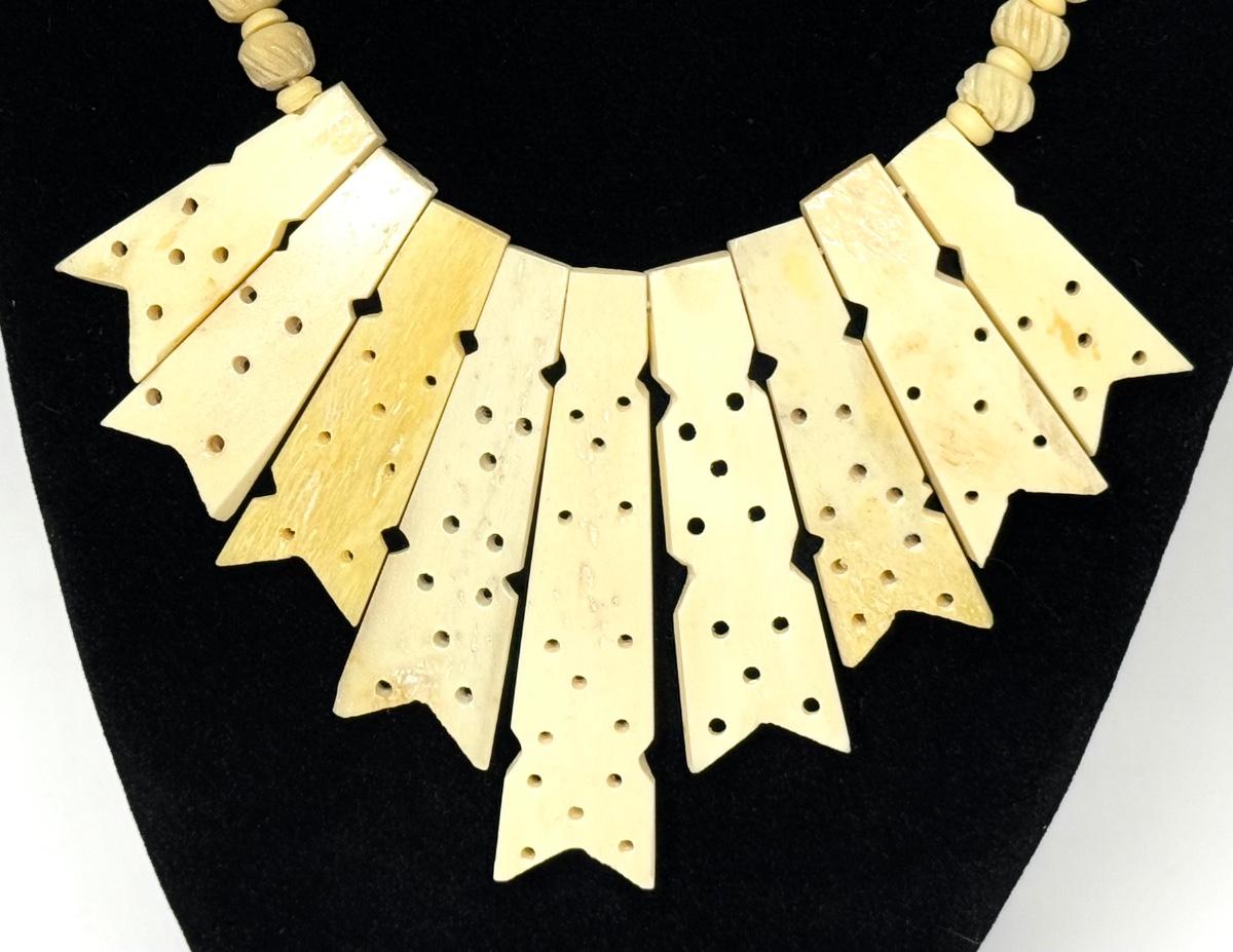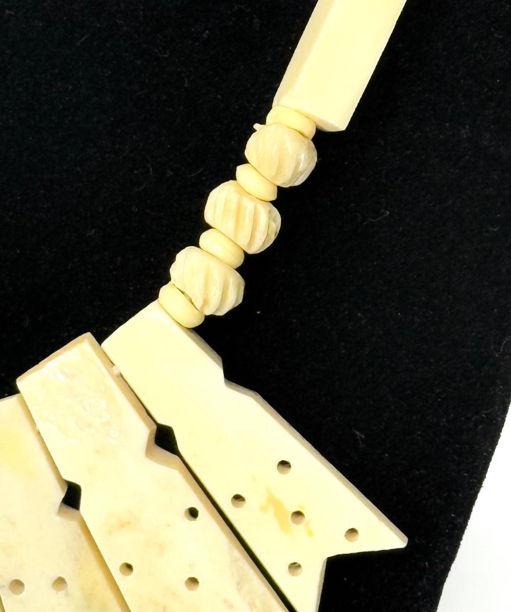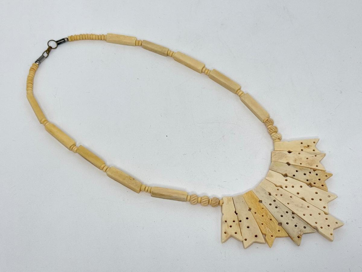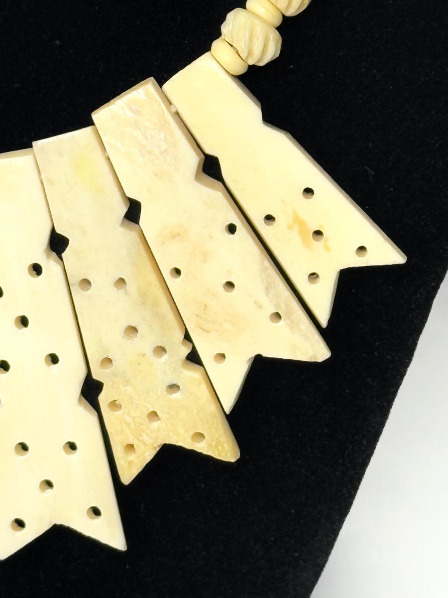 Vintage Hand Carved Bone Necklace with Hook Clasp