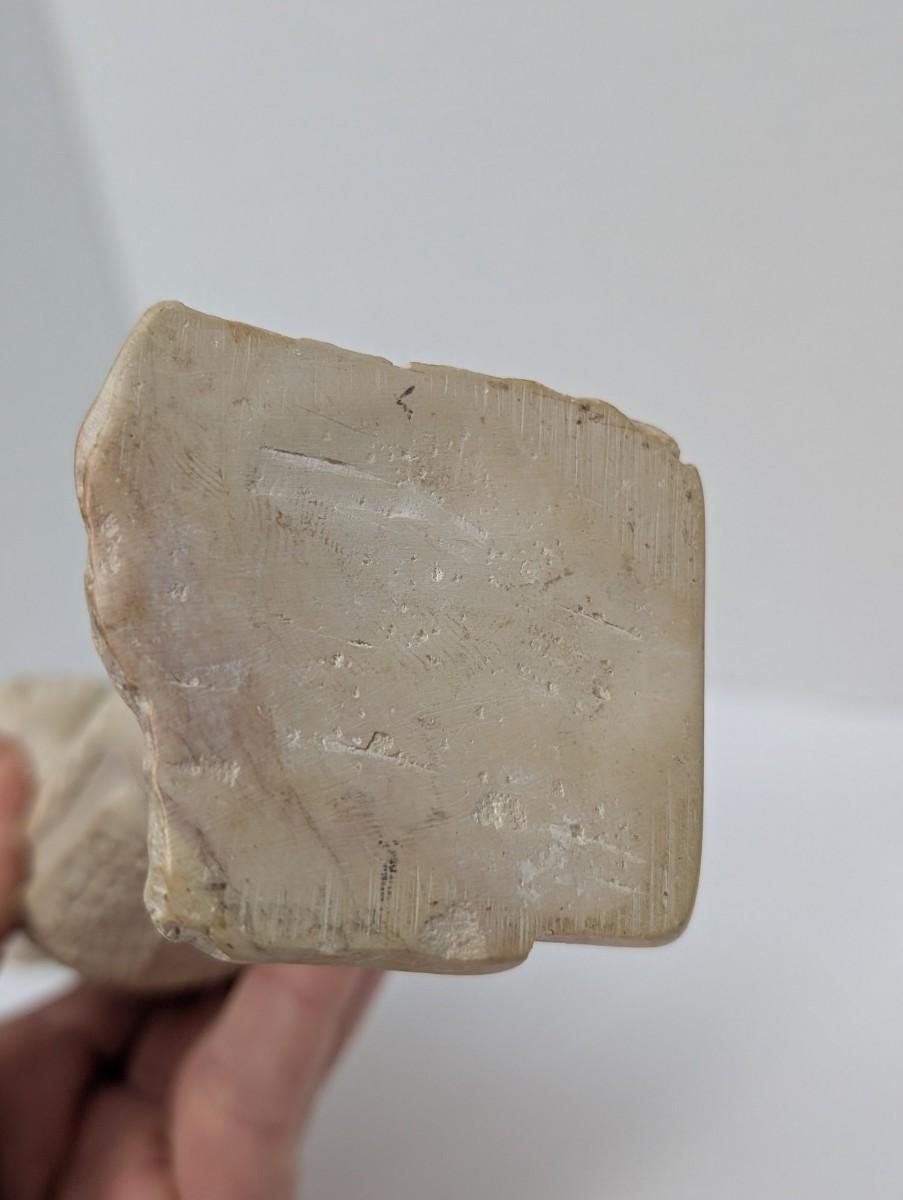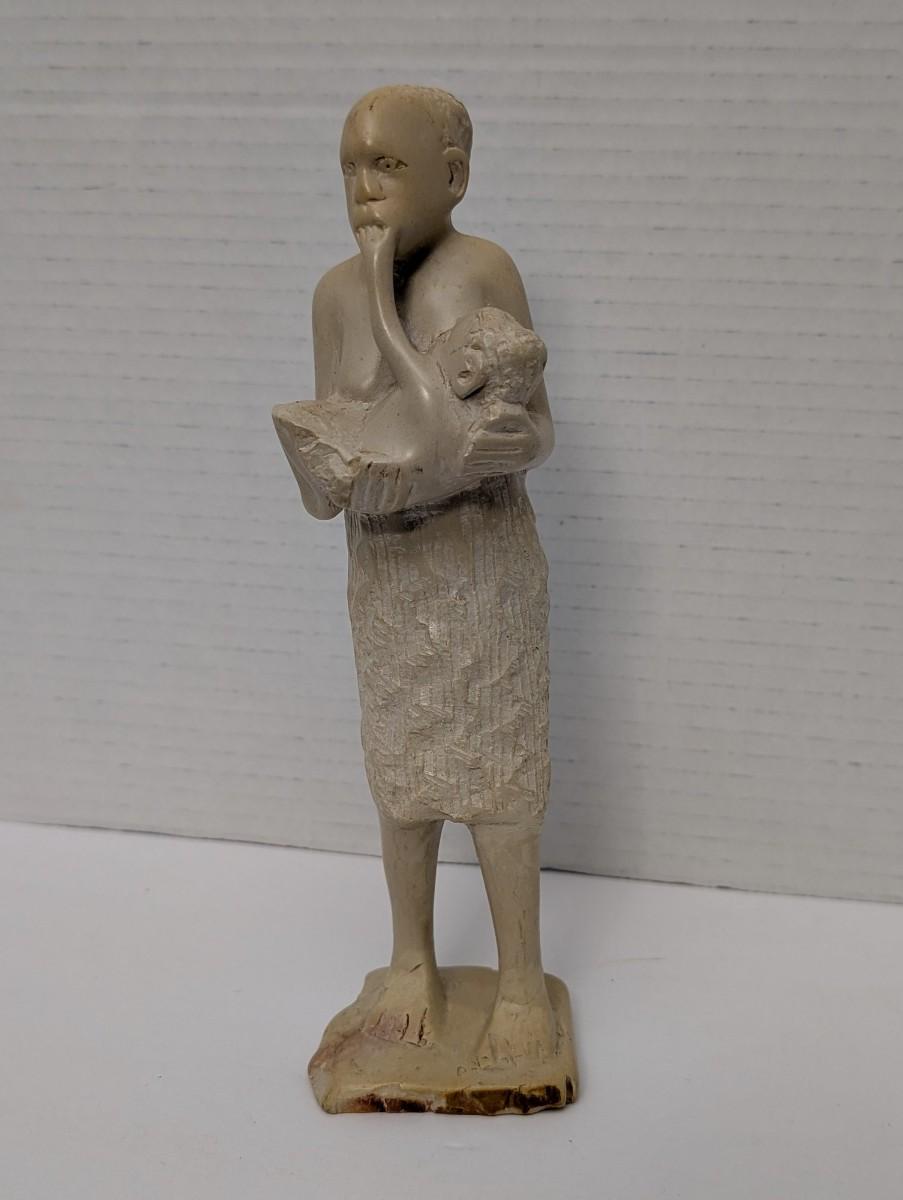 This vintage hand carved figurine depicts a woman in a simple wrap skirt holding a child in her arms, crafted with expressive detail and a rustic folk art style. The natural tone of the wood or stone-like material highlights the handmade character, making it both symbolic and decorative. A meaningful collectible for those who appreciate artisan carvings, cultural art, or representations of motherhood and family.