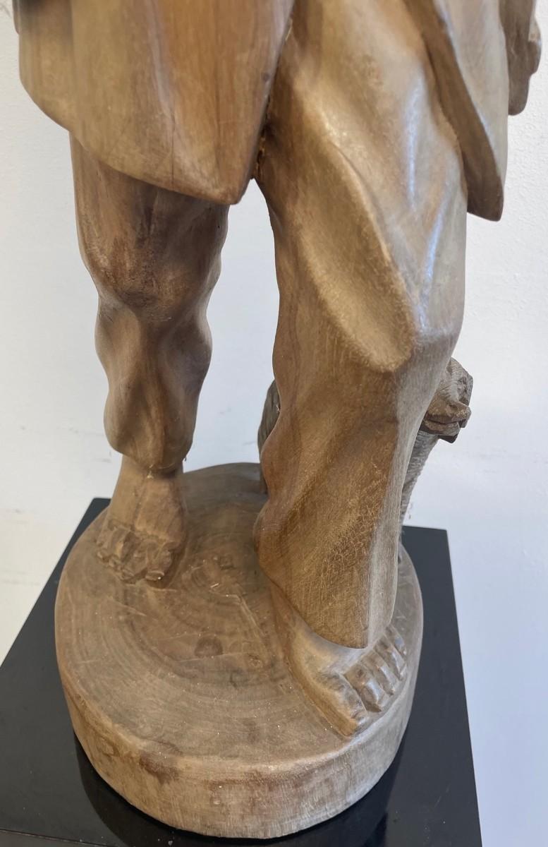 Description: Vintage Hand Carved Folk Art Male SculptureMeasurement approximate: 28"h. Material: Wood