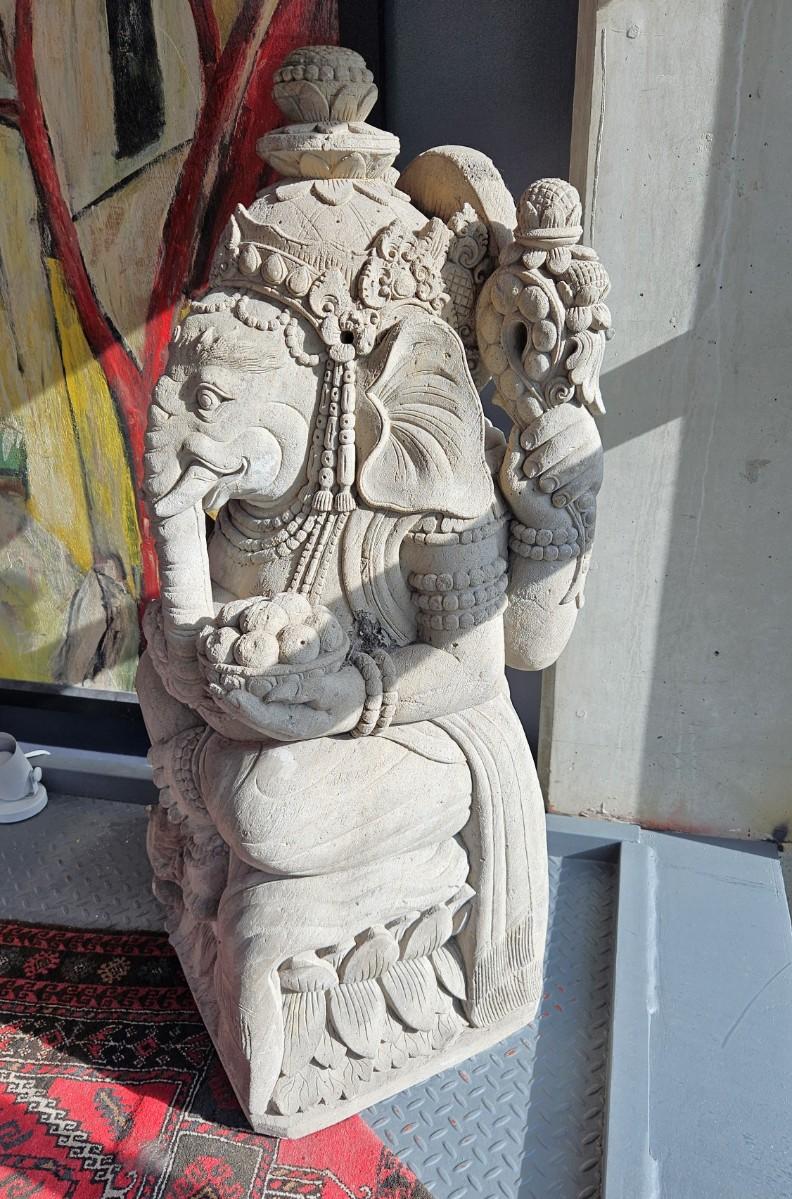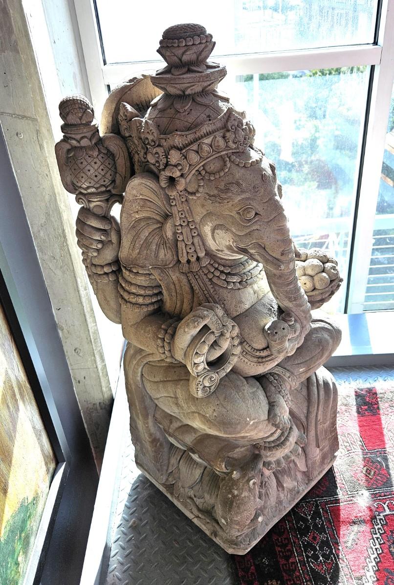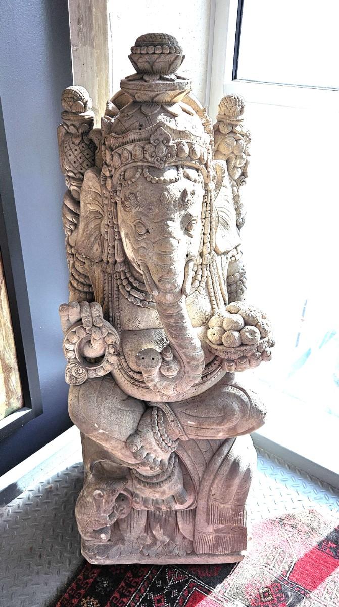 Vintage Hand Carved Stone Ganesha Statue, 43H, 15W
