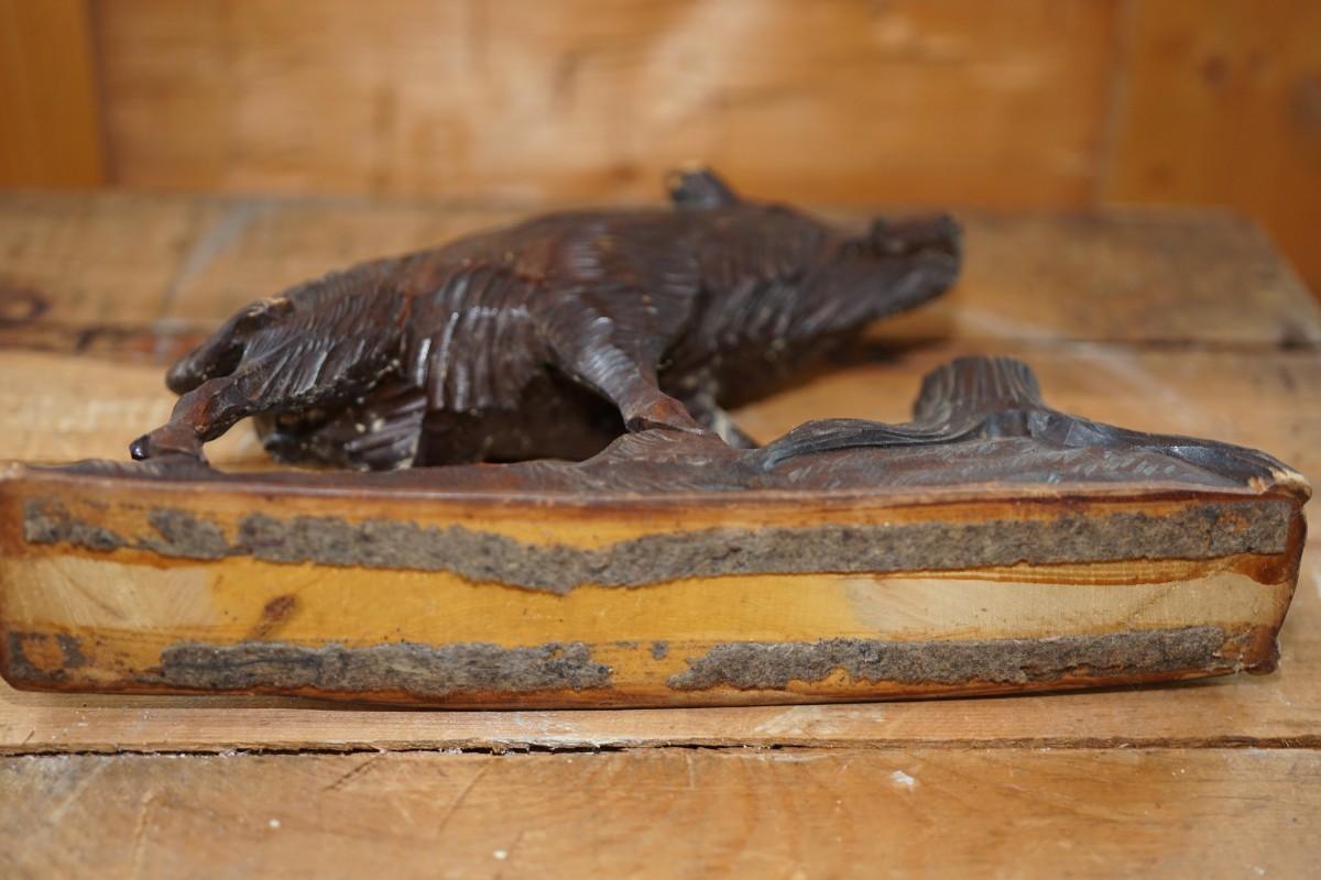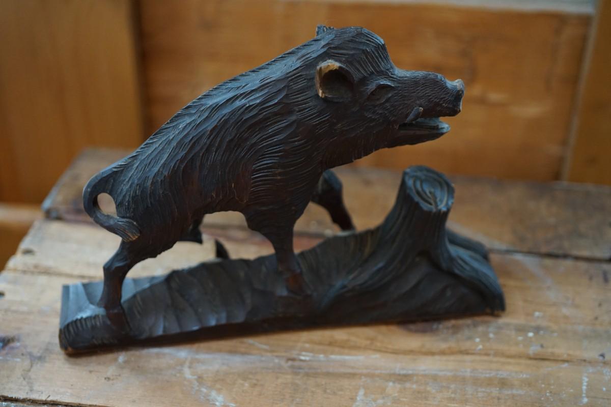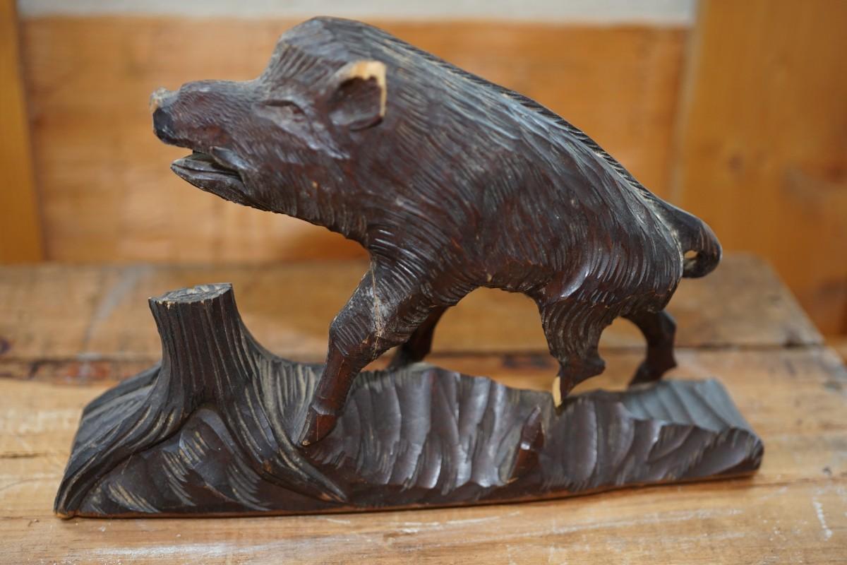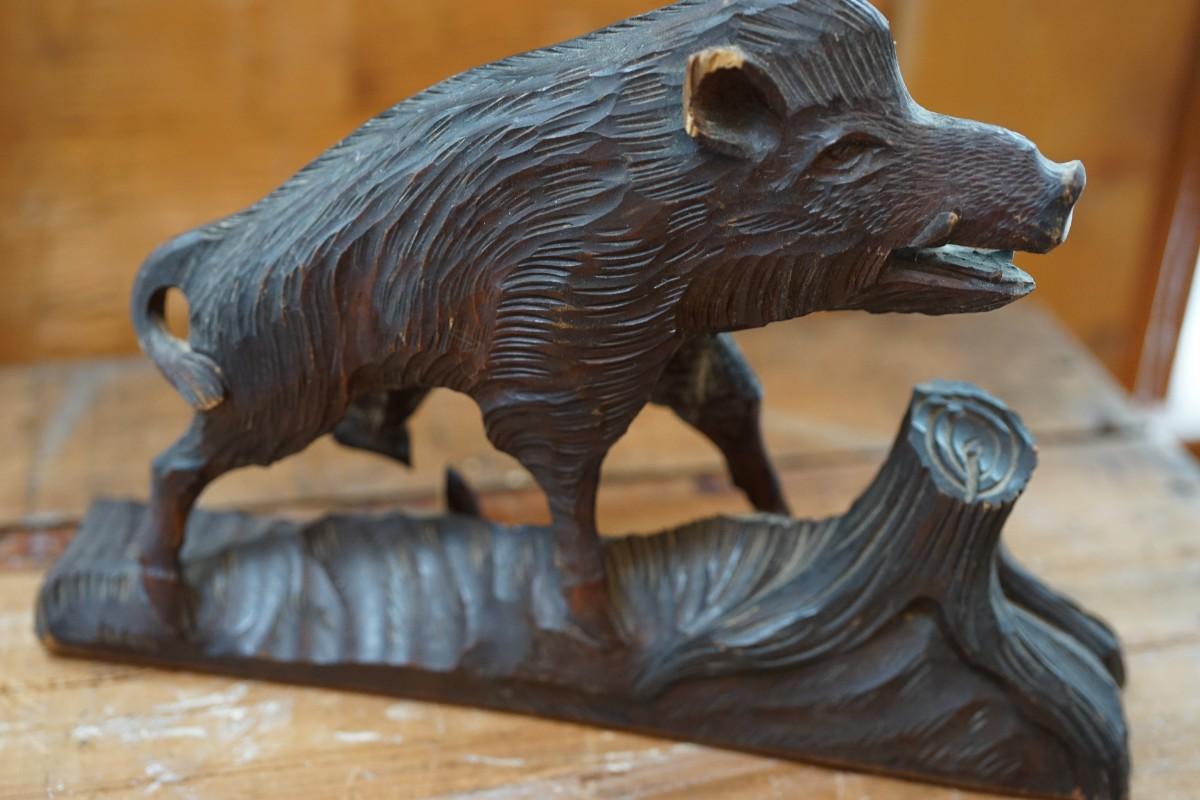 hand carved boar. Primitive very nicely done. On a wood carved platform