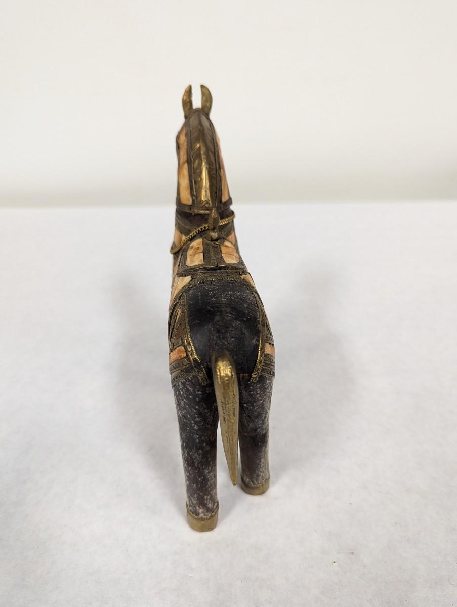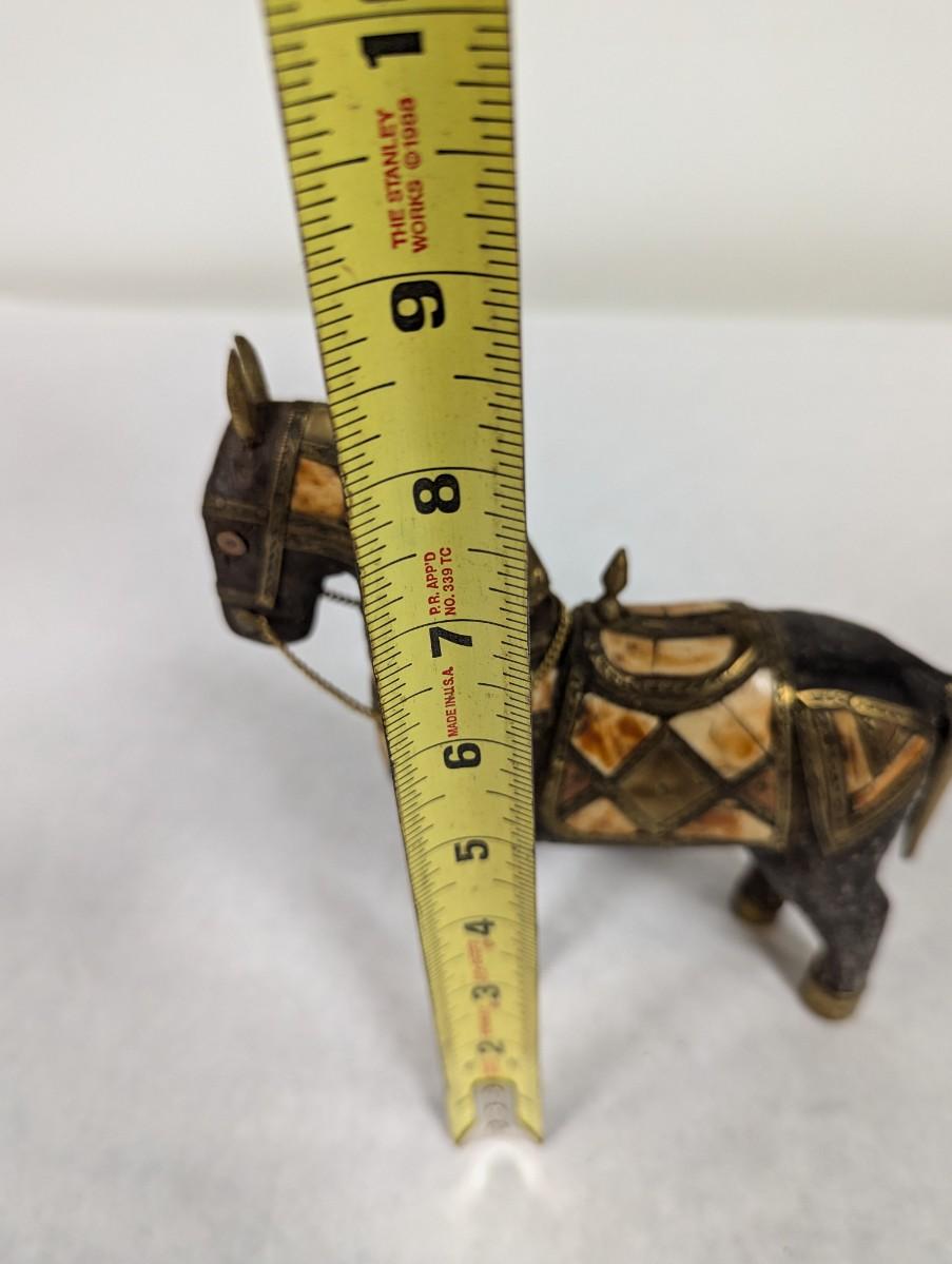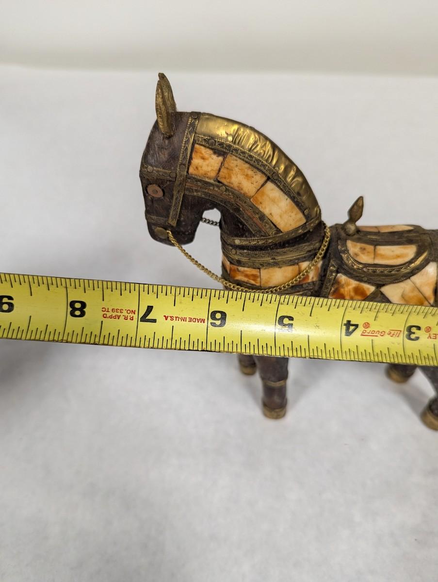 Vintage Hand Carved Wood Brass & Stone Inlay Horse