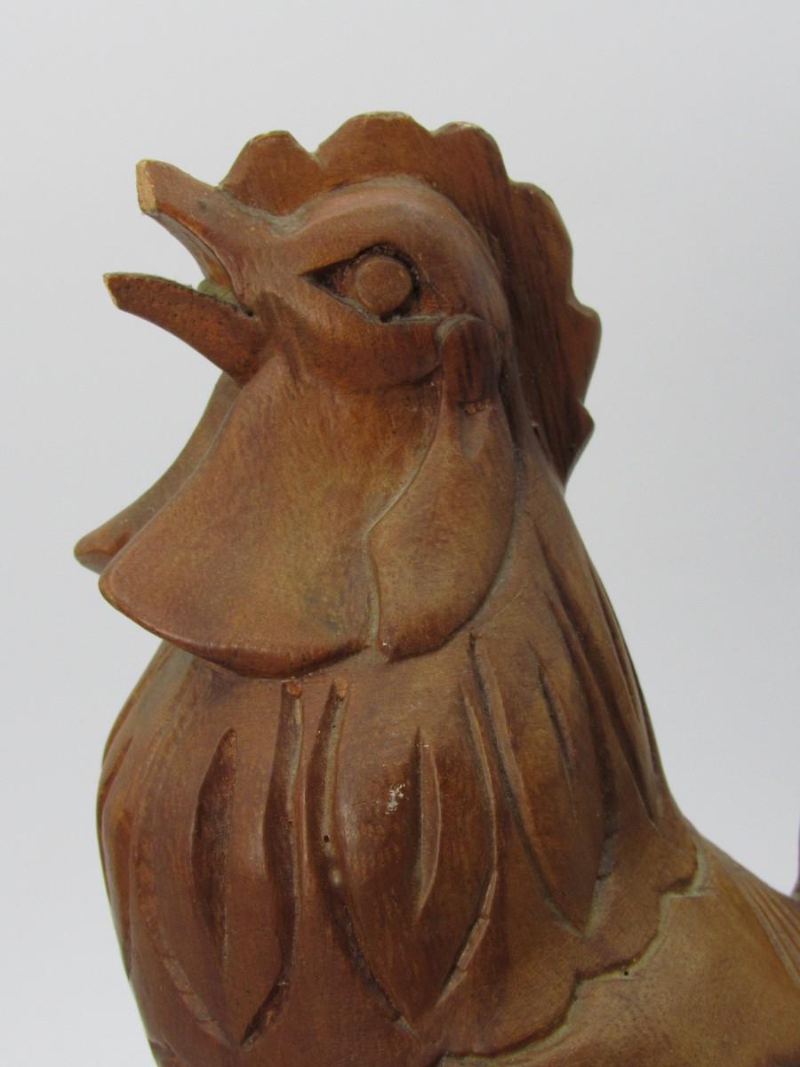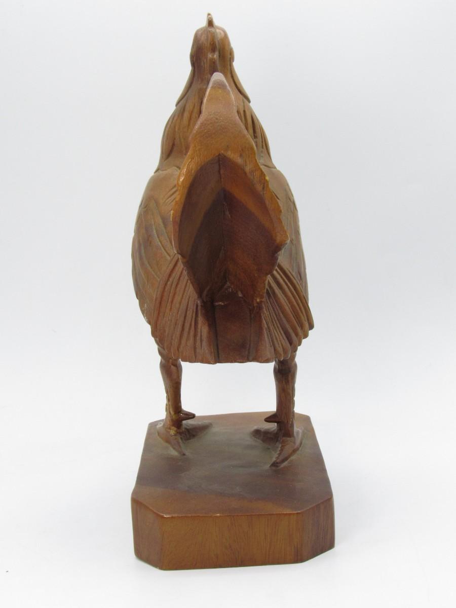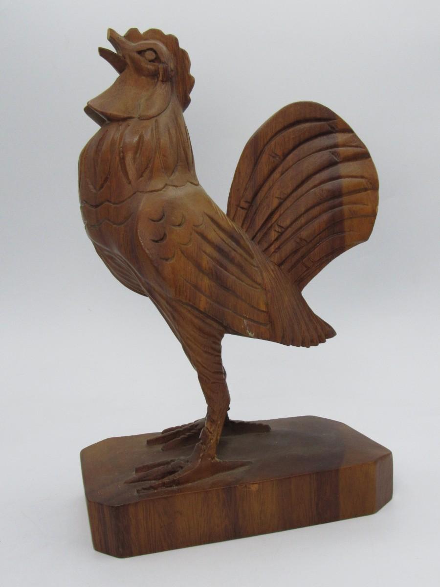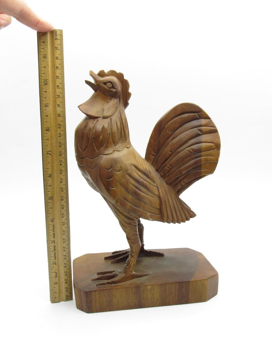 Vintage Hand Carved Wooden Crowing Rooster Wooden Figurine