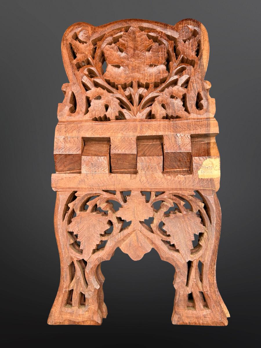 Vintage Hand Carved Wooden Folding Book Stand India Shesham Wood