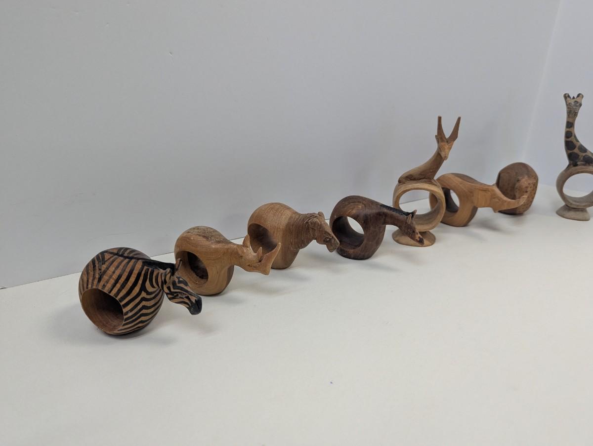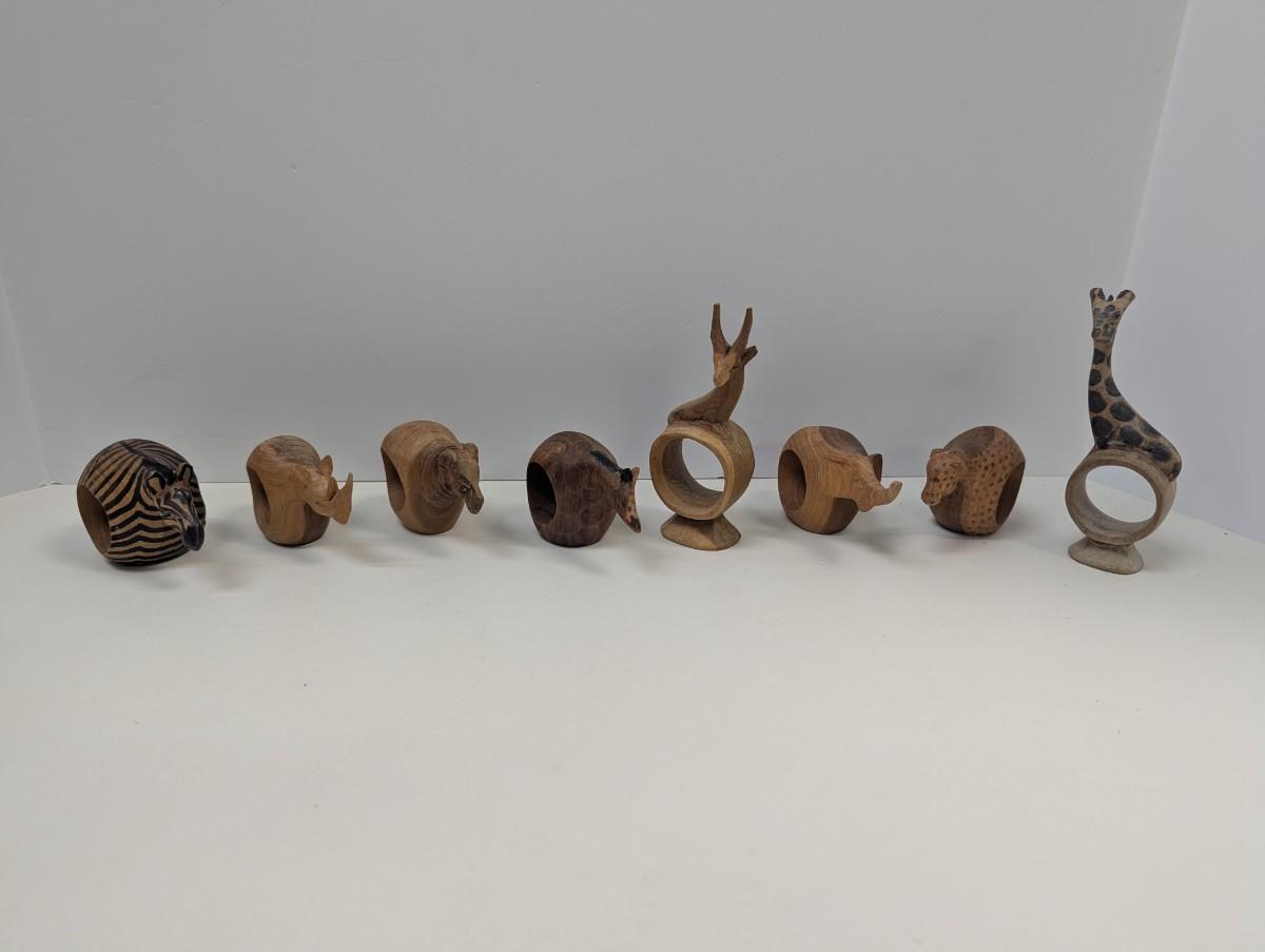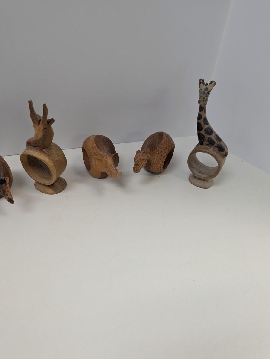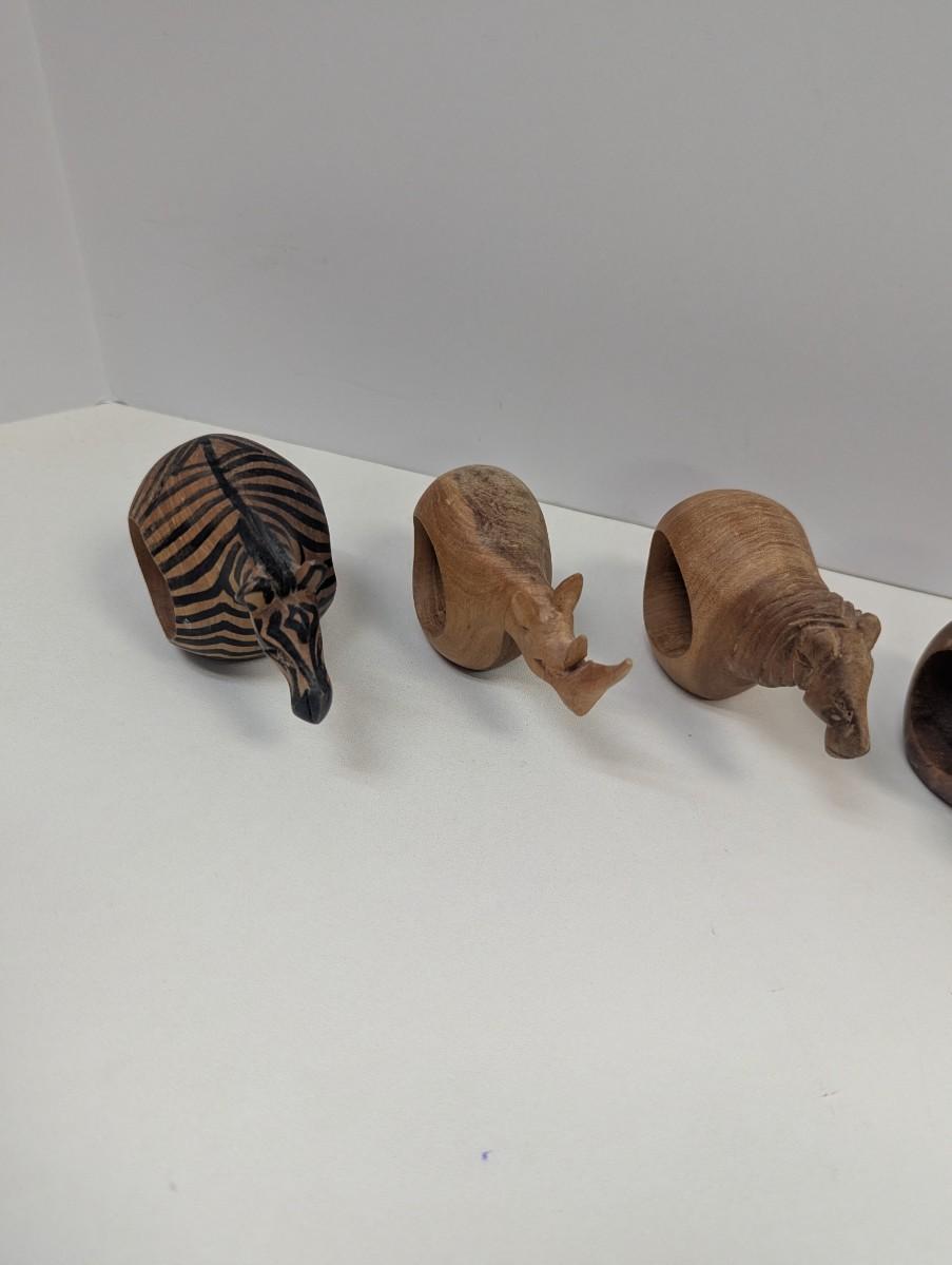 Vintage Hand Carved Wooden Safari Animals Napkin Rings