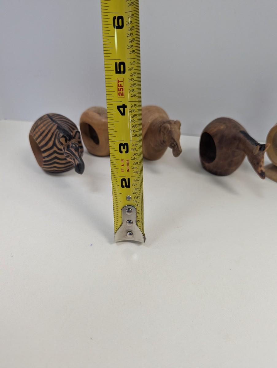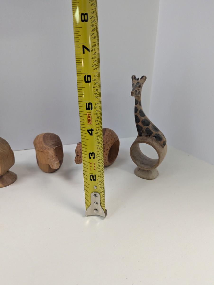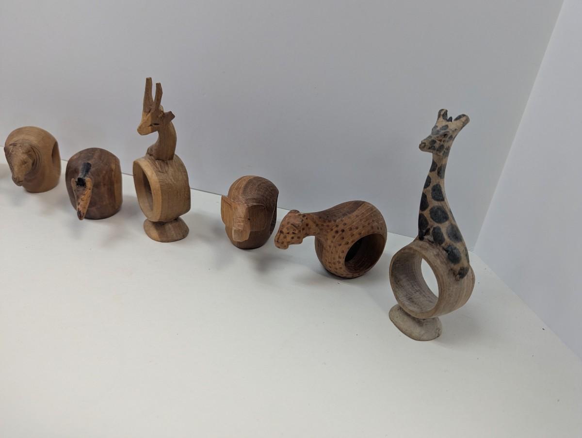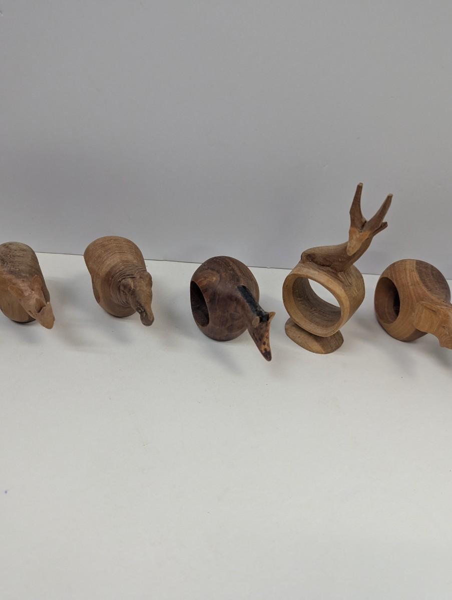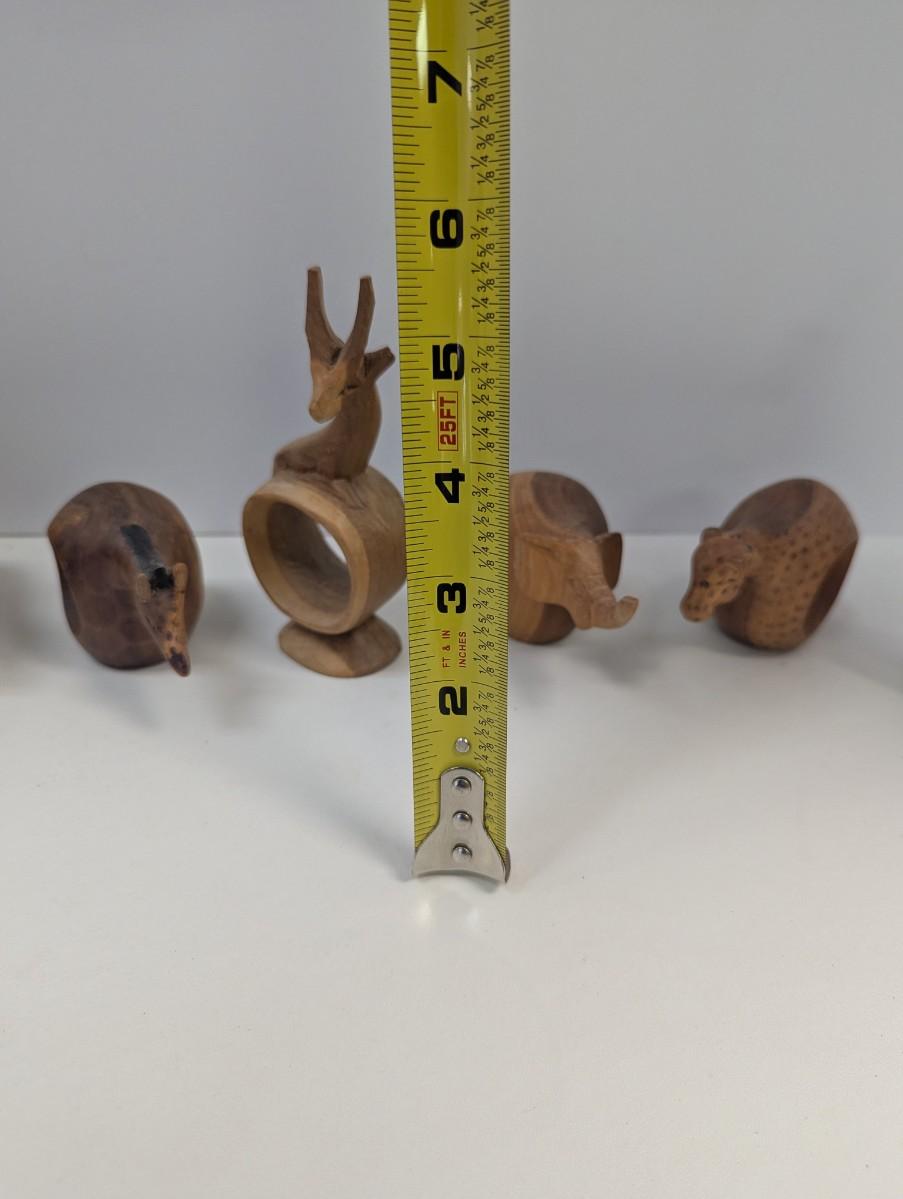 Vintage Hand Carved Wooden Safari Animals Napkin Rings