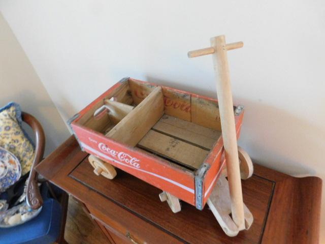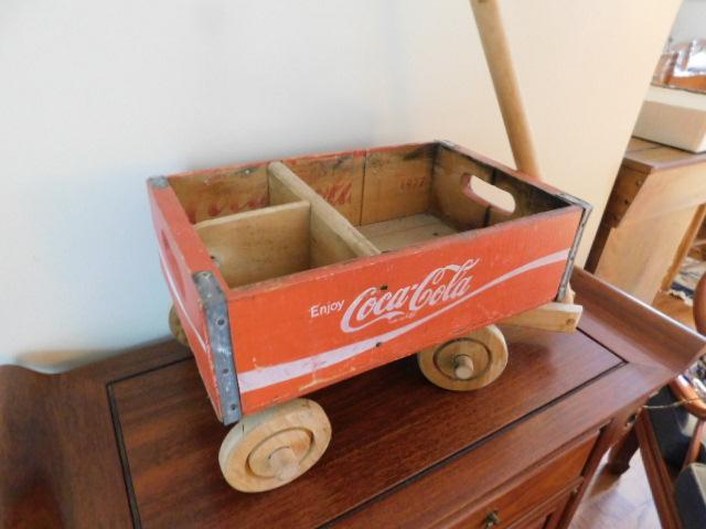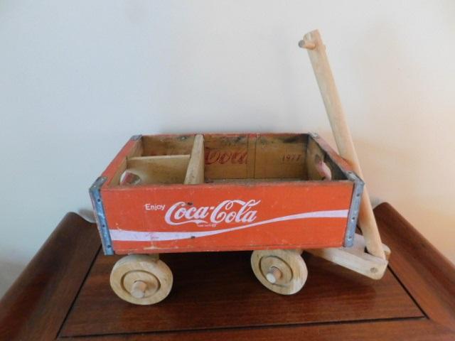 Vintage Hand Crafted Coca-Cola Kid's Pull Wagon Made from 1977 Chattanoga, TN Cola Box 21"x11"x10"