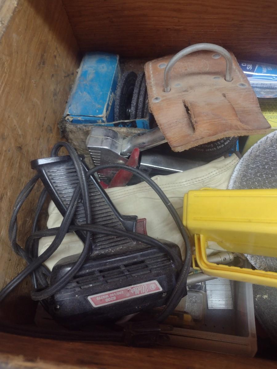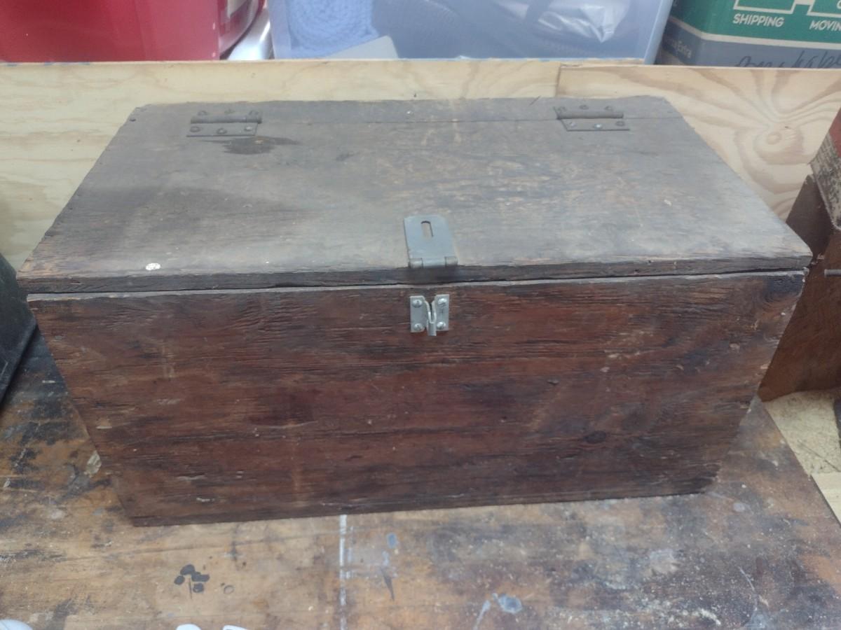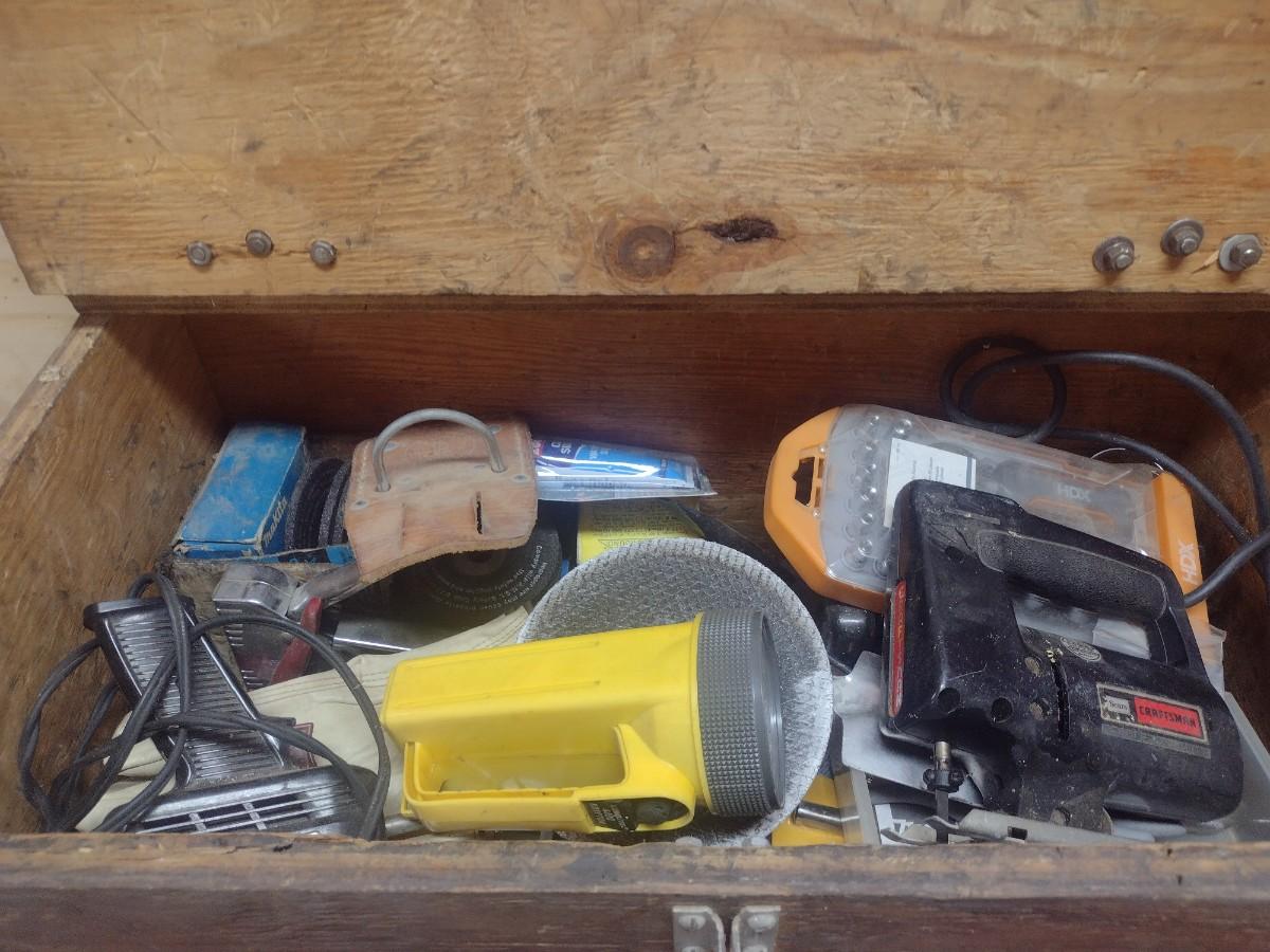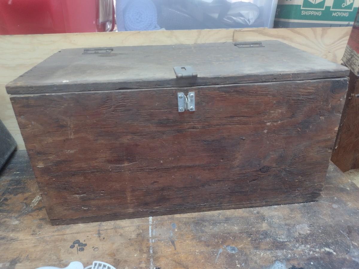 Vintage Hand Crafted Large Storage Box with Contents of Various Tools