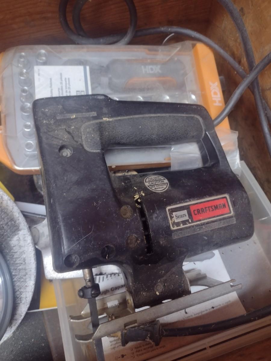 Vintage Hand Crafted Storage Box with Contents of Various Tools