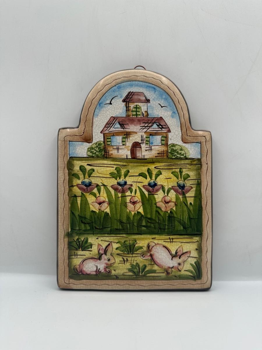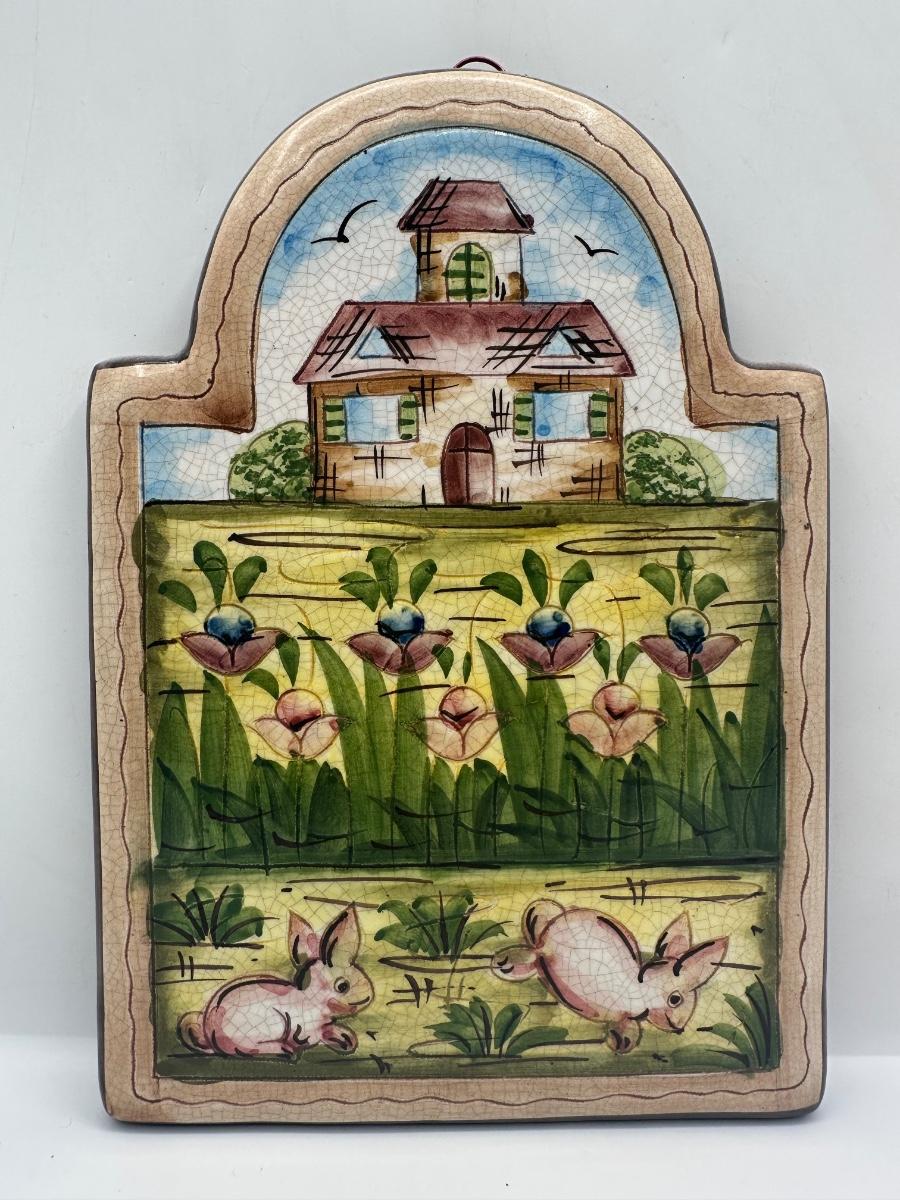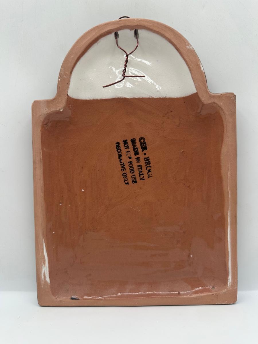 Vintage Hand Crafted & Painted Italian Artisan Heavy Clay Cute Bunny Wall Hanging Plaque