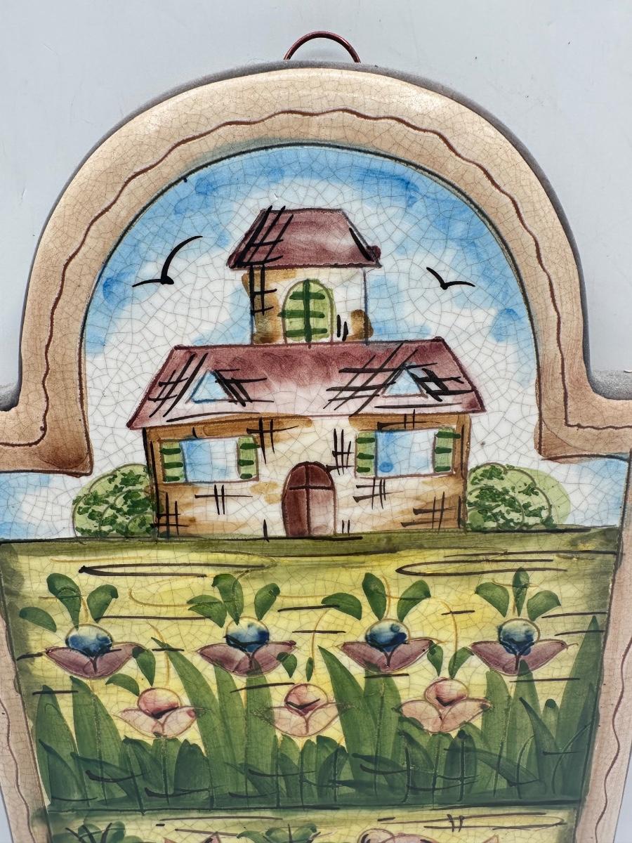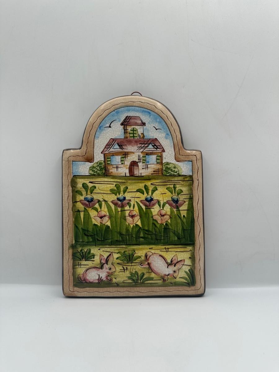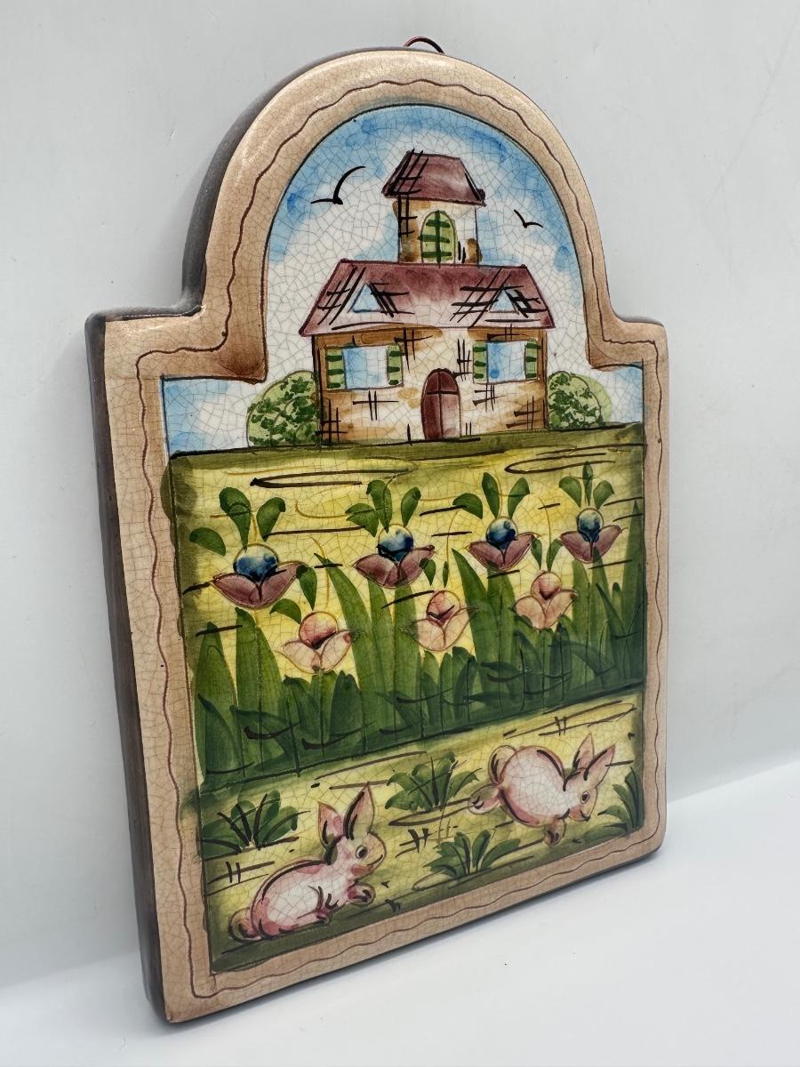 Vintage Hand Crafted & Painted Italian Artisan Heavy Clay Cute Bunny Wall Hanging Plaque