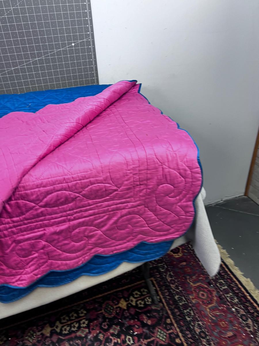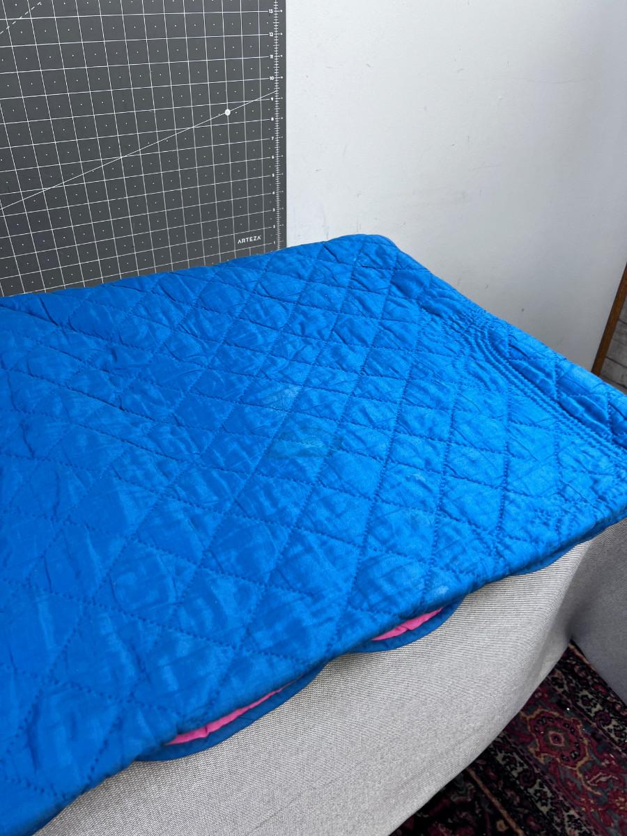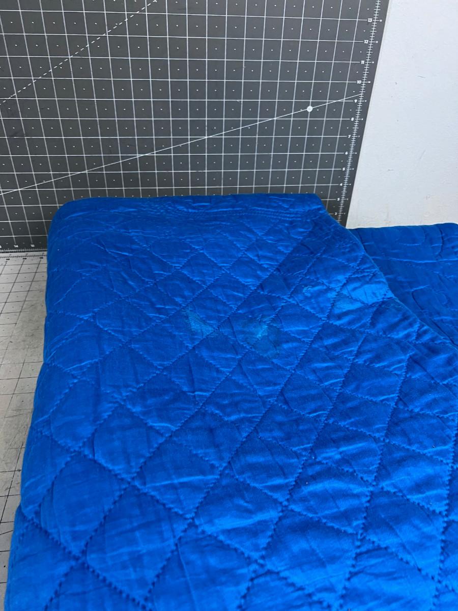 Has a few Stains. Measures 86" x 78" Should Wash out okay