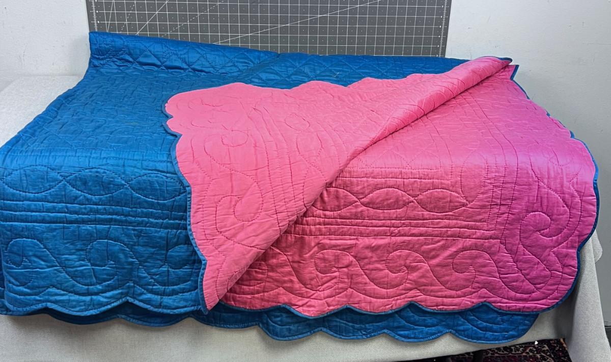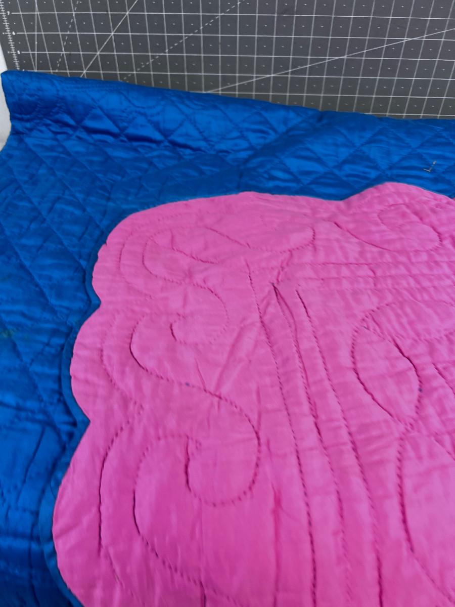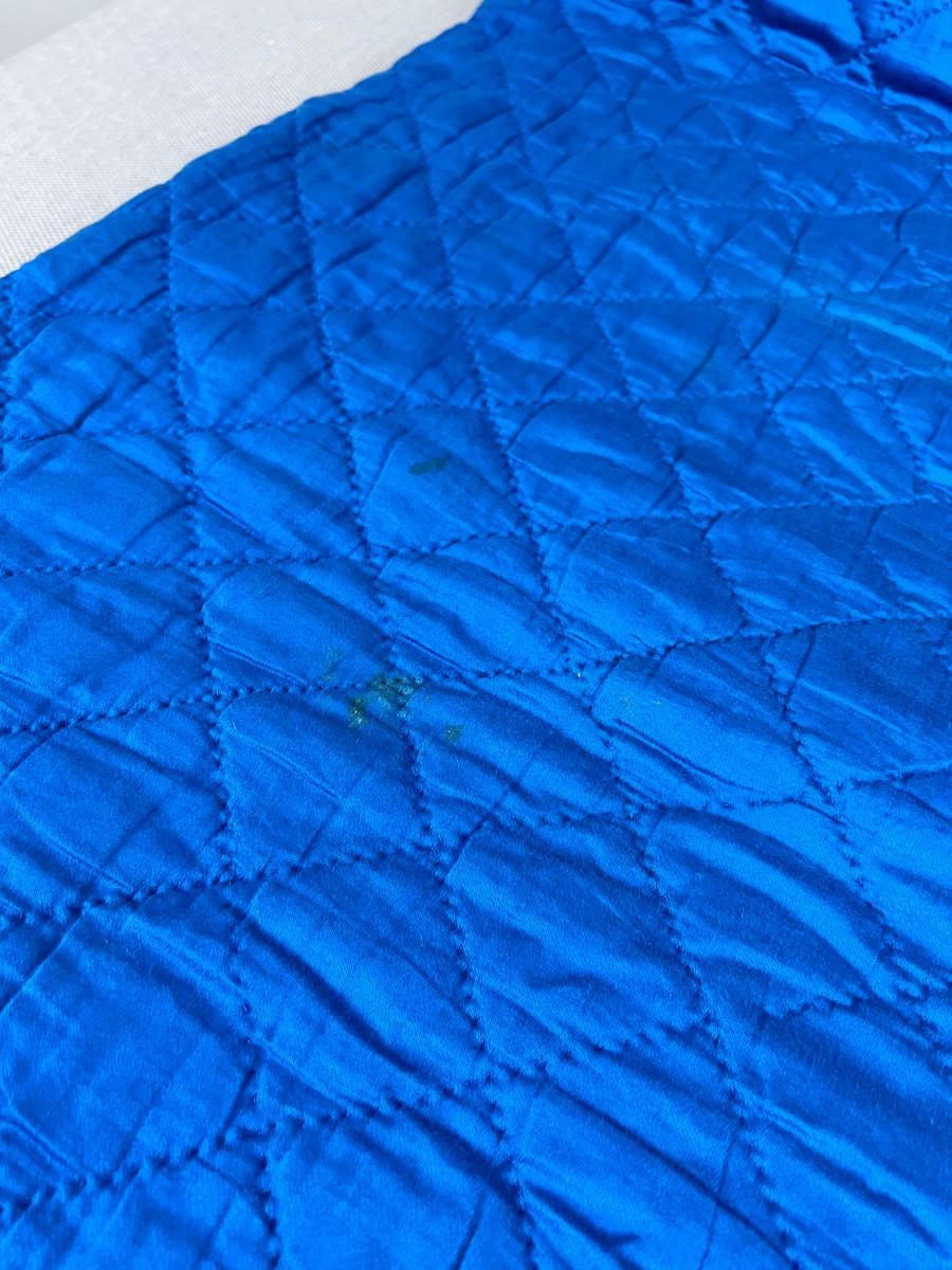 Has a few Stains. Measures 86" x 78" Should Wash out okay