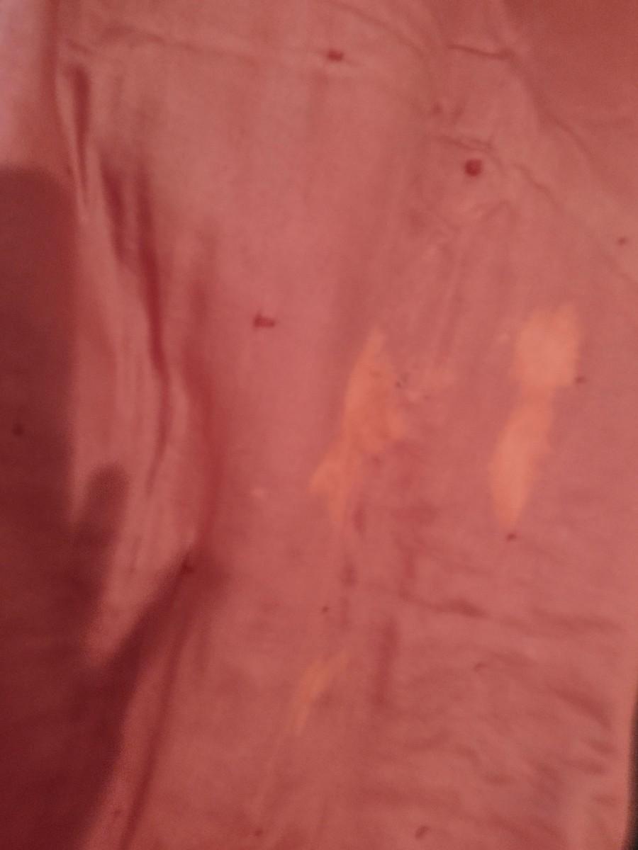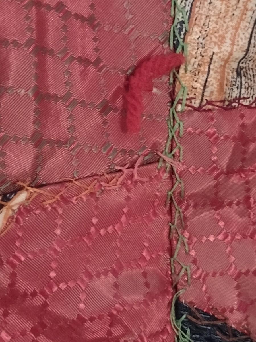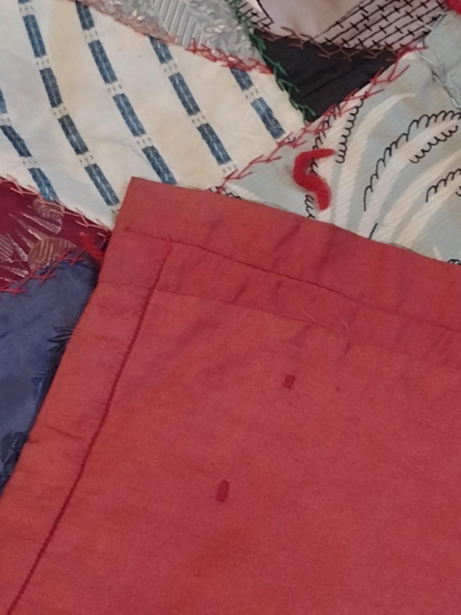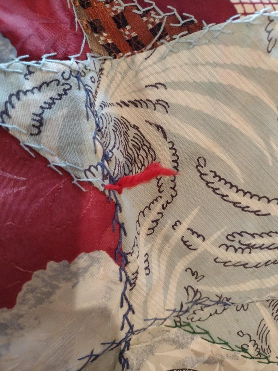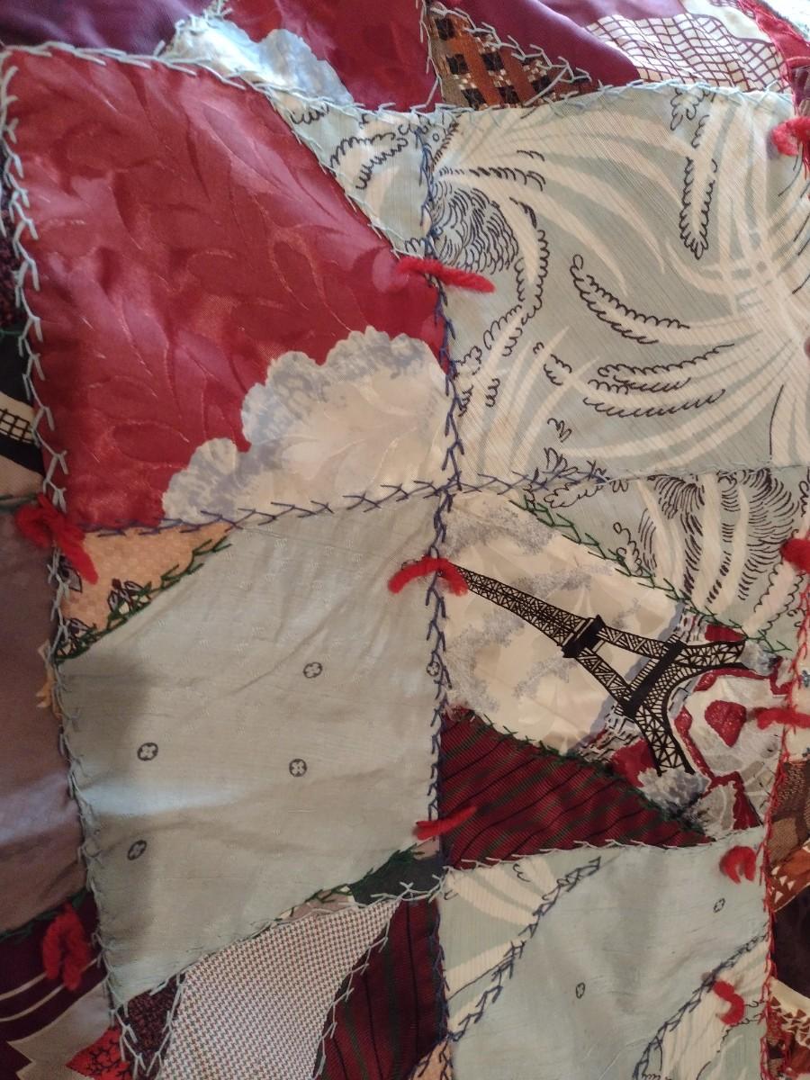 Vintage Hand Cut, Sewn, & Knotted Quilt- Approx 73" x 79" . Some visible staining/discoloration on back. Needs cleaning.