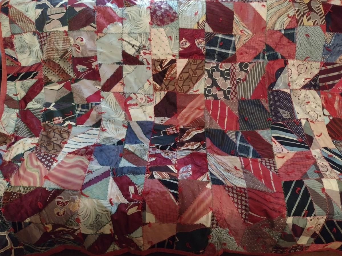 Vintage Hand Cut, Sewn, & Knotted Quilt- Approx 73" x 79"
