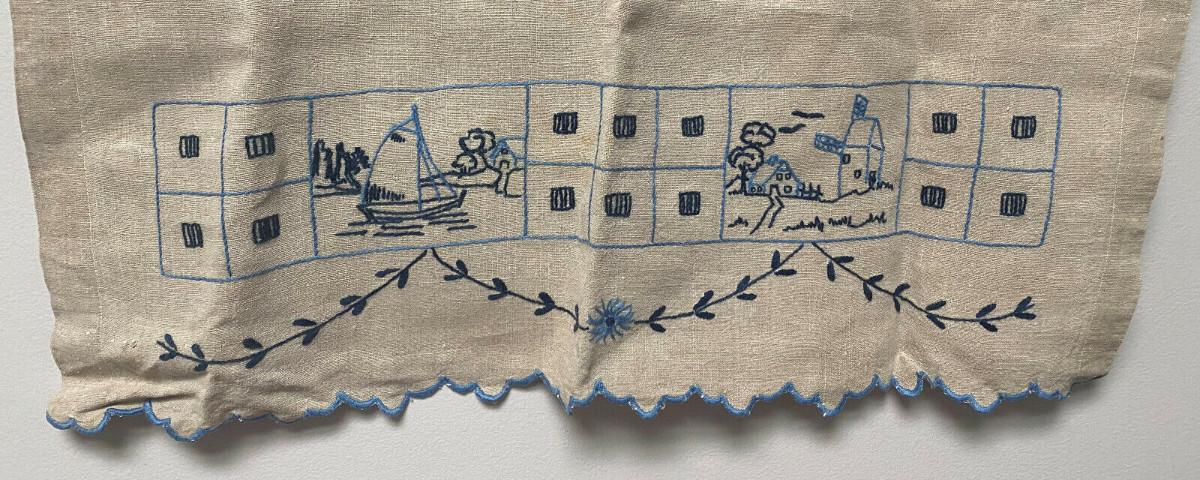 vintage HAND EMBROIDERED GERMAN TABLECLOTH