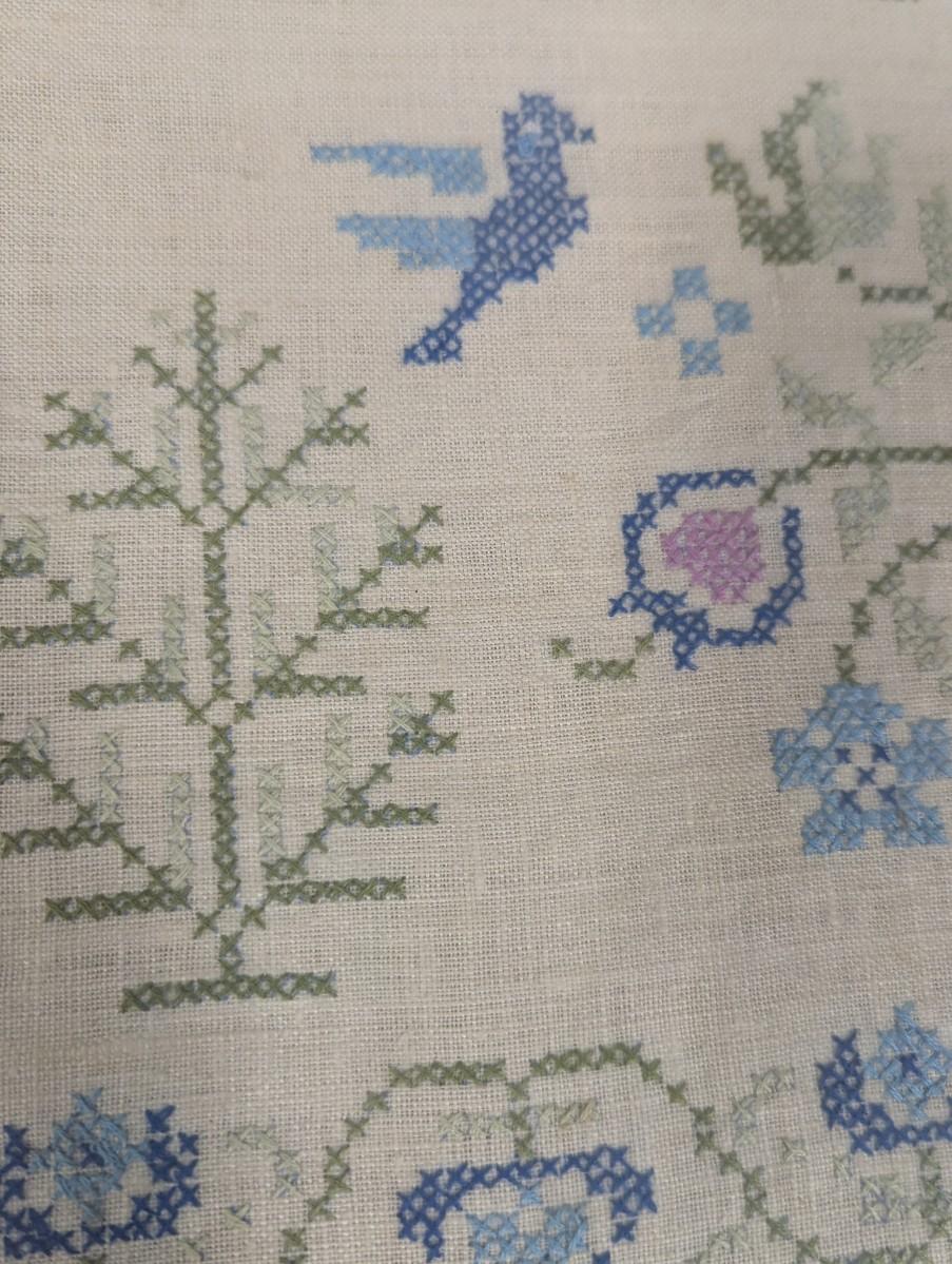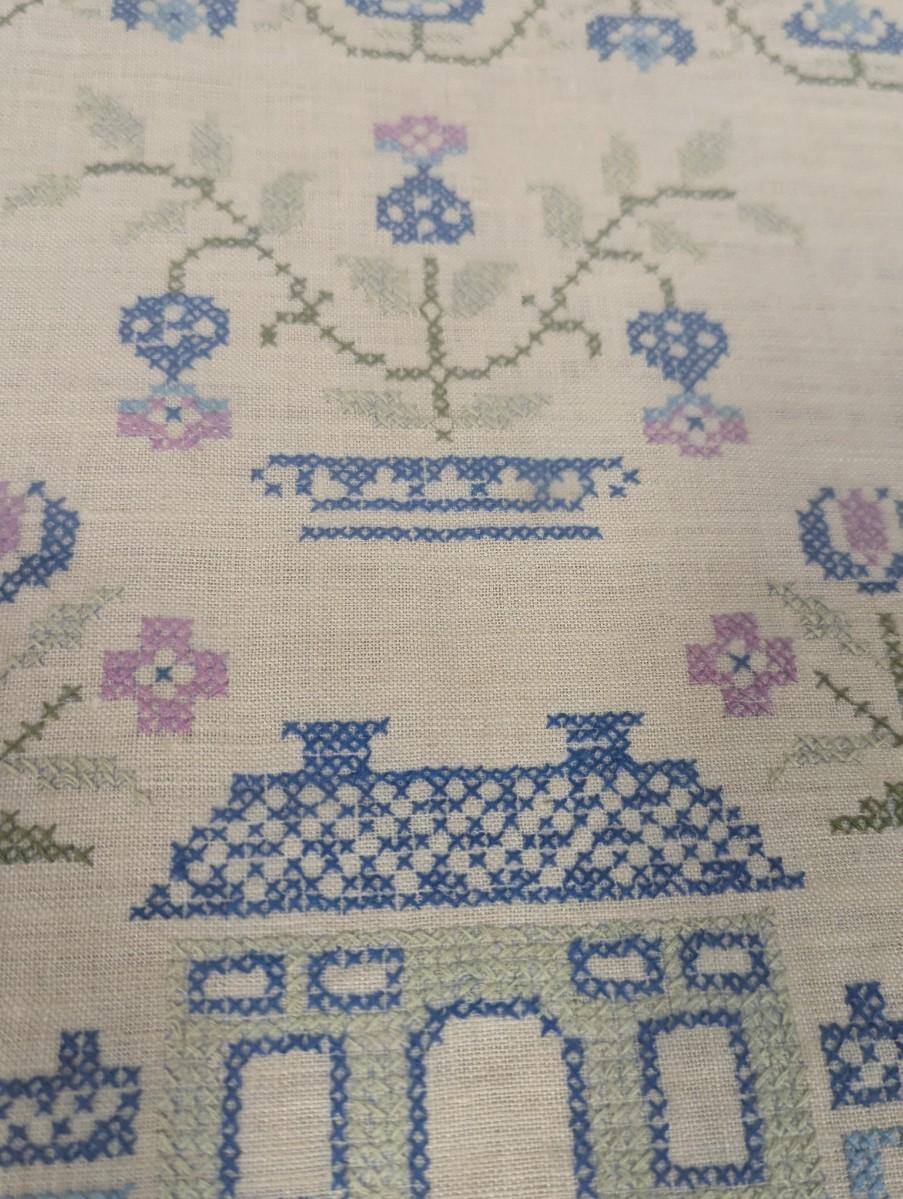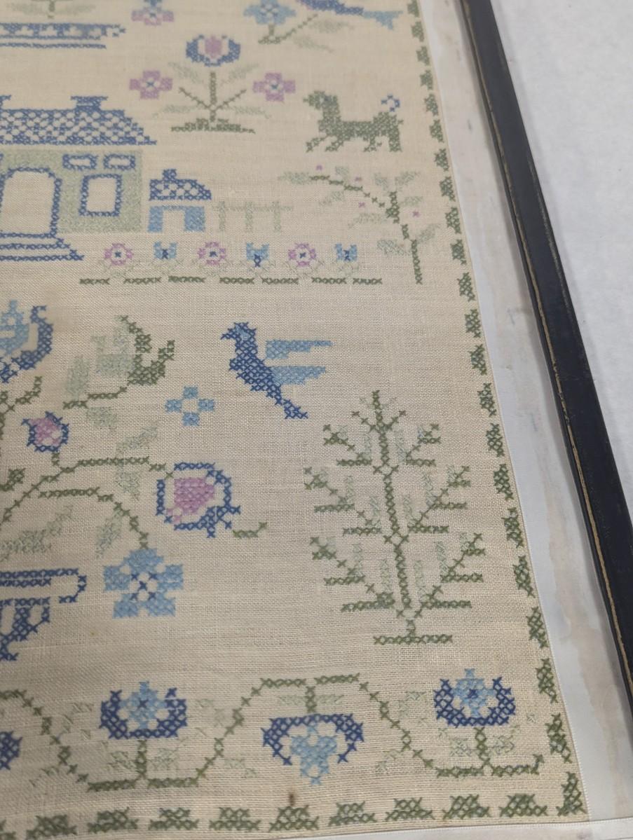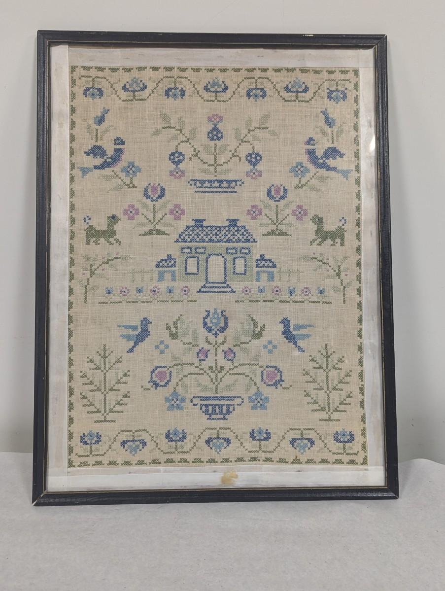 Vintage Hand Embroidered Sampler Home Tree Birds