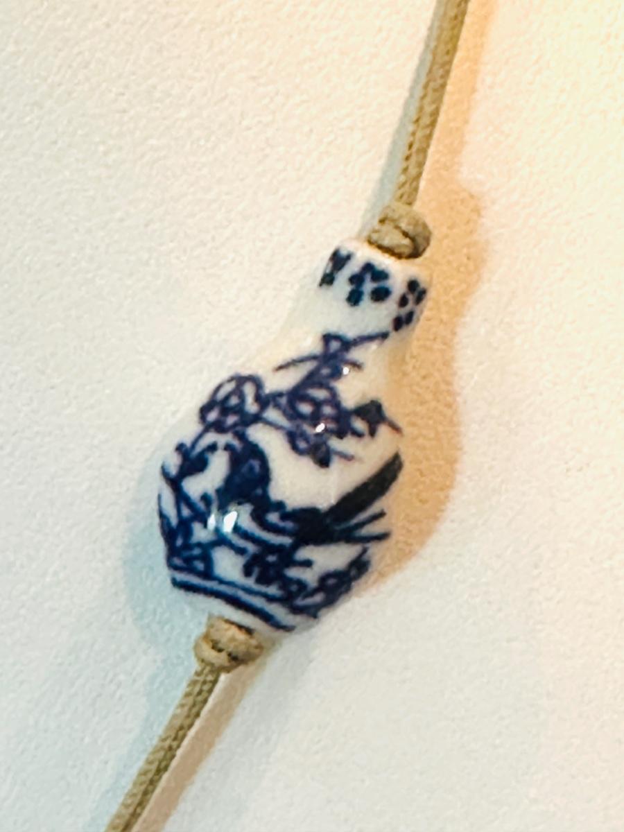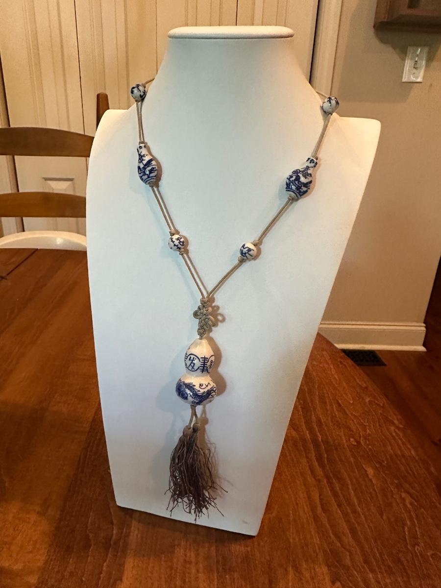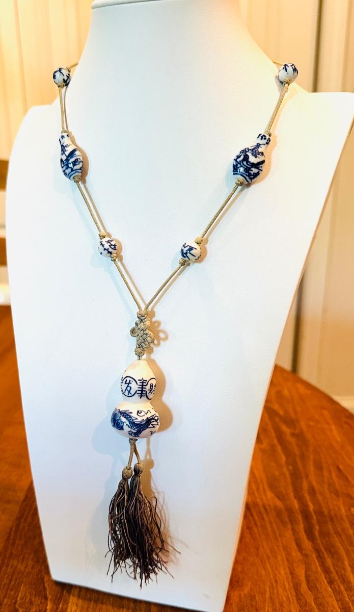 Vintage hand knotted Chinese porcelain blue and white necklace