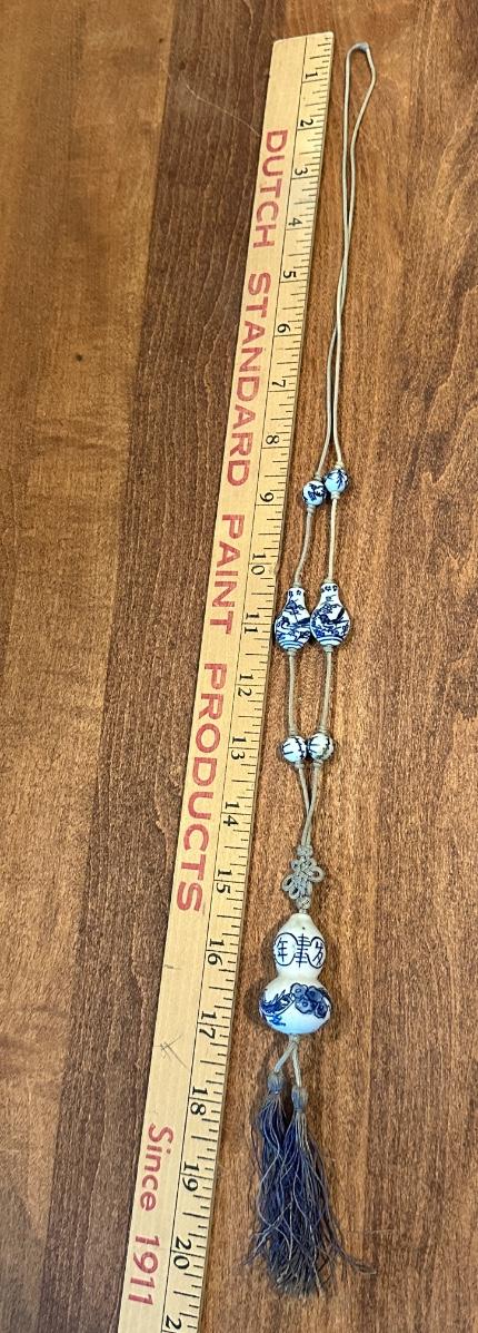 Vintage hand knotted Chinese porcelain blue and white necklace. See photos for dimensions