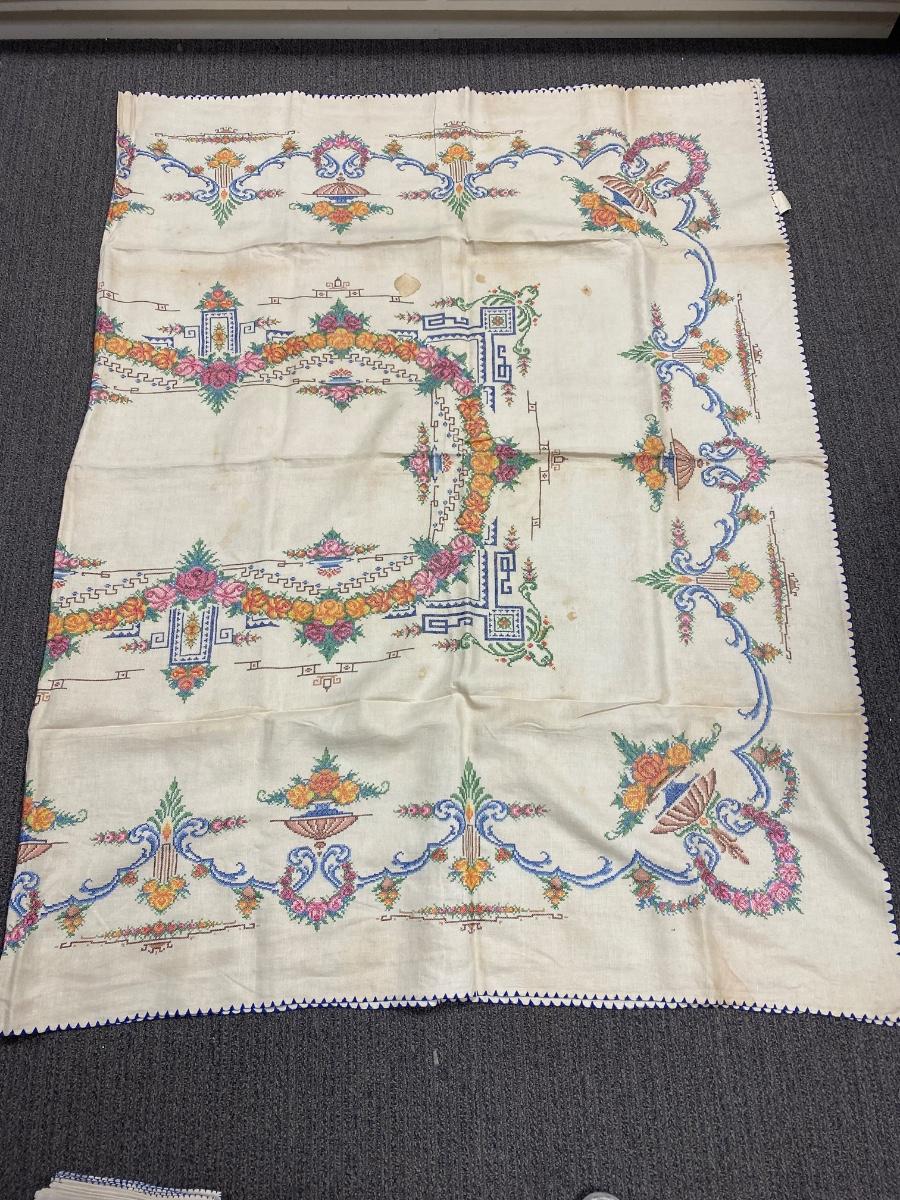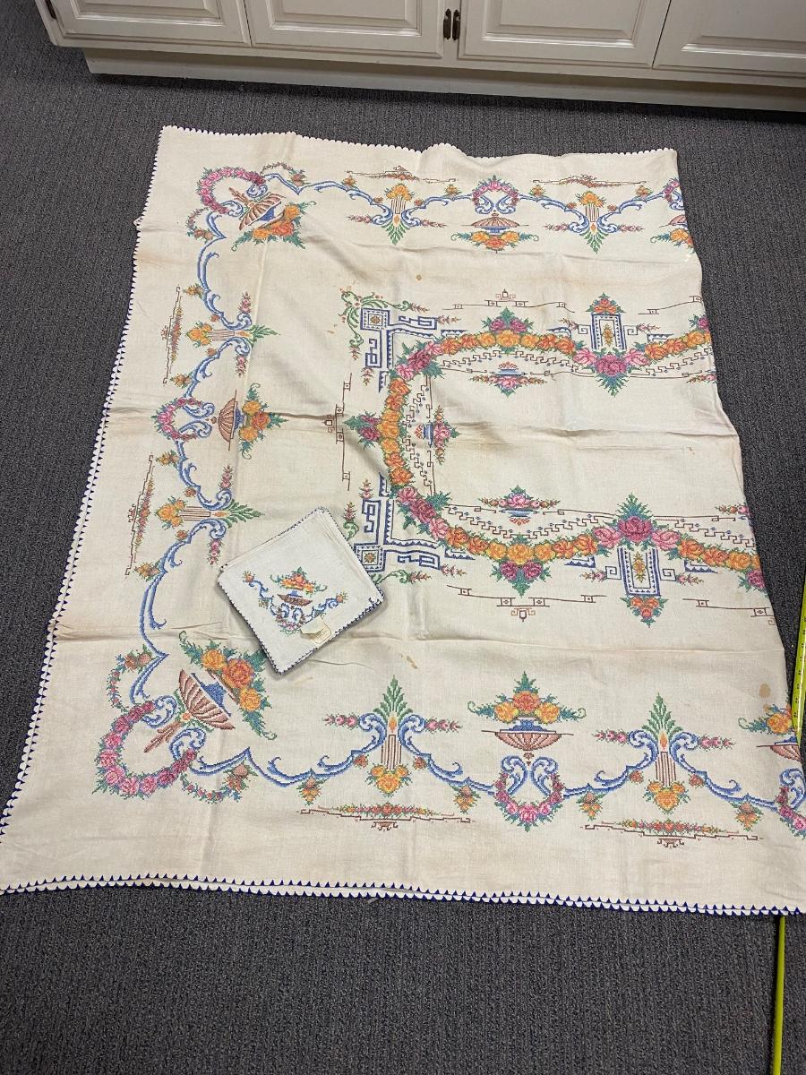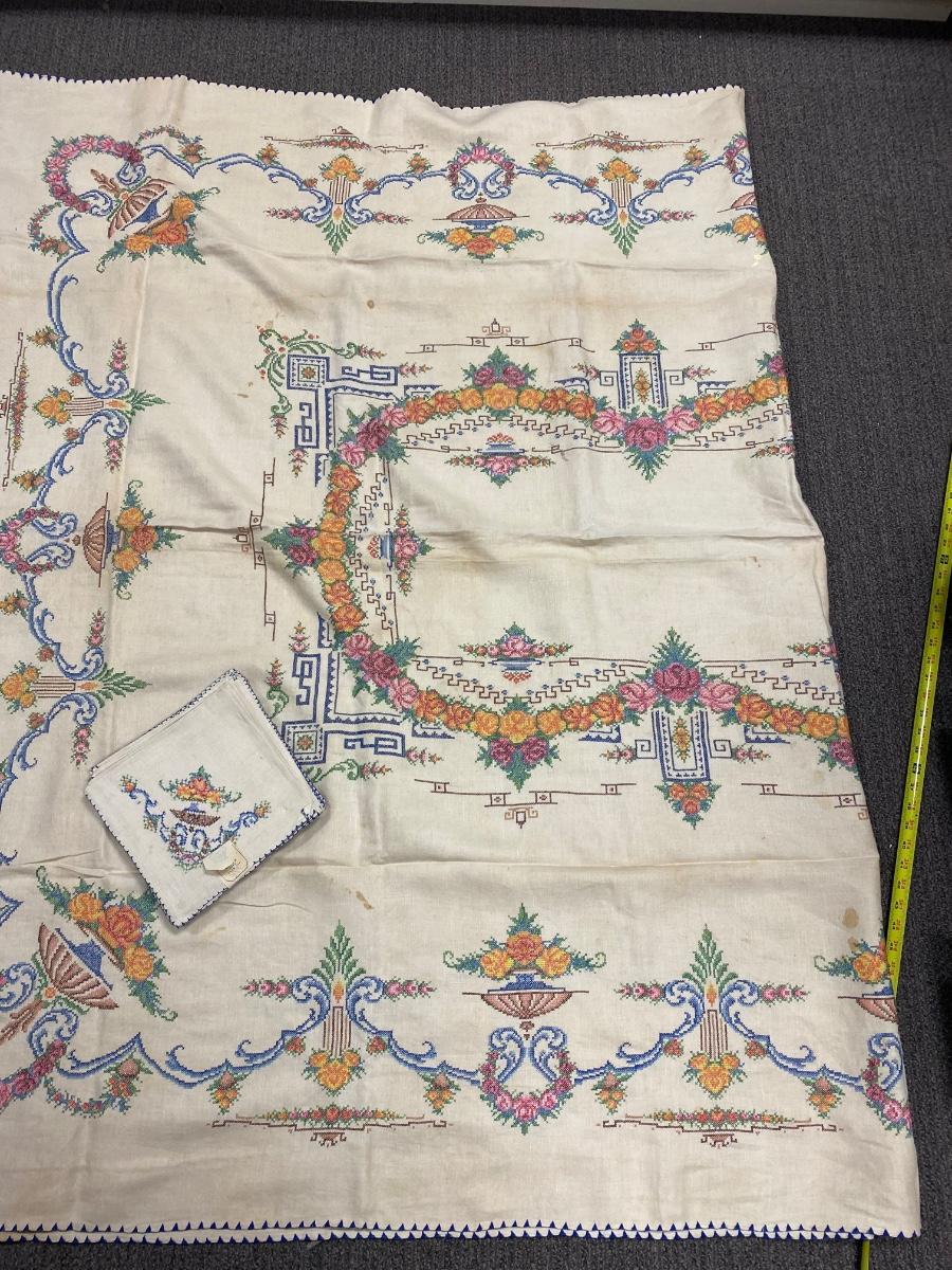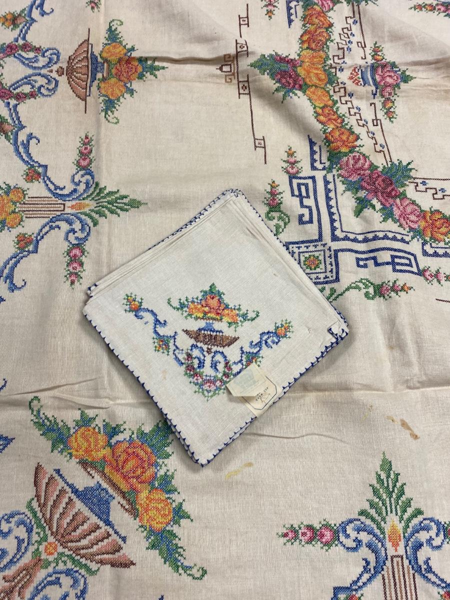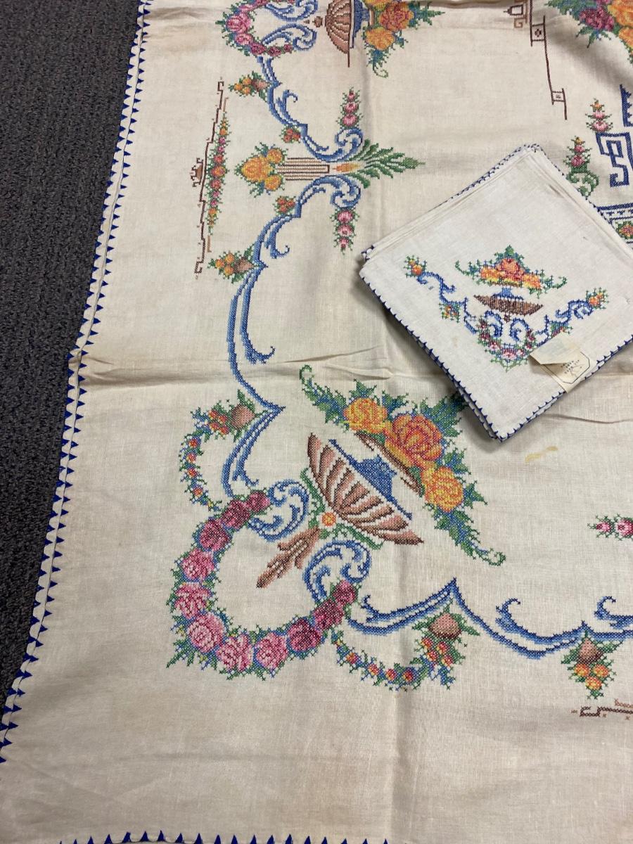 Vintage Hand Made Embroidered Tablecloth with Napkins Original Tags