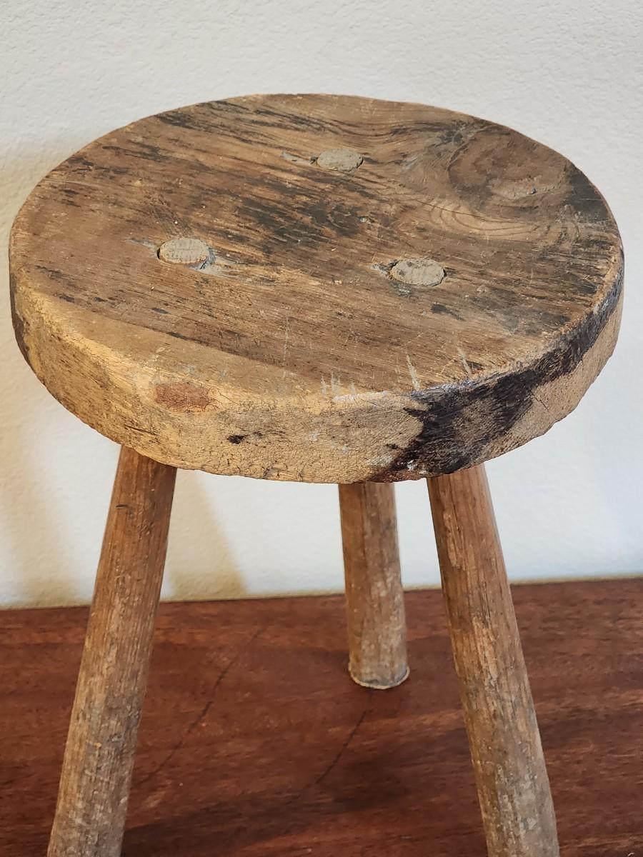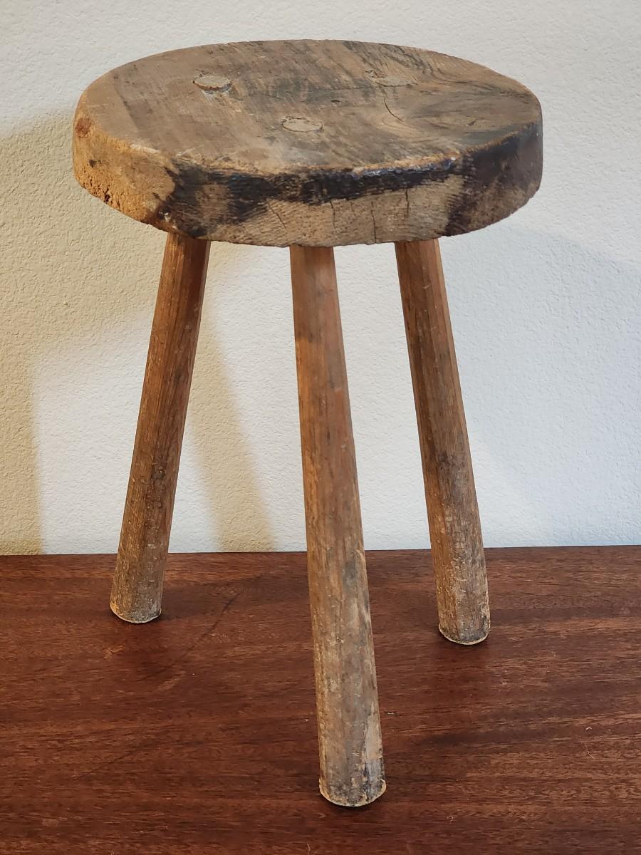 Vintage Hand made Primitive Style 3 Leg Wooden Stool